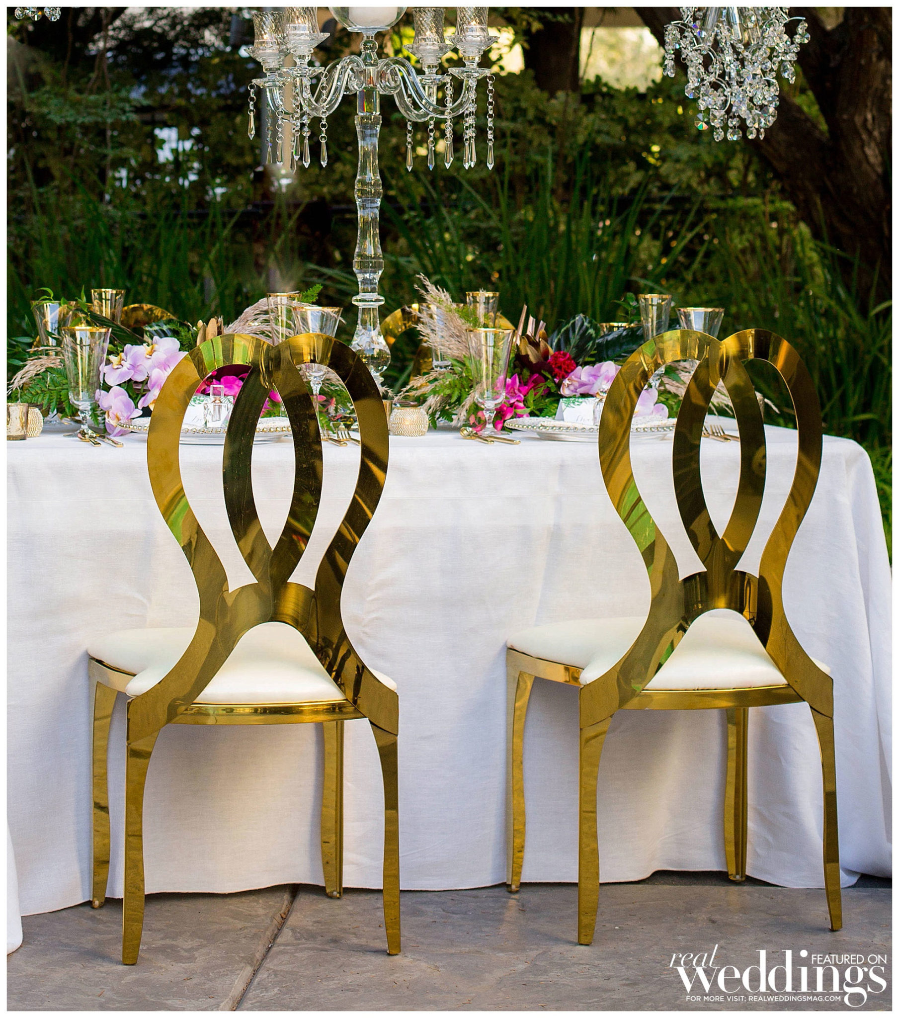 MIRRORED TABLES, CHANDELIERS, GOLD CHAIRS, LOUNGE FURNITURE, PILLOWS AND RUG RENTALS