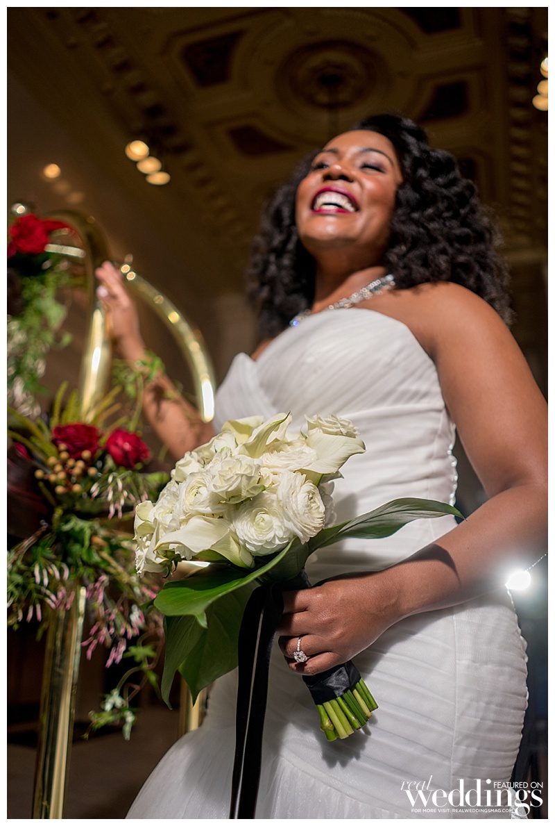 The way Leroy proposed to me was truly unforgettable. I am a HUGE Disney fan and any chance I get I’m trying to scheme my way on another trip to a Disney park. Leroy pulled off the surprise proposal of a lifetime. He told me he had a conference to attend in Anaheim and we could go to Disneyland while we were there. Of course, I jumped at the chance to go. As we were heading into the park that morning, I had the feeling he was going to propose so I looked in the bag he was carrying as we were going through security. There was no ring! I was so irritated and I couldn’t believe he brought me to Disneyland and wasn’t going to propose. Later that day, unbeknownst to me, Leroy had sent a friend a text message to send back to him at 4 p.m. that day saying that a reservation at Club 33 had opened up and we were welcome to take it. Of course I jumped at the chance because going to Club 33 is on my bucket list. Leroy said he had to go “register for his conference,” and that he would meet me in front of the park. While I was primping, he snuck the ring out of the room and took it to Club 33, where the whole staff was in on it. After being seated at Club 33, our waiter suggested we head out to the balcony to enjoy the view before drinks. While we were out there, Leroy made a reference to my favorite Disney princess – Princess Tiana from The Princess and the Frog. He said I had to kiss quite a few frogs before I got to him and asked me if he could be my prince for the rest of his life. I laughed and said “Why? Because you got me into Club 33?” He shook his head and said “No, that’s not what I meant Torrey…” So I asked him what he did mean and he got down on one knee, pulled out a box, and I started screaming. I didn’t even hear him ask me to marry him the first time. He had to ask a second time and of course I said, “Yes!” My engagement ring even has two hidden Mickeys in it – something all big Disney fans have loved every time I show the ring.
