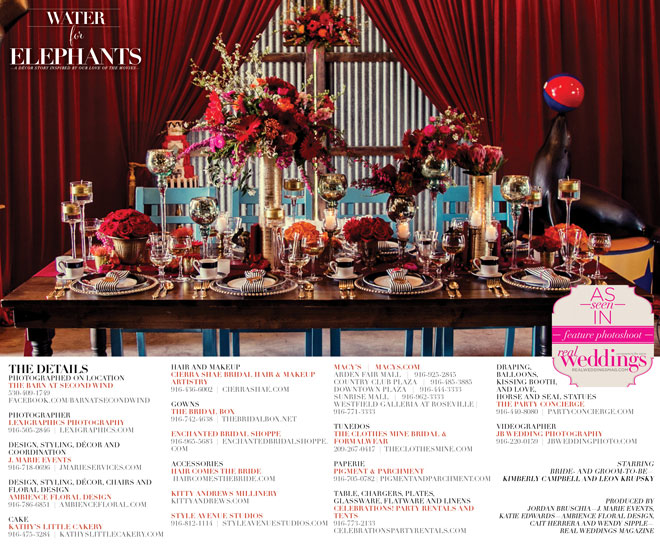 Sexy, sultry, colorful…yep, it’s our “Water for Elephants” Styled shoot from our brand new Summer/Fall 2015 issue. Need we say more? Enjoy!