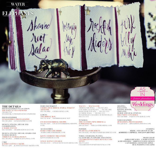 Produced by Jordan Bruschia—J. Marie Events, Katie Edwards—Ambience Floral Design, Cait Herrera and Wendy Sipple—Real Weddings Magazine