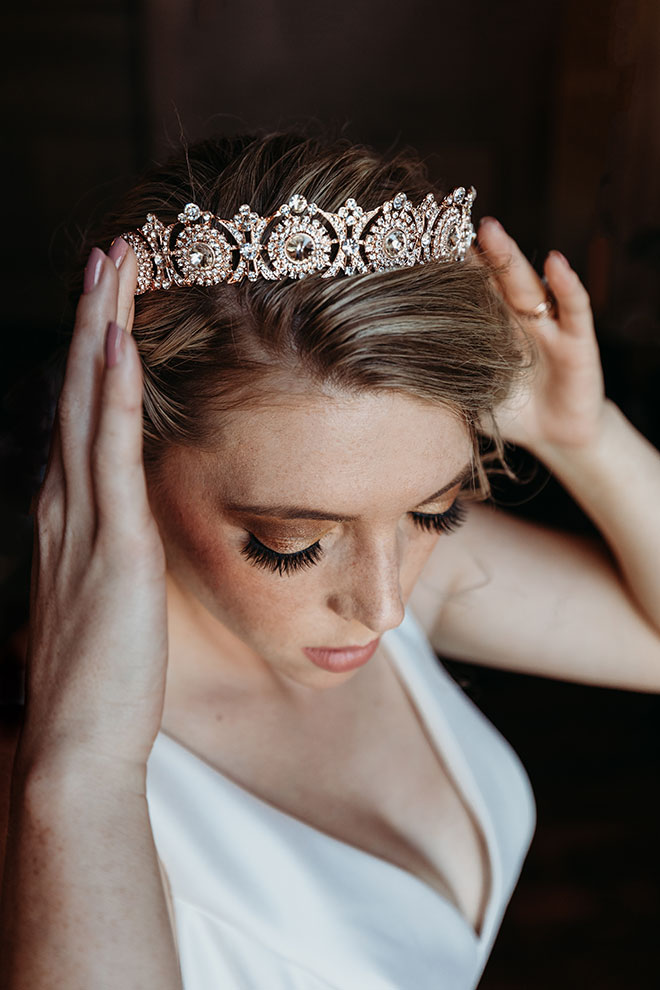 Who needs a little sparkle in their life? Well, when we saw what Melissa from Luxurious Bridal sent us to borrow for our styled shoots we just couldn’t pass up having a mini photo shoot with them! Check out these three gorgeous tiaras (the earrings are from her too) we couldn’t help but ooh and ahh over! Plus, she has tons more on her website at luxuriousbridal.com.