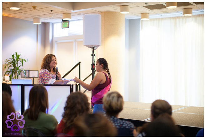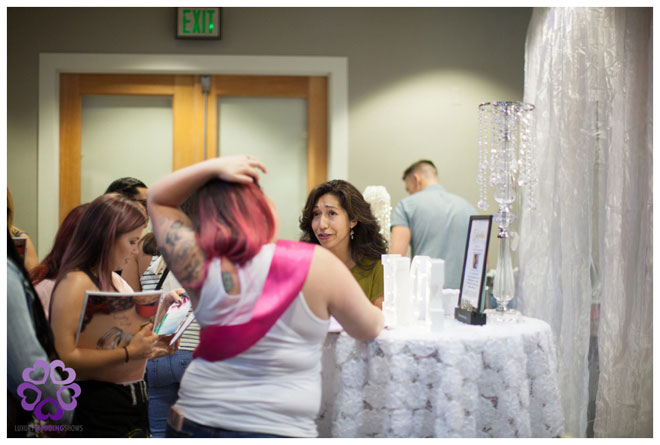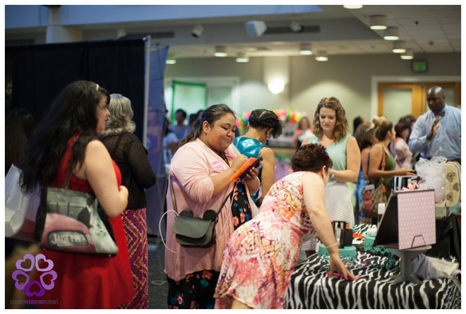 Did you miss the Luxury Wedding Shows-Sacramento event in early August at the Tsakopoulos Library Galleria?! Well, don’t fret…Real Weddings Partner photographer, Erica Baldwin from Erica Baldwin Photography was there to capture all of the fun shots! Enjoy! Oh, and we particularly love the one that Erica caught of Real Weddings’ Editor/Publisher Wendy in the booth…it’s as if she’s saying, “I’m not ready for my close-up yet Erica!”