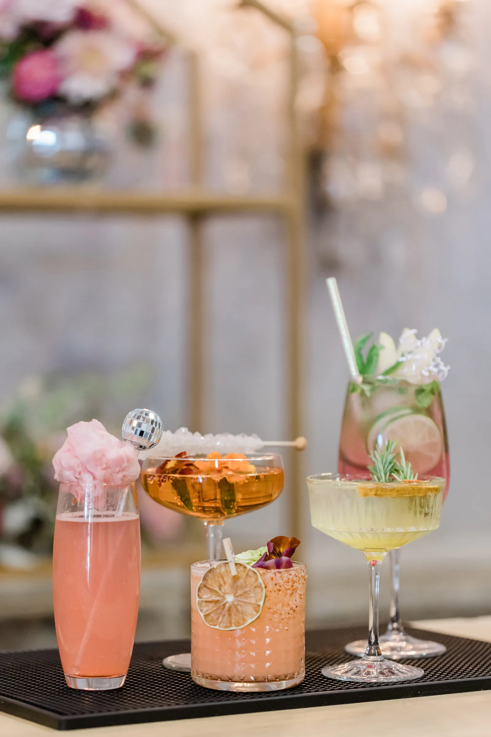 It’s Fri-YAY! Time for the weekend and dare we suggest some adult beverages?! To help you get in the mood, Kiara at Sips & Floss created some delicious drinks for our “Disco in the Garden” styled shoot that’s in the current issue of Real Weddings and has generously shared the recipes! And hint: hire Sips & Floss for your wedding and they could make these signature drinks for your guests to enjoy!
