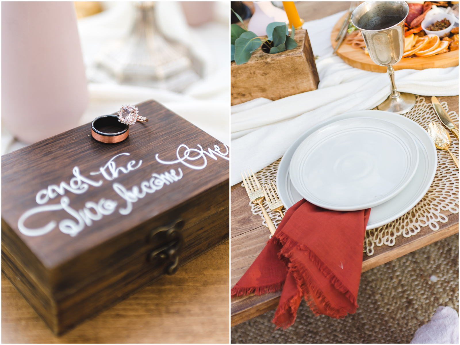 I cannot say enough wonderful things about everyone who worked on this shoot. They are all so immensely talented! The florals and tablescape and setup by Events22 is one of the most beautiful I’ve ever seen. The jewelry by Ripon Jewelers are so stunning and exquisite. The charcuterie board by A Matter of Taste Bistro & Wine Bar was a masterpiece. And just look at that beautiful couple: Mikyla + Miko are beautiful inside and out!