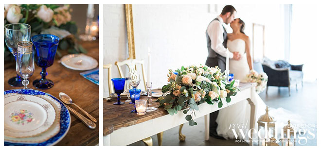 In every issue of Real Weddings Magazine, we feature incredible photos in our Style Files section to help you plan your big day. This styled shoot at Studio 817 had a antique feeling highlighted by soft pinks and dark blues. It left us so inspired, we just had to share it in hopes it will inspire you!