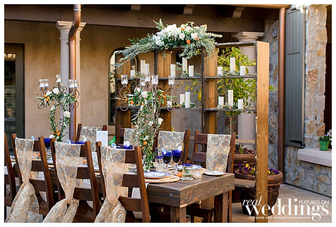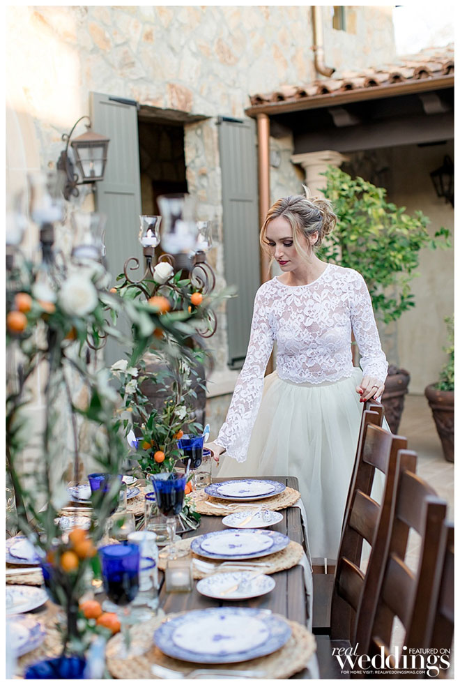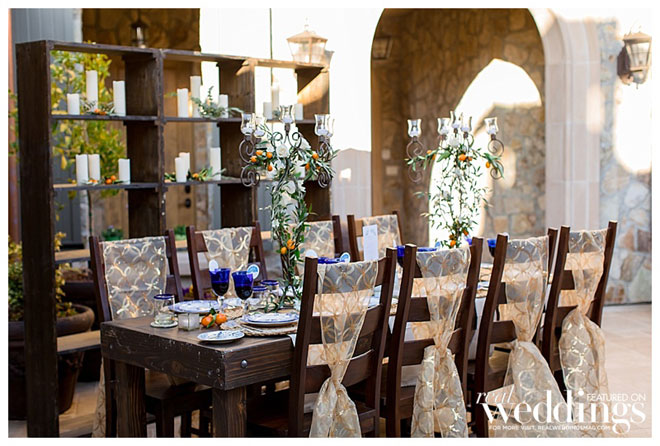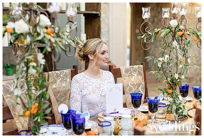 In every issue of Real Weddings Magazine, we feature gorgeous photos in our Style Files section to help you plan your big day. This styled shoot at the Grand Reserve Inn was inspired by an Italian villa featuring a color scheme of orange and blue. It left us so inspired, we just had to share it in hopes it will inspire you!