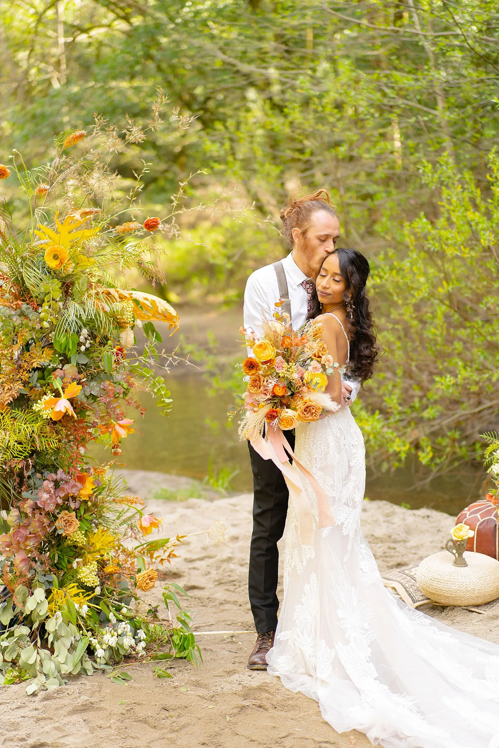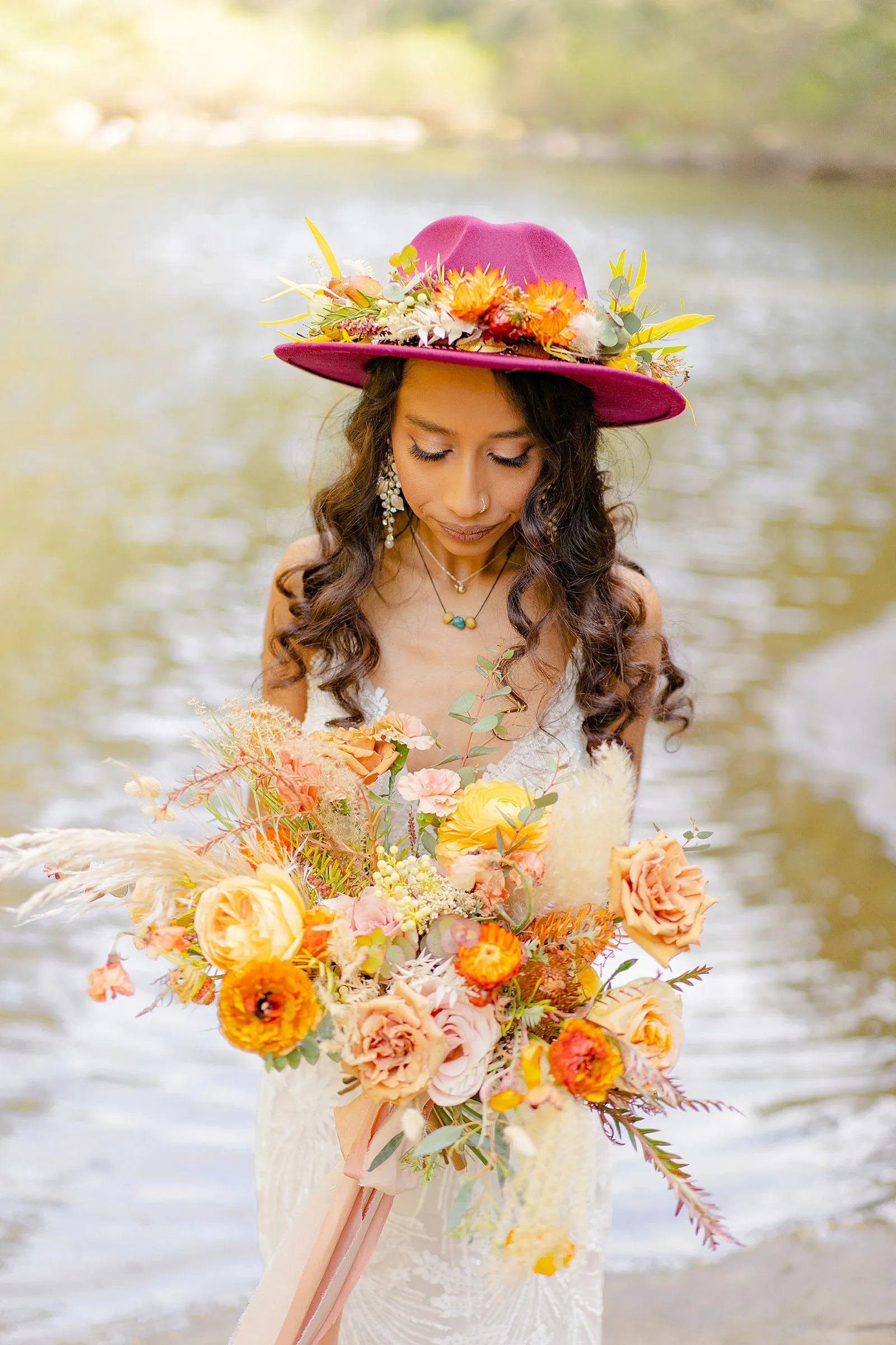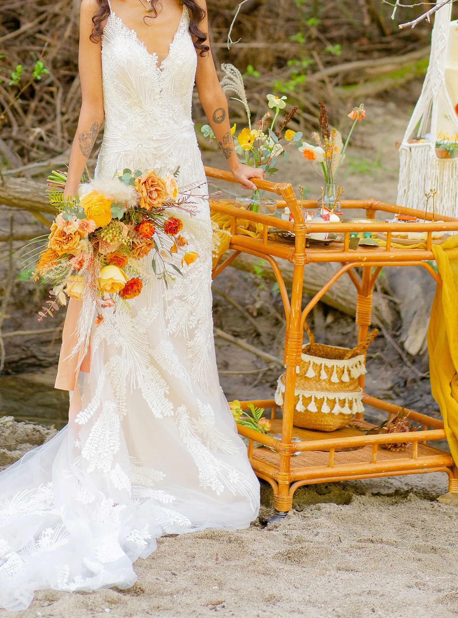 Elopements have become a popular option these days, but we’ve always encouraged a small, intimate celebration if that’s what you want! After all, this is YOUR day! But small celebrations don’t have to be small in detail…they can be HUGE in detail! Like this submitted styled shoot with pops of bright summer-y colors, citrus and plenty of boho decor. This photo shoot is also featured in our Fall 2021/Winter 2022 issue—go grab your copy! Or check out the digital edition on our website.