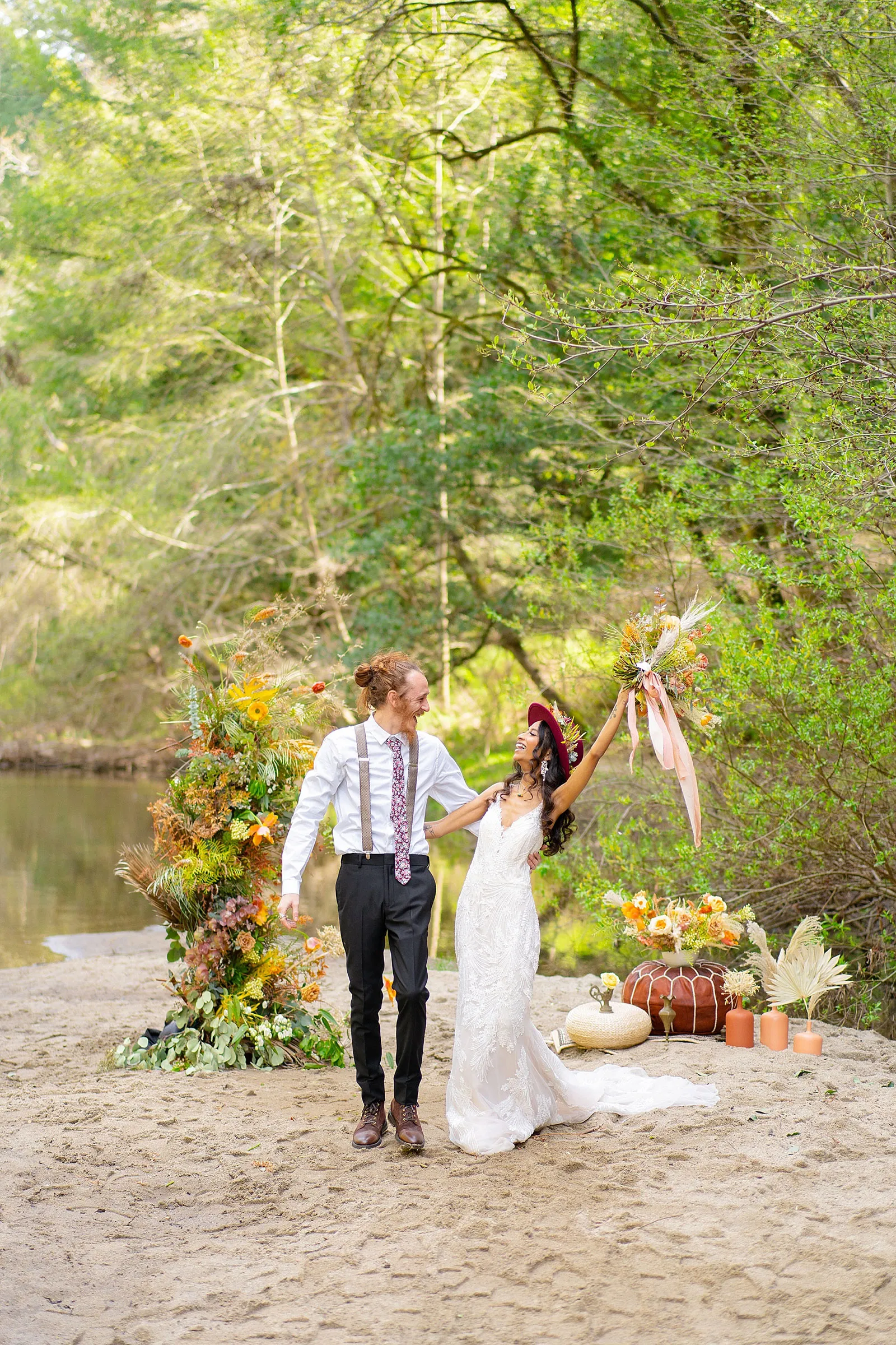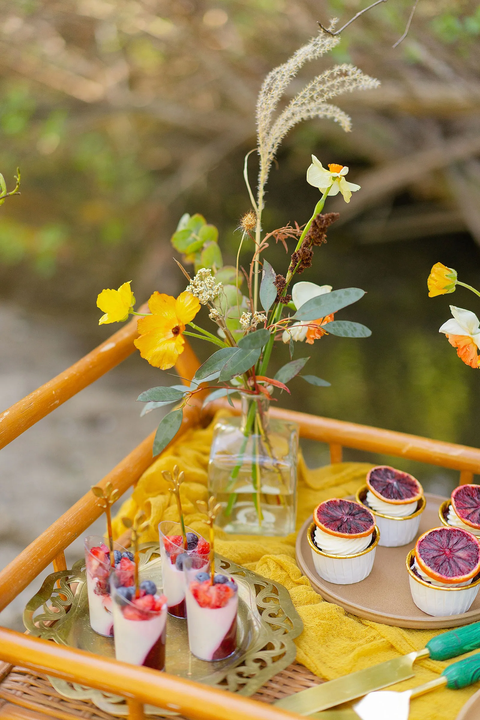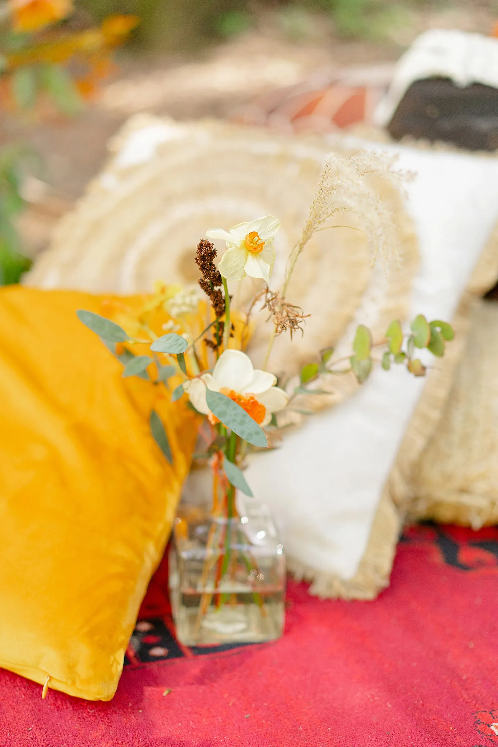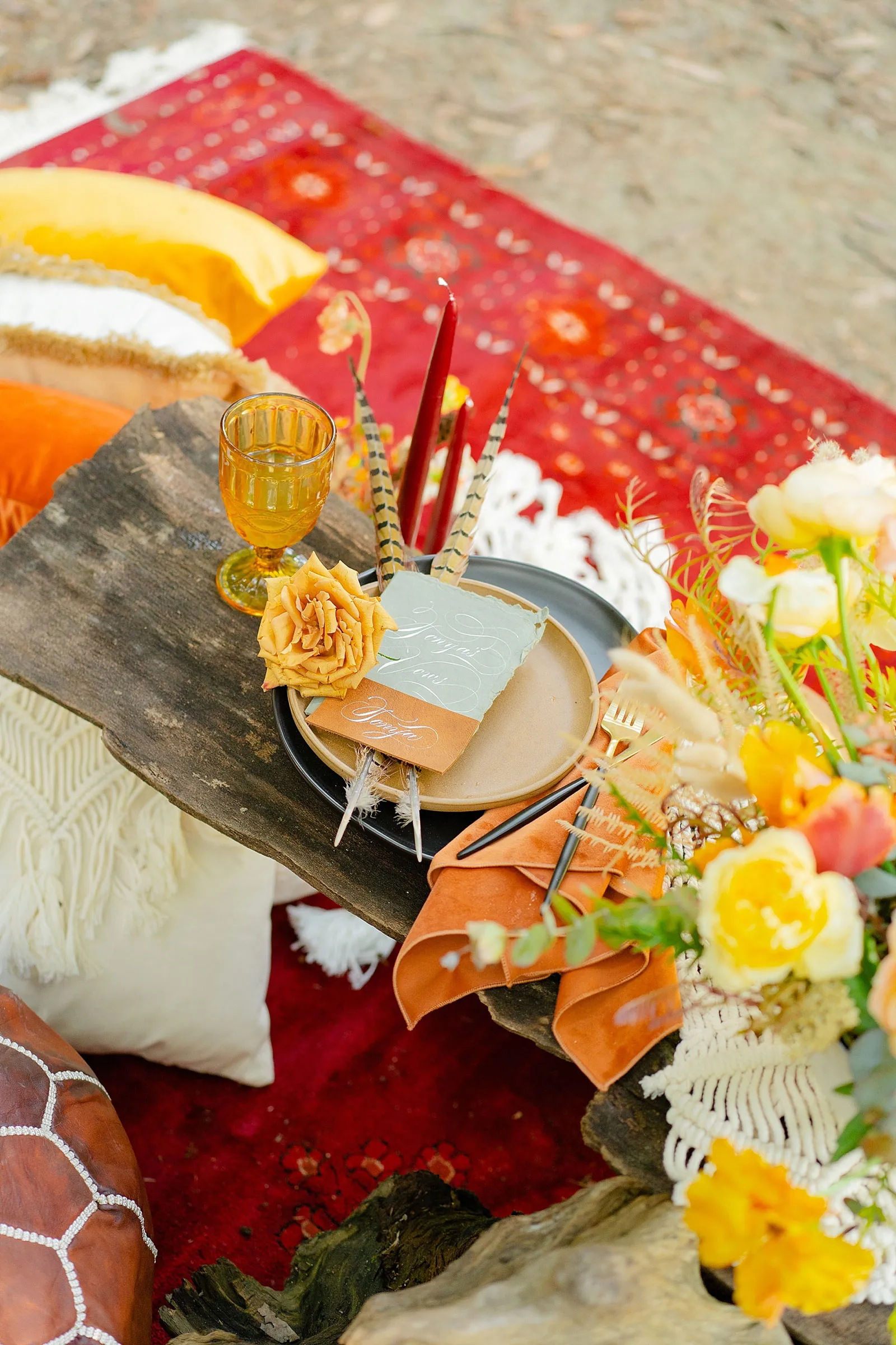 Elopements have become a popular option these days, but we’ve always encouraged a small, intimate celebration if that’s what you want! After all, this is YOUR day! But small celebrations don’t have to be small in detail…they can be HUGE in detail! Like this submitted styled shoot with pops of bright summer-y colors, citrus and plenty of boho decor. This photo shoot is also featured in our Fall 2021/Winter 2022 issue—go grab your copy! Or check out the digital edition on our website.