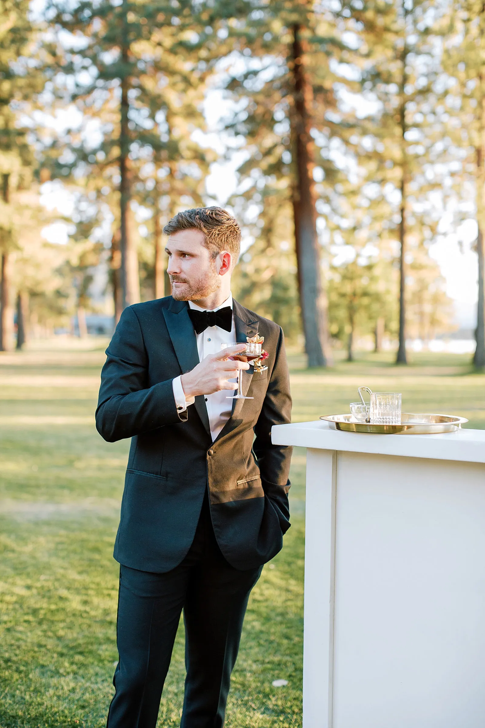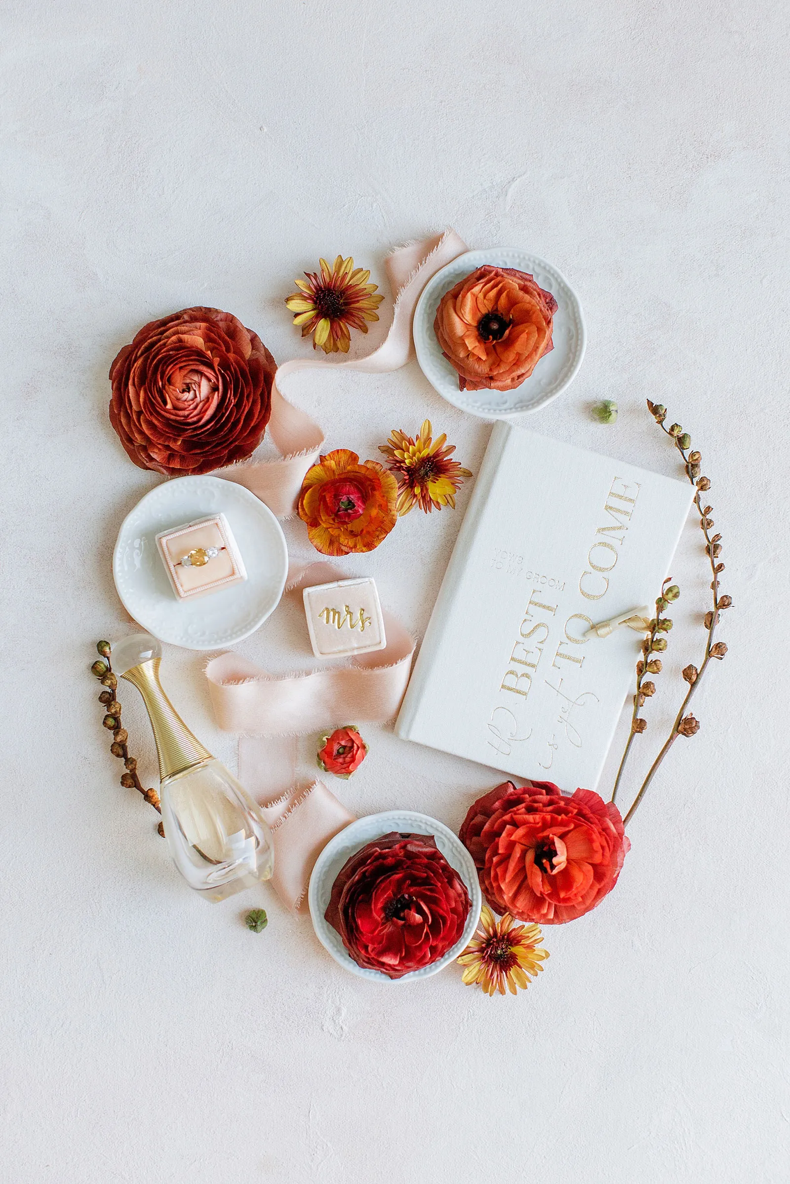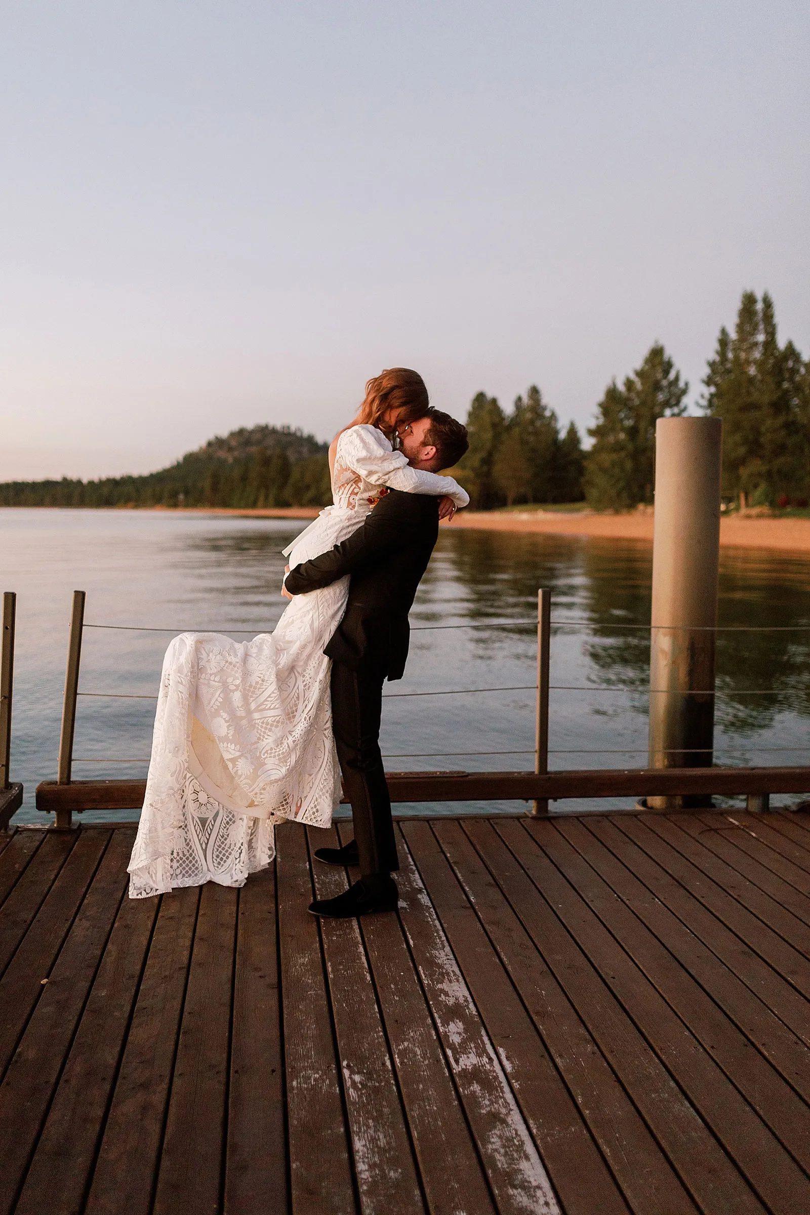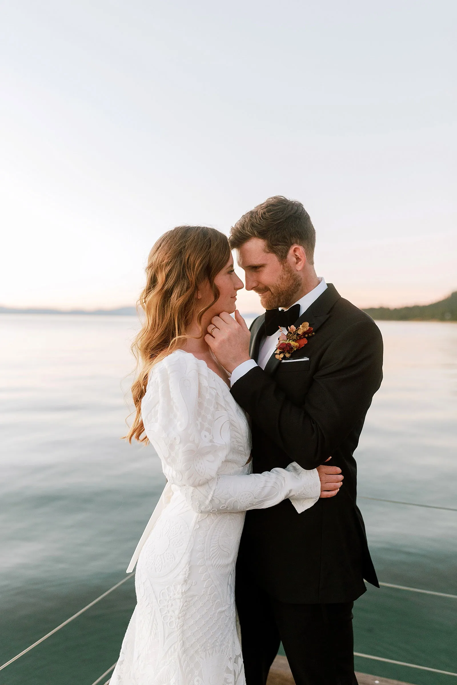 Lake Tahoe in the fall may have a chill in the air, but the colors in this styled shoot will certainly warm you up! The red florals, mustard yellow linens and gold (yes, GOLD!) chairs combine to create an incredibly inviting space. Plus, that dress; the lace, the sleeves, the cutouts; is to die for!