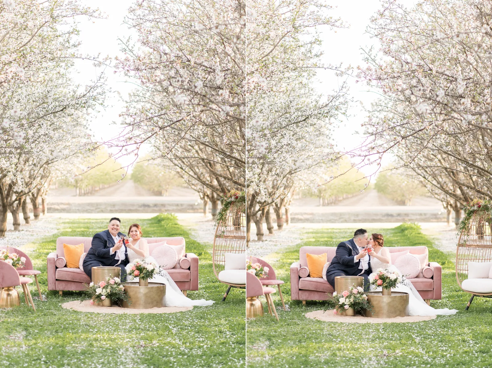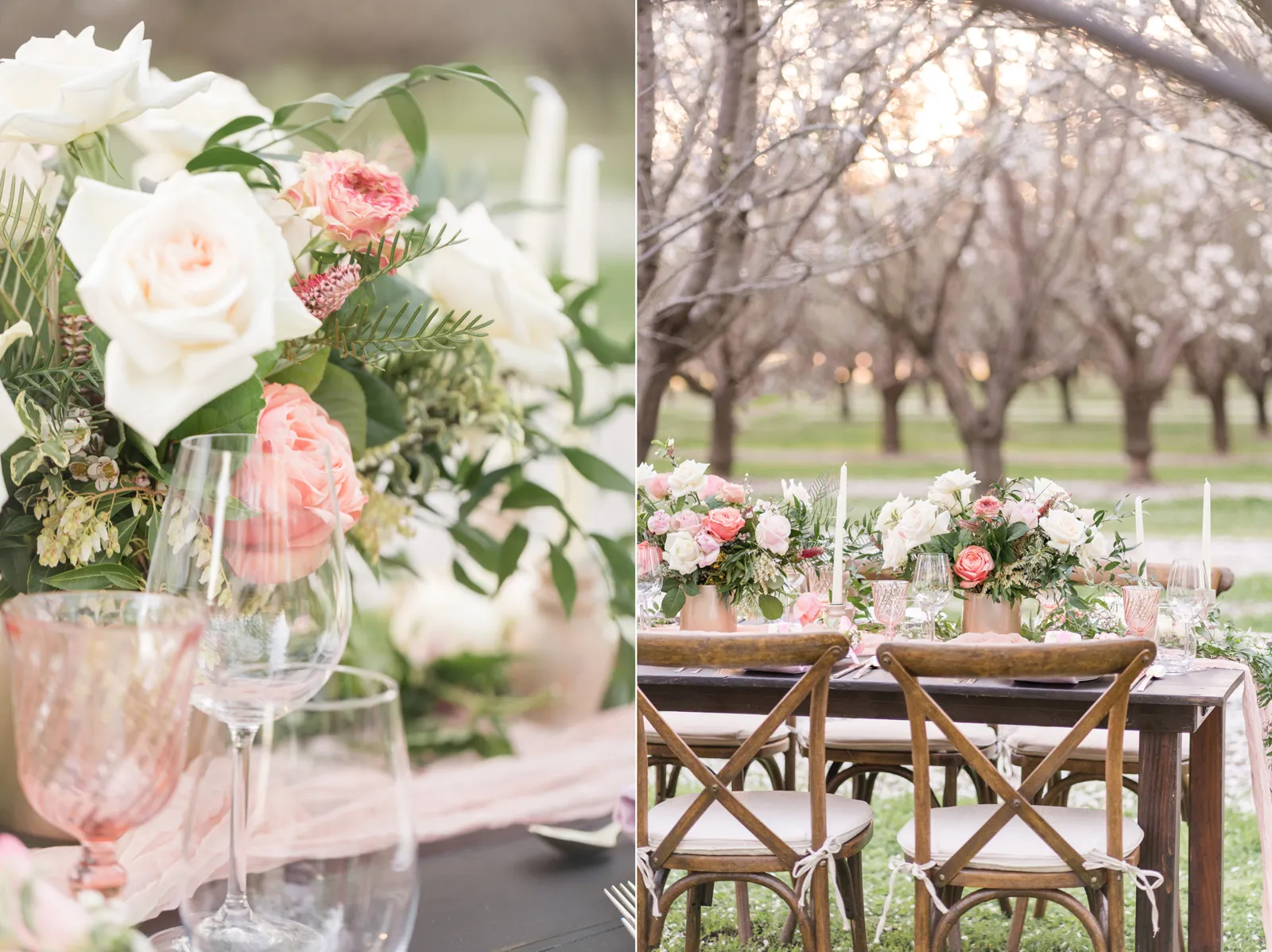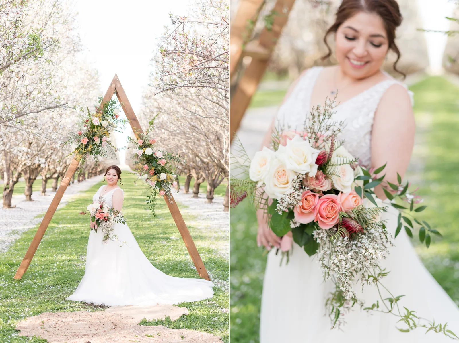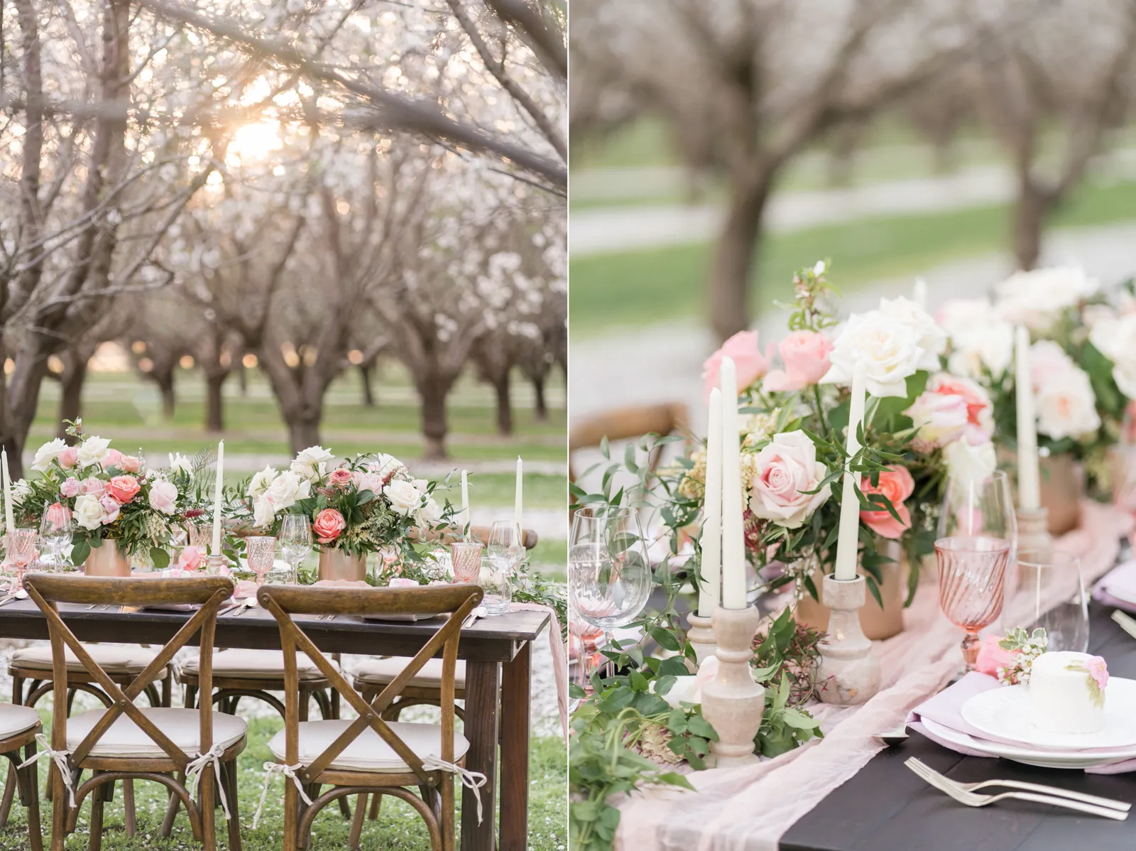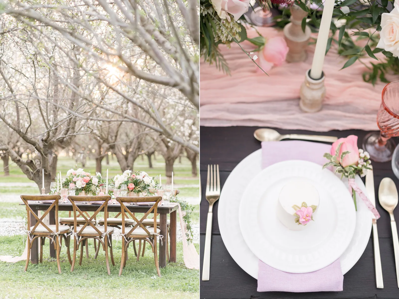Every year, Almond trees start to blossom in mid- to late-February for a few short weeks—and they often provide a romantic backdrop to photo shoots. And this beauty from an amazing group of creatives is no different! We gave you just a peek at this lovely shoot in the Summer/Fall 2022 issue on newsstands now, but we promised you more from this #RWSubmittedStyledShoot, so here you are…enjoy!