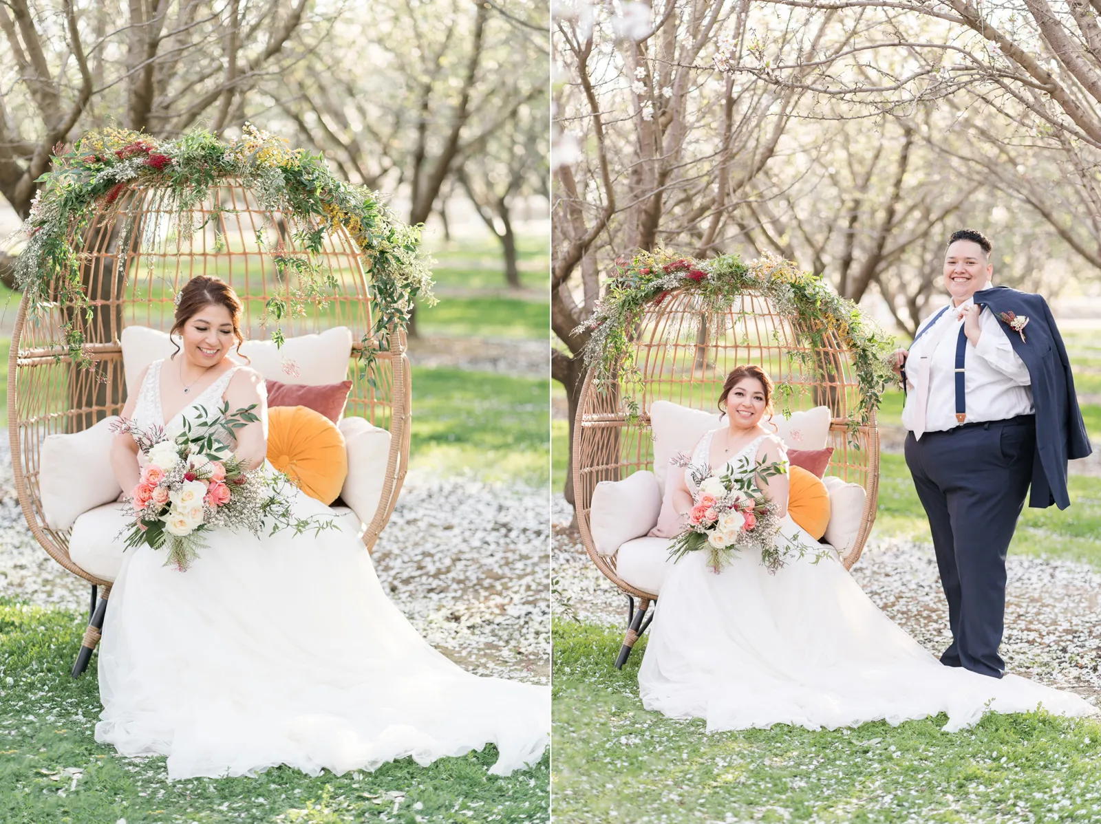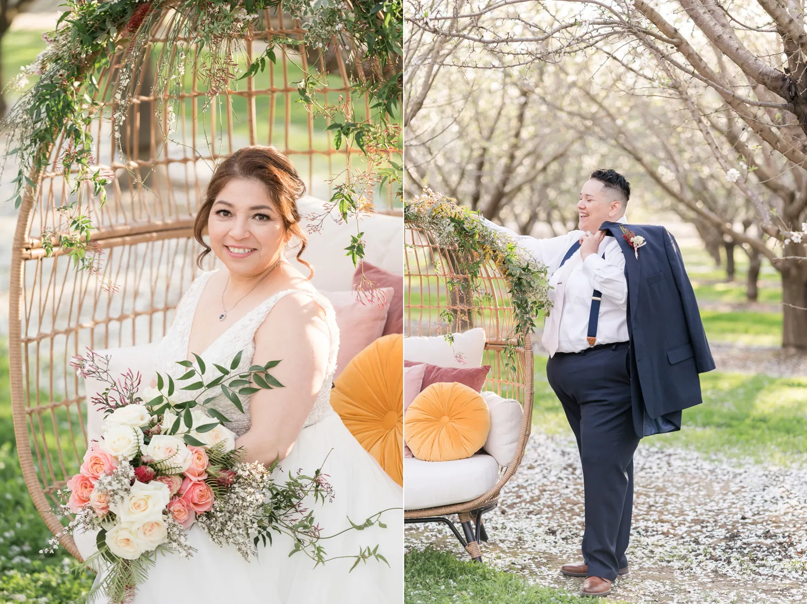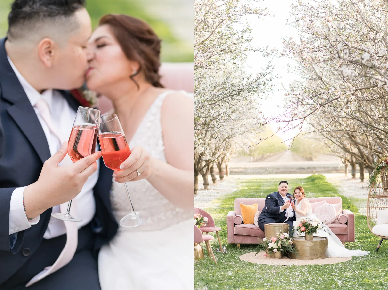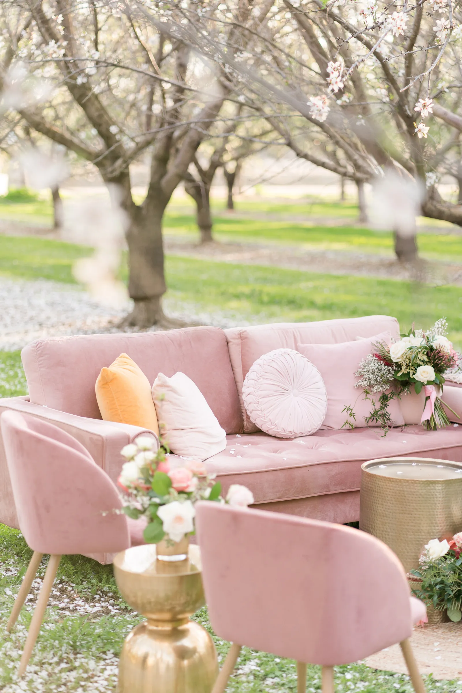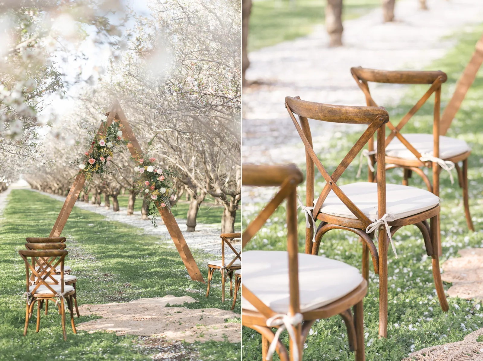 Every year, Almond trees start to blossom in mid- to late-February for a few short weeks—and they often provide a romantic backdrop to photo shoots. And this beauty from an amazing group of creatives is no different! We gave you just a peek at this lovely shoot in the Summer/Fall 2022 issue on newsstands now, but we promised you more from this #RWSubmittedStyledShoot, so here you are…enjoy!