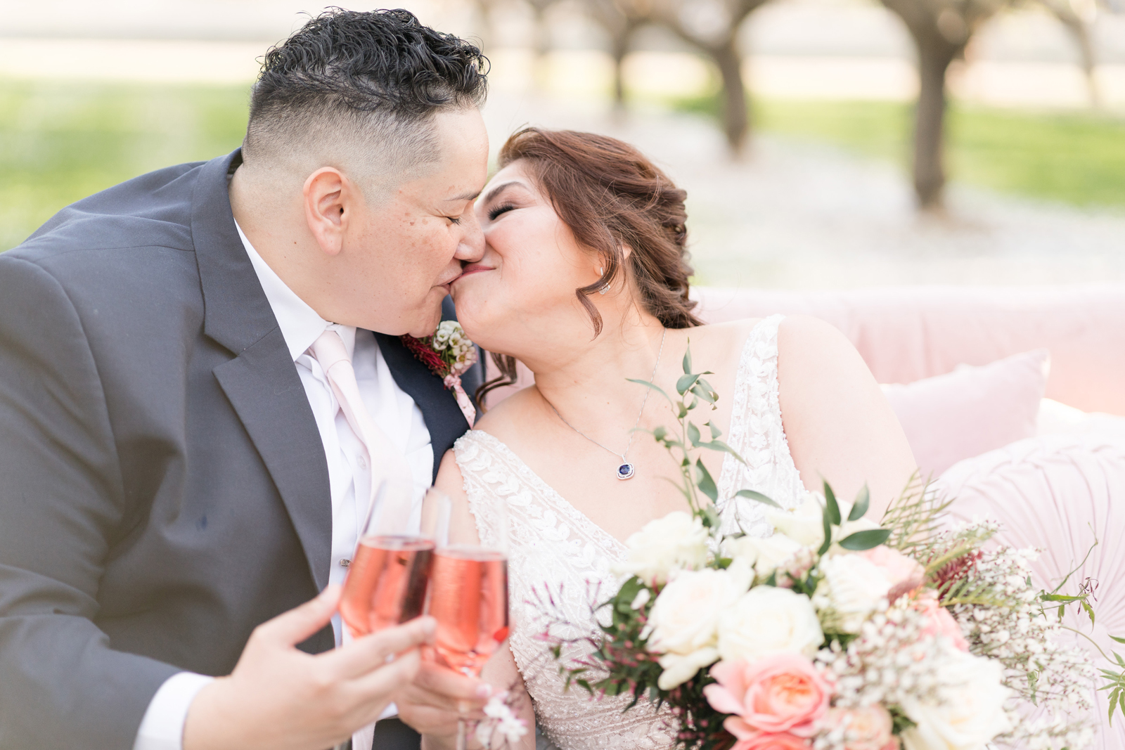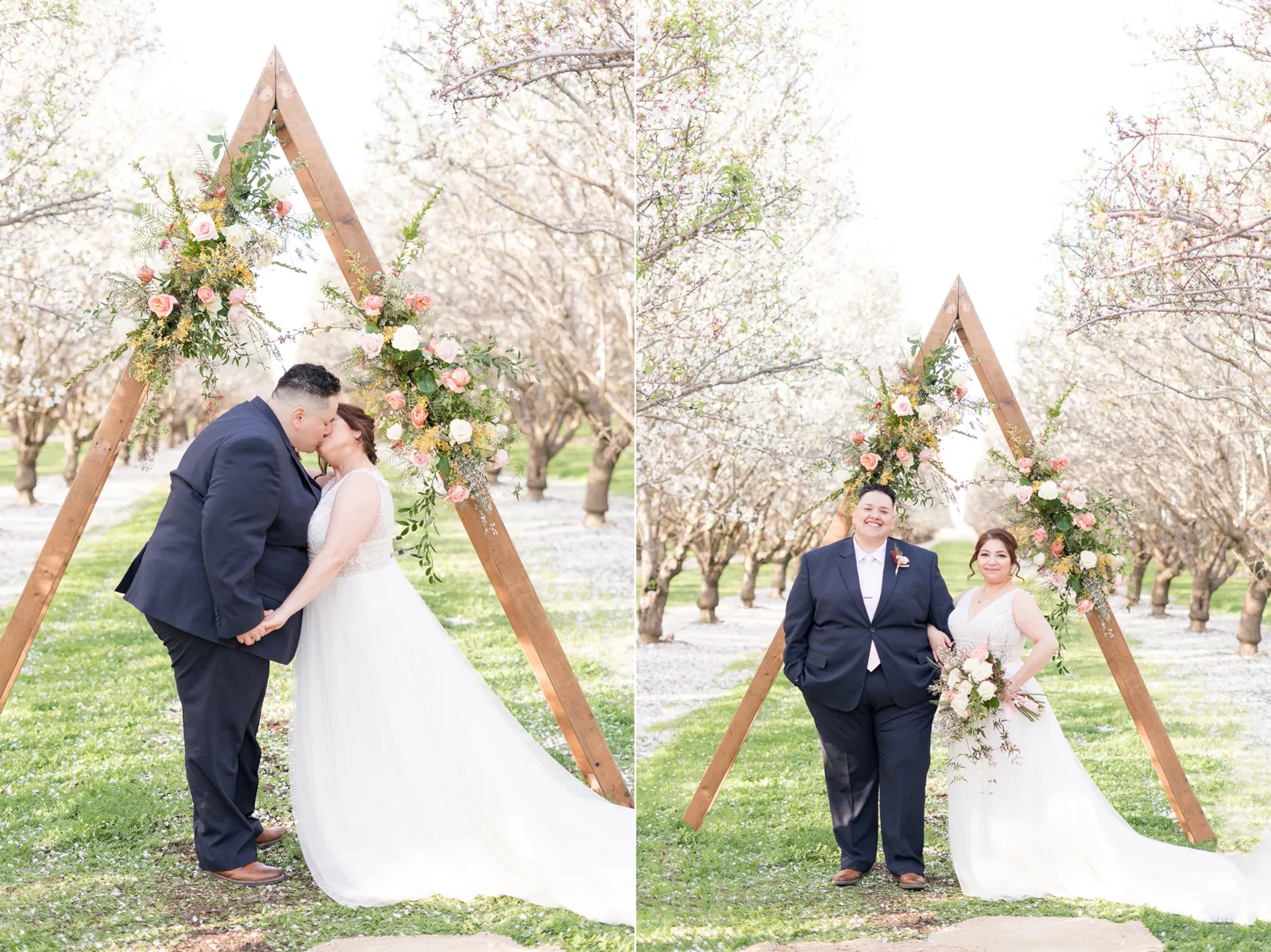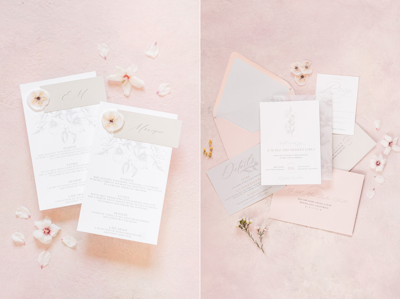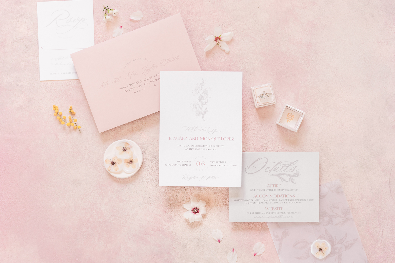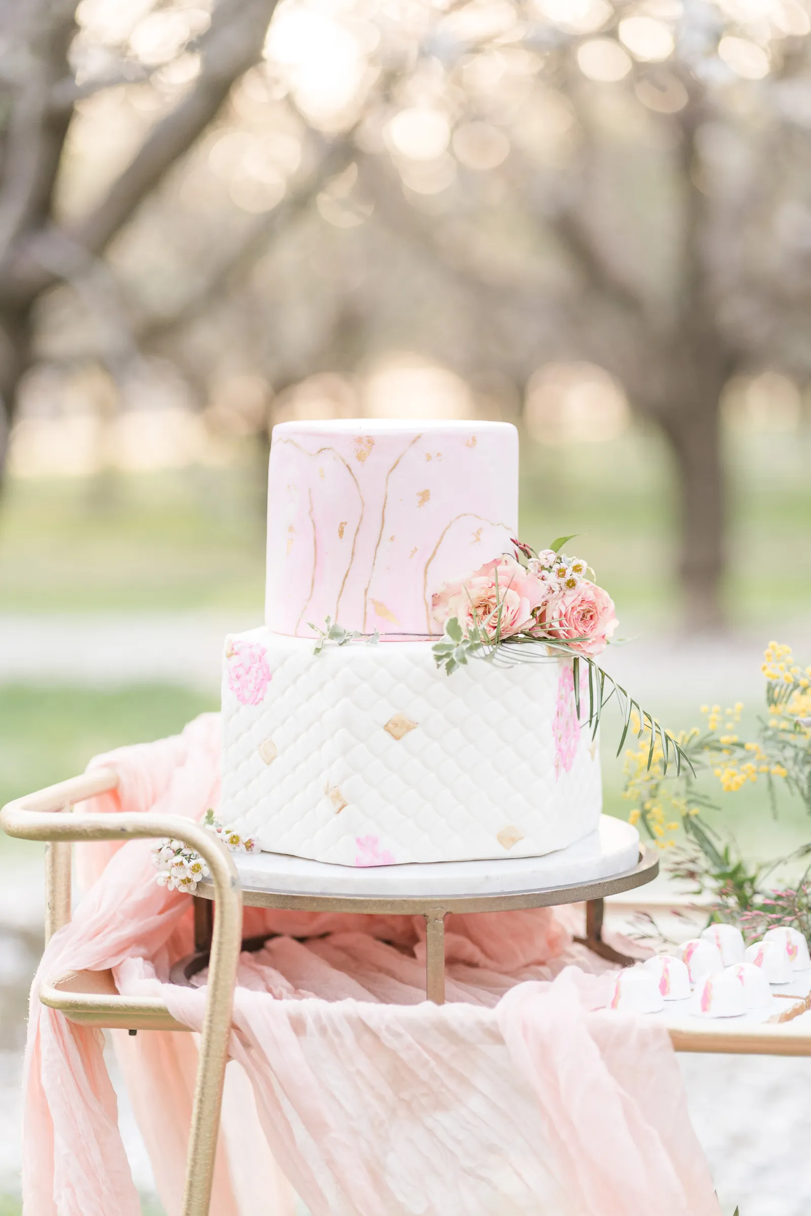 Every year, Almond trees start to blossom in mid- to late-February for a few short weeks—and they often provide a romantic backdrop to photo shoots. And this beauty from an amazing group of creatives is no different! We gave you just a peek at this lovely shoot in the Summer/Fall 2022 issue on newsstands now, but we promised you more from this #RWSubmittedStyledShoot, so here you are…enjoy!