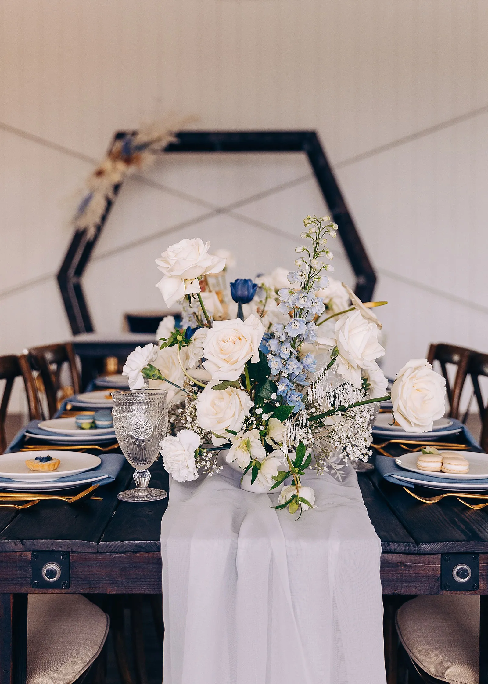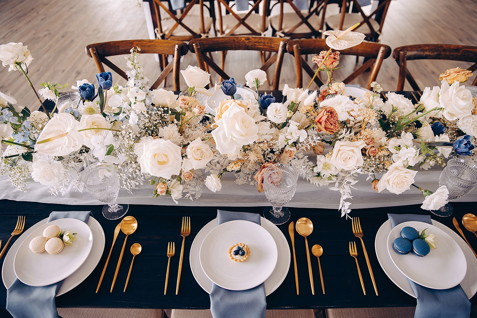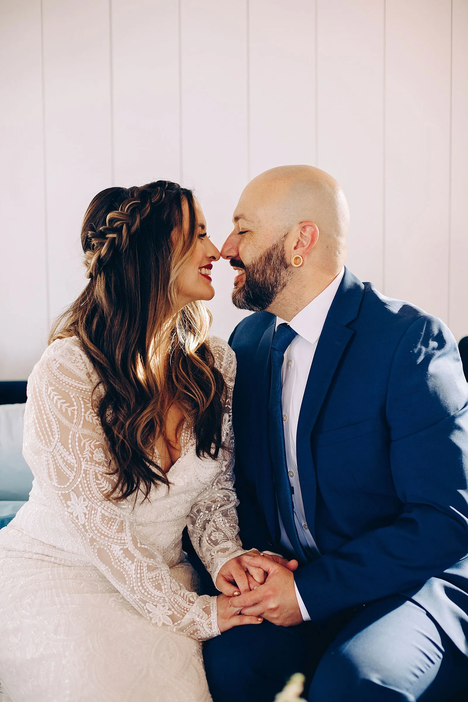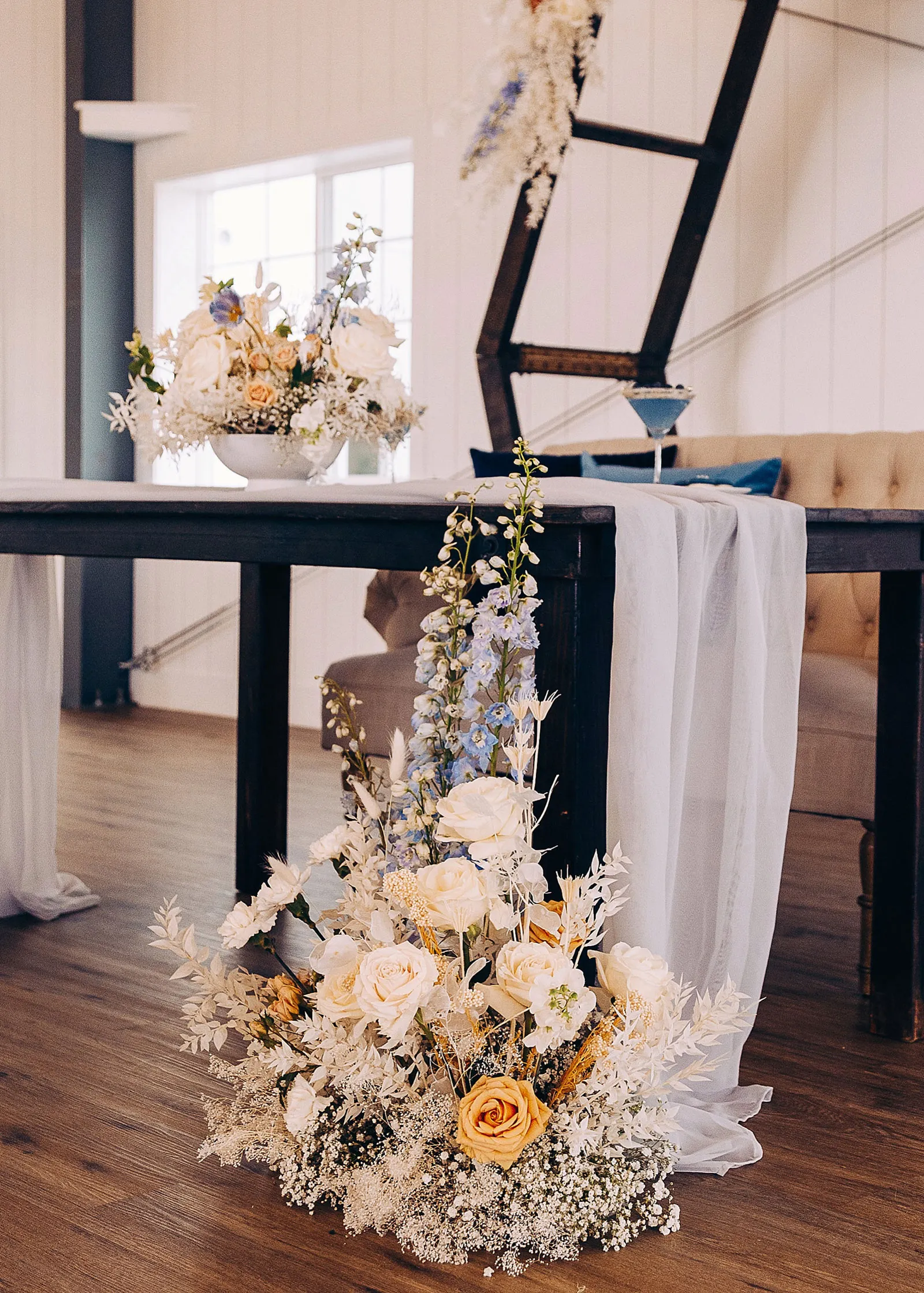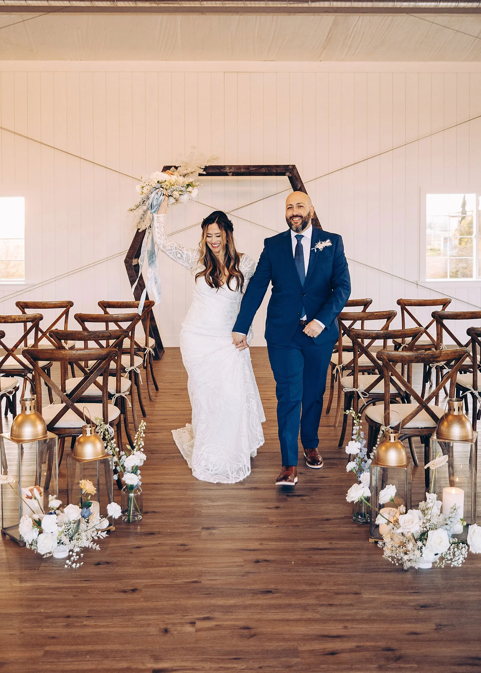 “Anthony proposed to Christine 10 years ago but he couldn’t afford a ring at the time so he used his grandmother’s ring. They eloped at a park with only a few close friends and family. They loved their elopement but always wondered how it would feel with the full glam of a big wedding day. The couple teared up at the shoot seeing each other in their dress and suit all done up. We played their first dance song at the shoot and Christine began to cry! It was SO sweet and such a special shoot to be a part of.”