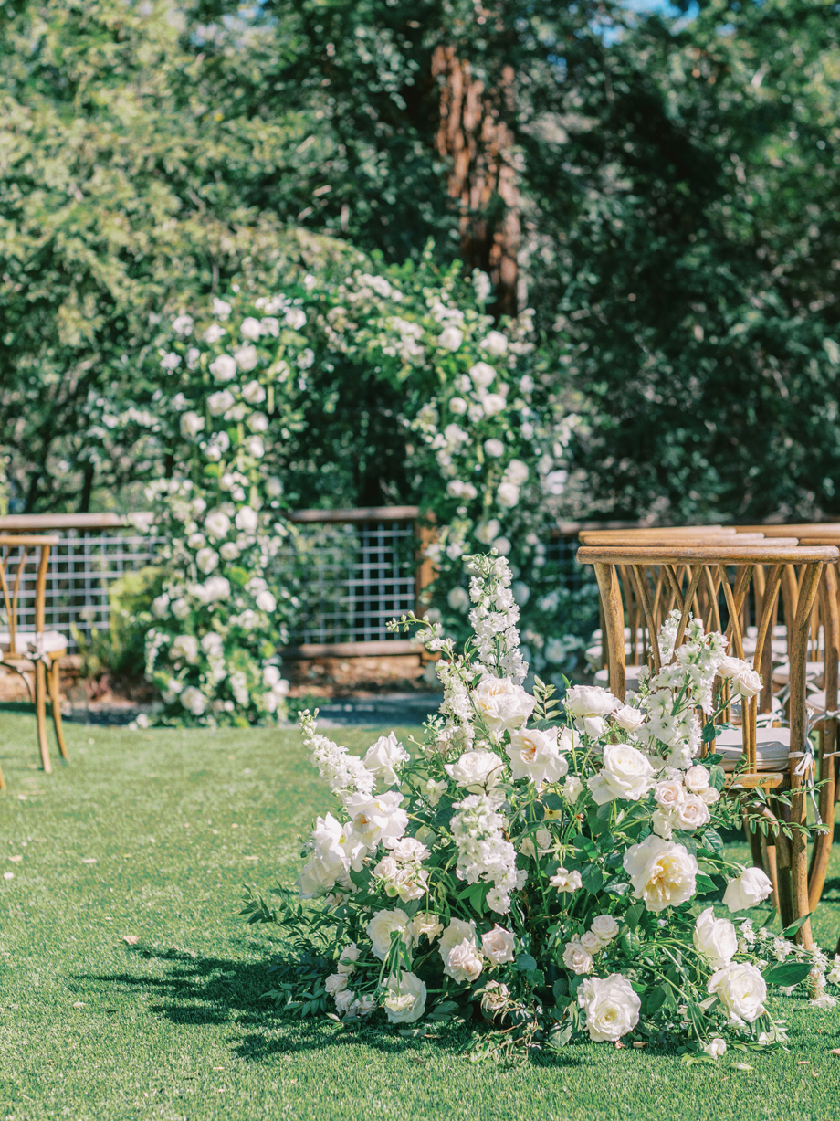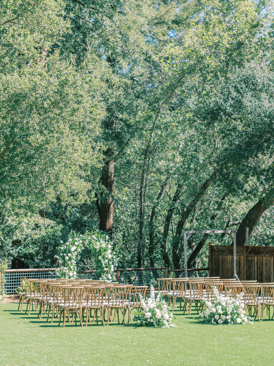 The vision for this styled shoot was to intertwine natural elements with artistic nuances, drawing inspiration from classical ceiling paintings of angels and serene forest backdrops. The Ranch at Little Hills in San Ramon served as the ideal canvas for this concept, offering a harmonious blend of expansive grassy fields and intimate wooded areas. To bring this vision to life, a curated team of vendors was assembled, including two distinct florists who each contributed their unique artistry.
