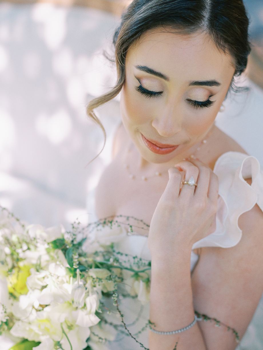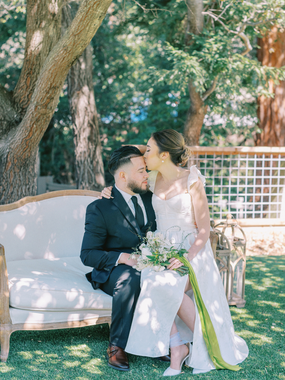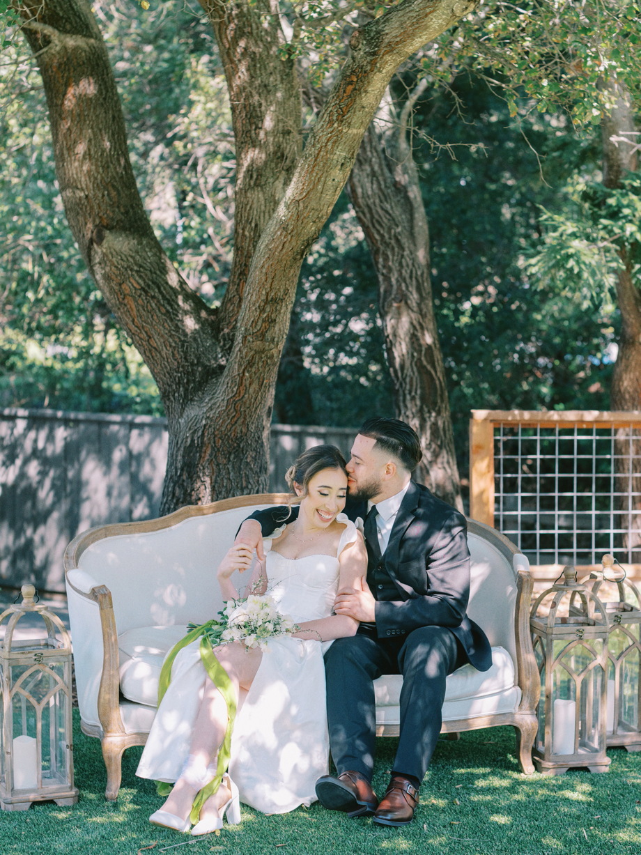We asked Jacqueline Banuelos, the shoot’s editorial producer, about the inspiration behind this styled shoot, and here’s what she had to say, “In the heart of San Ramon, amidst the rolling hills and towering trees, a collaborative team of talented vendors came together to create a wedding scene that seamlessly blended nature’s beauty with artistic elegance. Captured through the discerning lens of Danya Chen Photography, each photograph not only highlighted the day’s radiant moments but also showcased the meticulous attention to detail and the genuine emotions of the subjects.