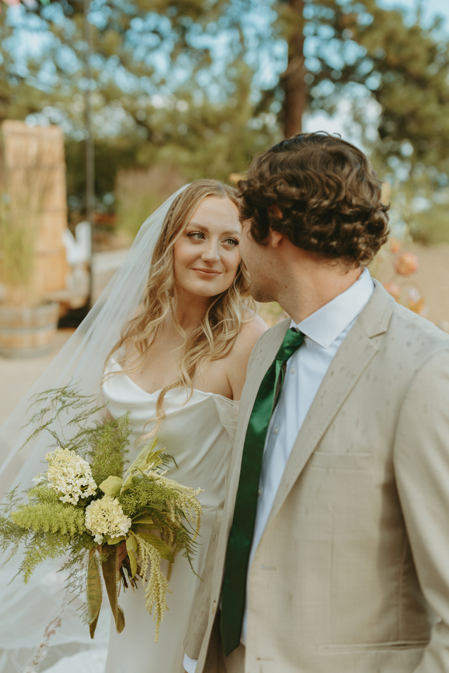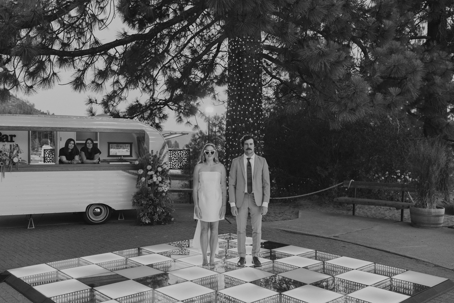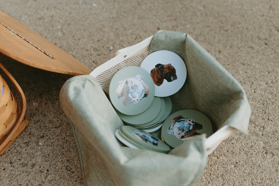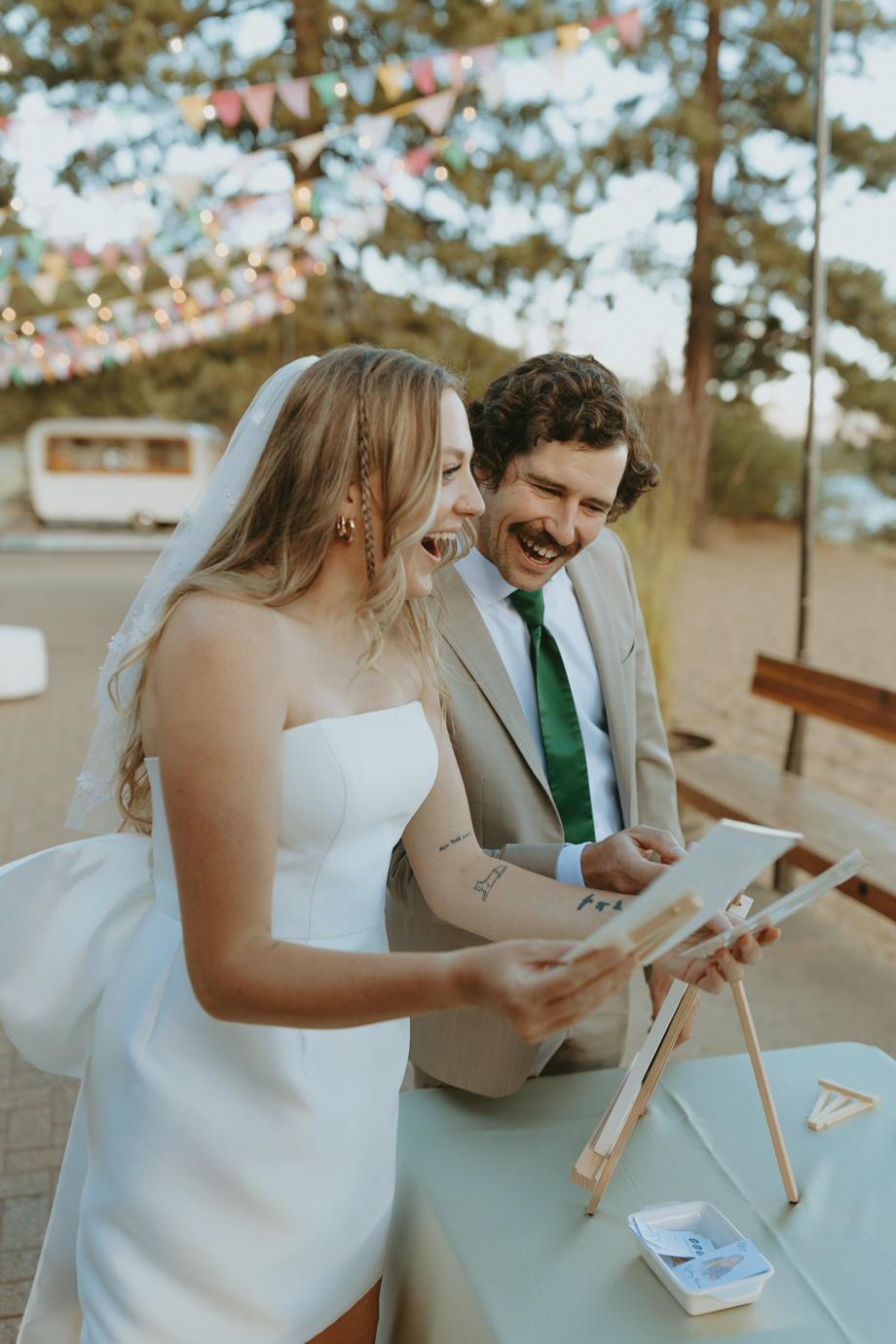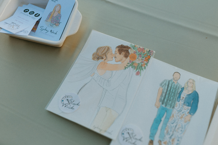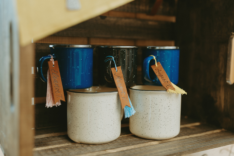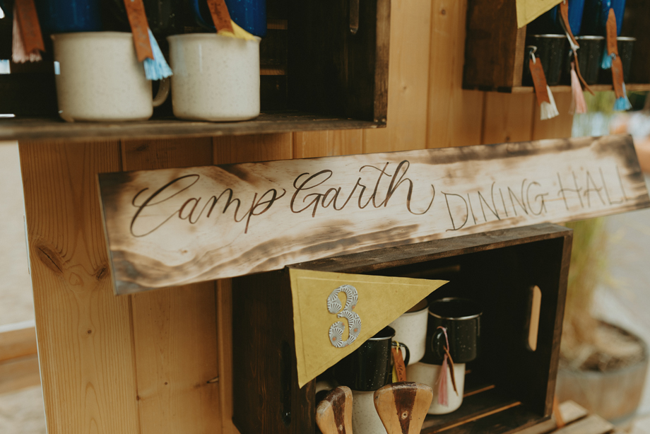 Beneath towering pines, the day was designed to unfold like a real experience—from the quiet moments before the ceremony to dancing late into the mountain night. Gorgeous, intentional details were everywhere you looked, each one thoughtfully chosen and layered together so the entire day felt cohesive rather than styled in separate parts. A live painter quietly captured moments as they happened, while Coco Chanel, the English Bulldog, happily stole a bit of the spotlight—adding personality and that carefree, slightly whimsical camp vibe that made everything feel relaxed and joyful.