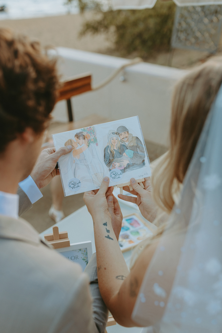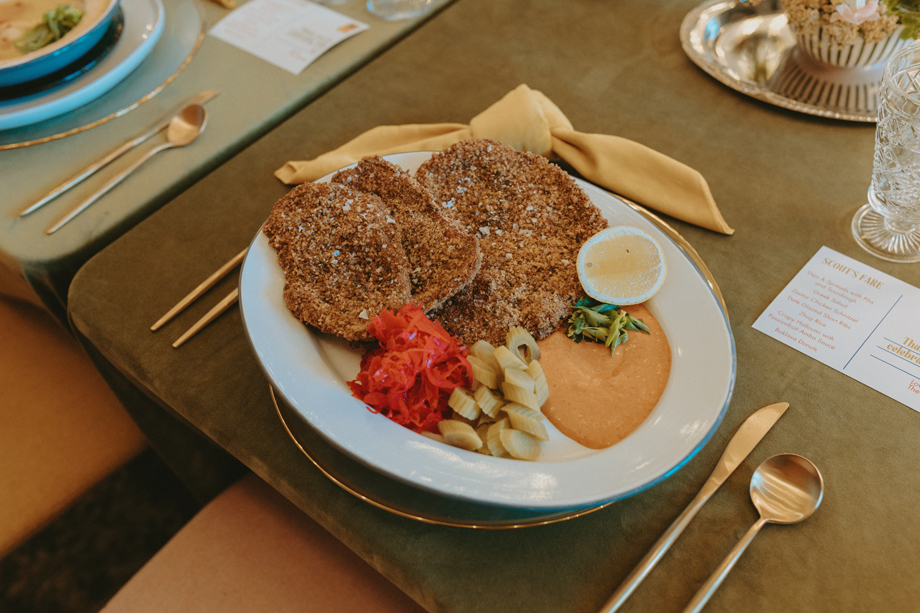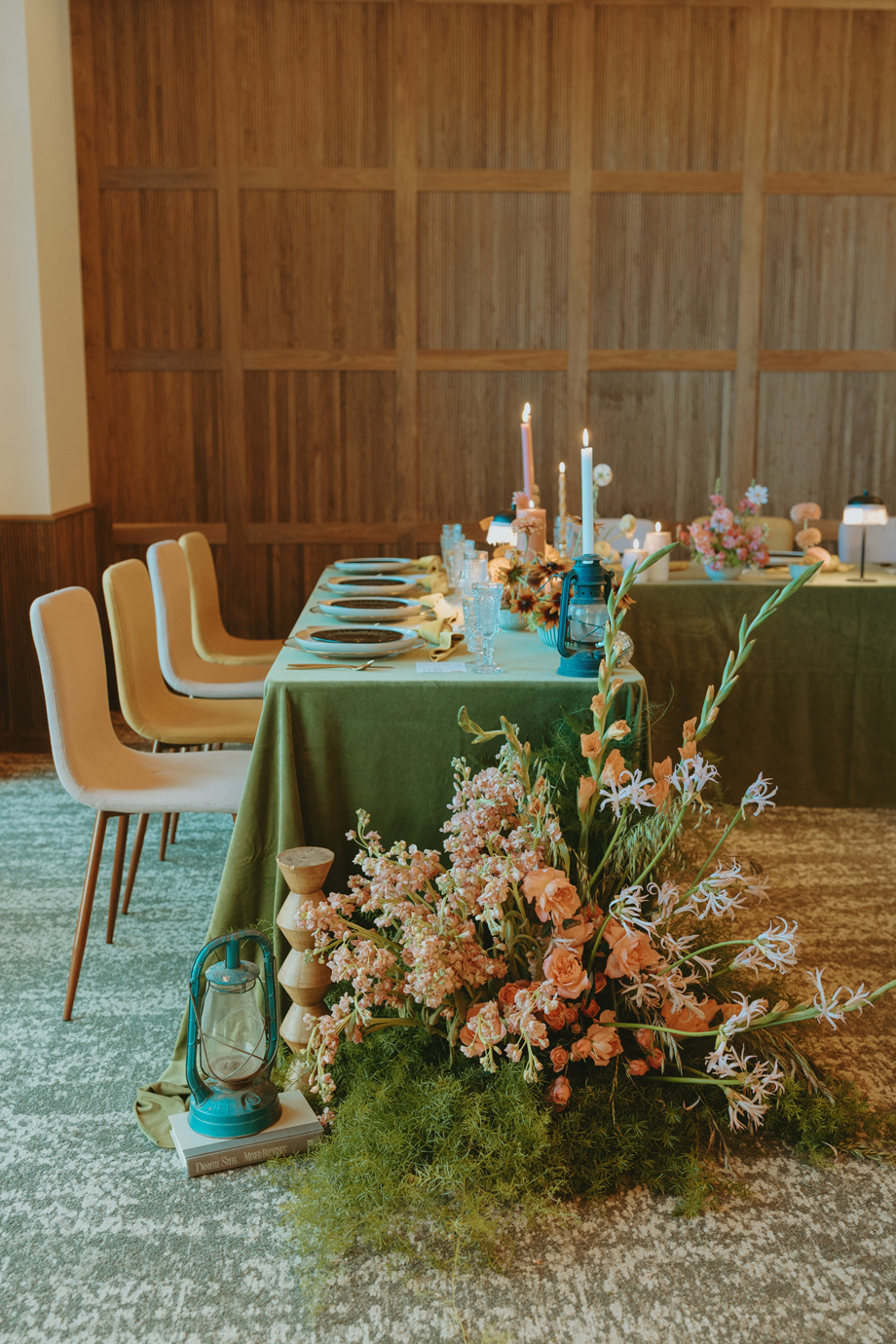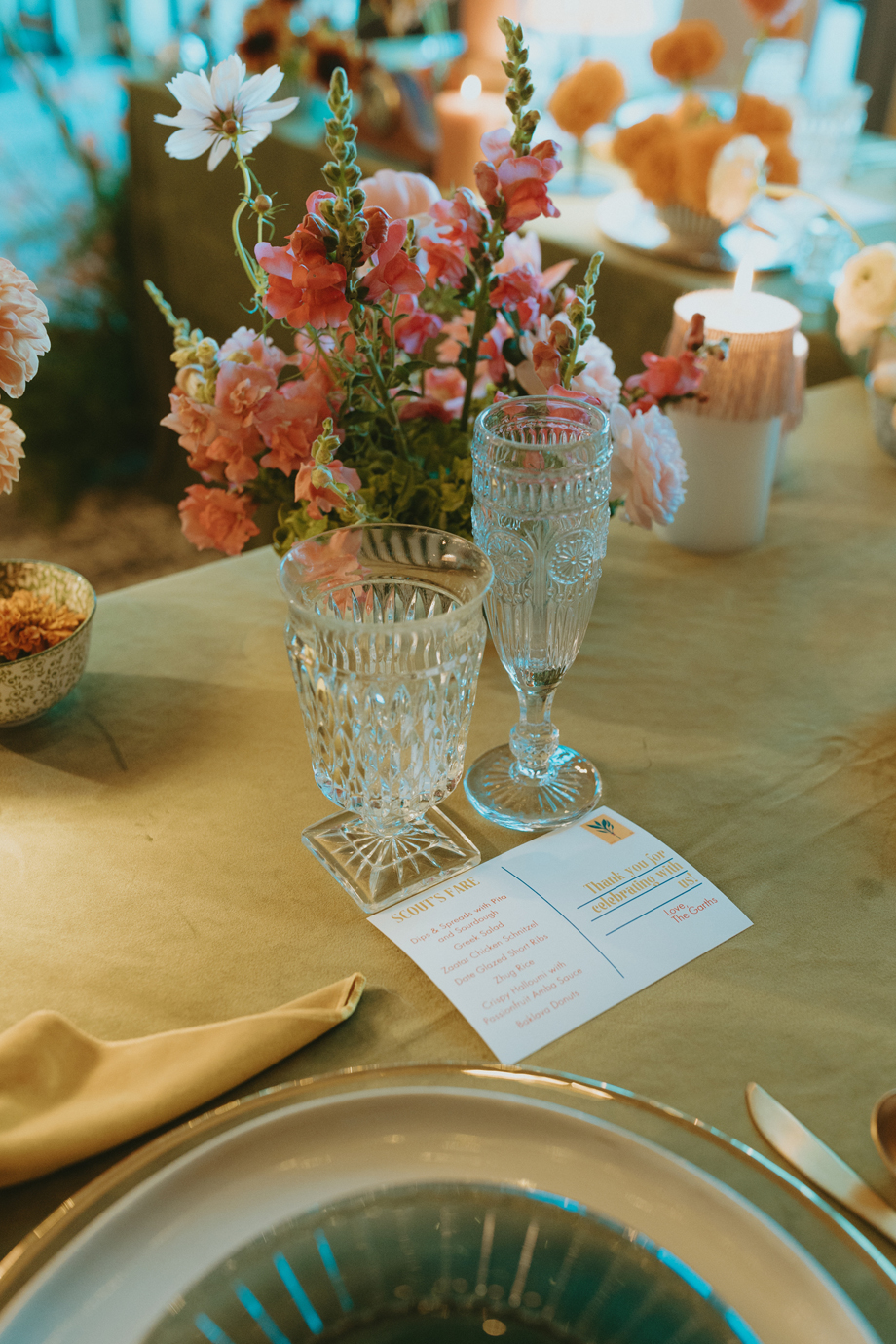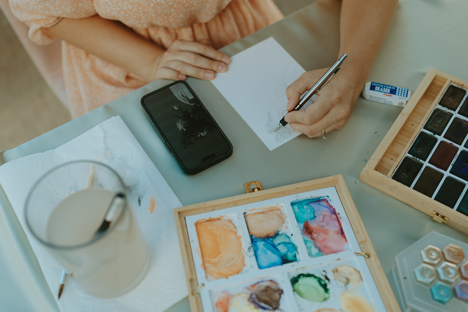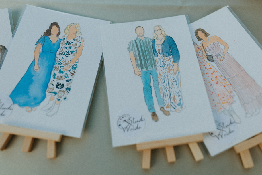 Beneath towering pines, the day was designed to unfold like a real experience—from the quiet moments before the ceremony to dancing late into the mountain night. Gorgeous, intentional details were everywhere you looked, each one thoughtfully chosen and layered together so the entire day felt cohesive rather than styled in separate parts. A live painter quietly captured moments as they happened, while Coco Chanel, the English Bulldog, happily stole a bit of the spotlight—adding personality and that carefree, slightly whimsical camp vibe that made everything feel relaxed and joyful.