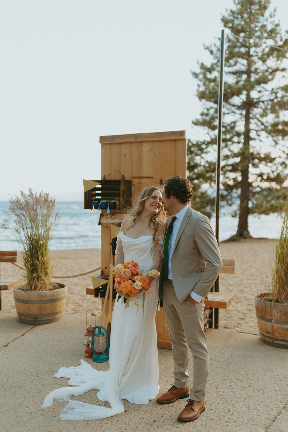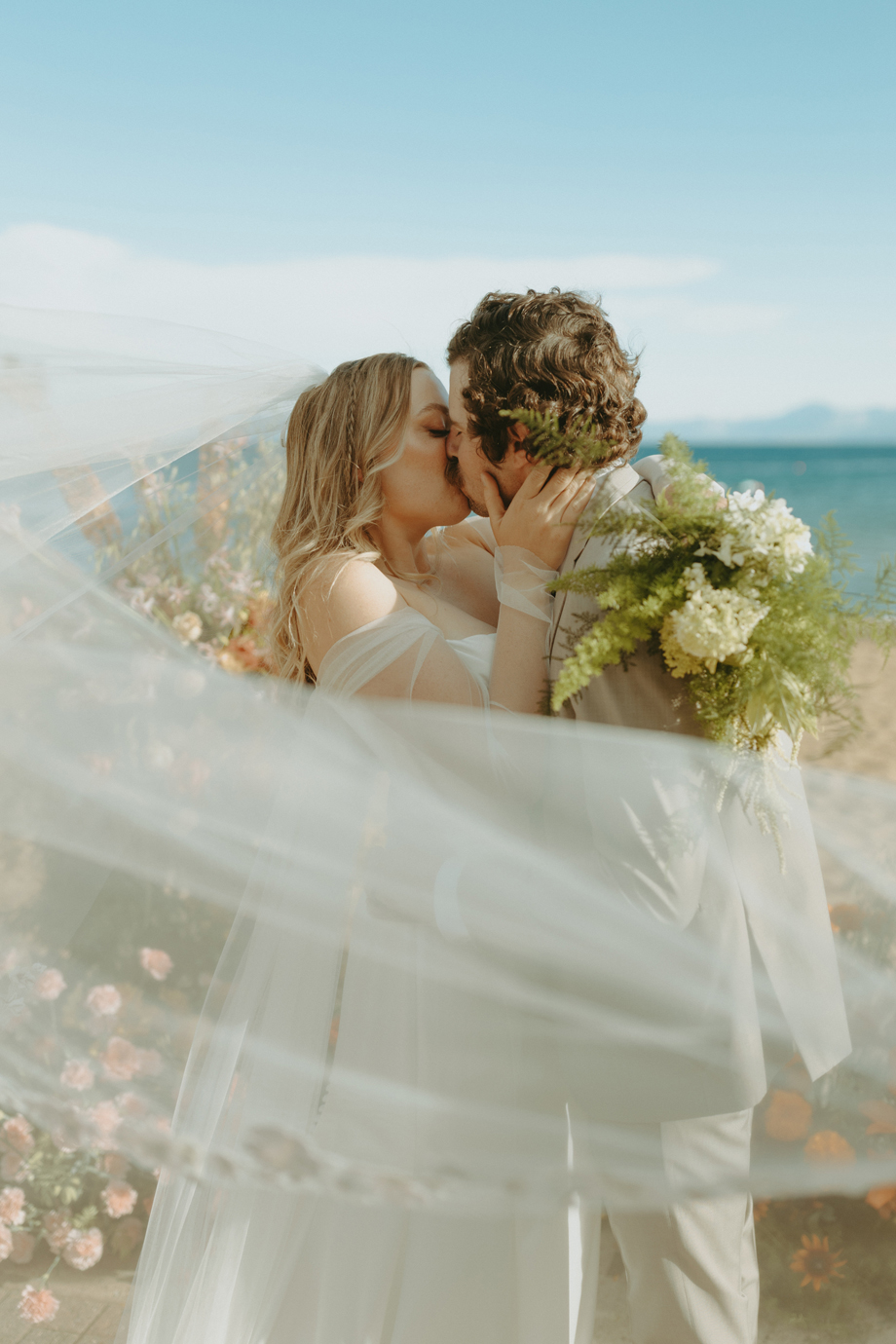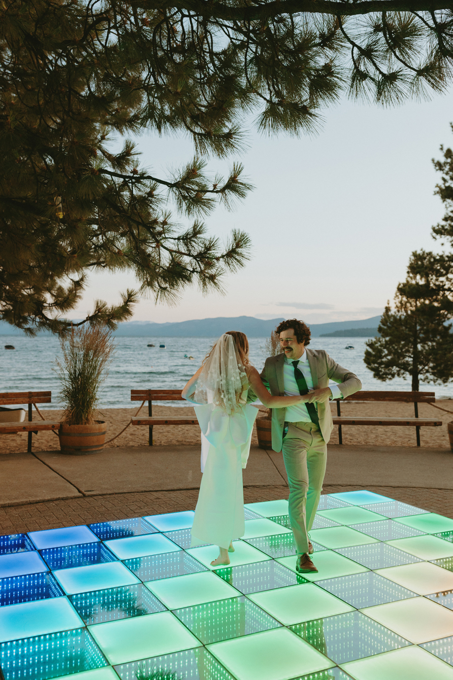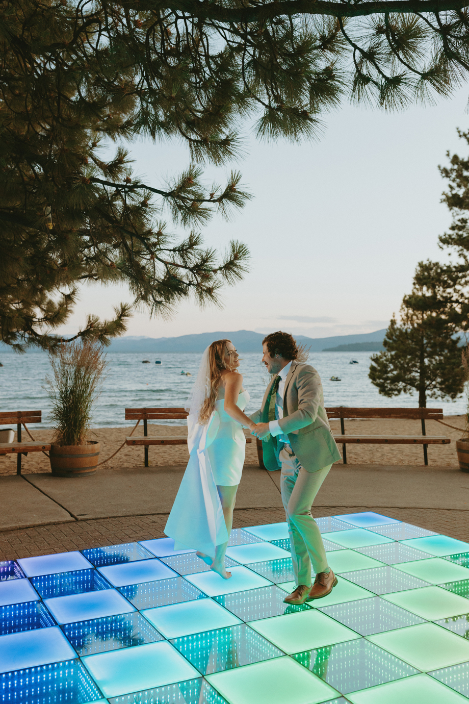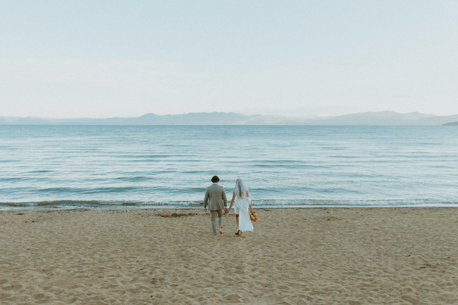 The ceremony let Lake Tahoe’s natural beauty lead while still feeling personal and intimate. Paper goods, rich fabrics, sculptural florals, and fashion-forward styling carried the story into cocktail hour and the reception, where candlelight and curated tablescapes warmed the cool alpine air—editorial yet inviting, elevated but never too serious.