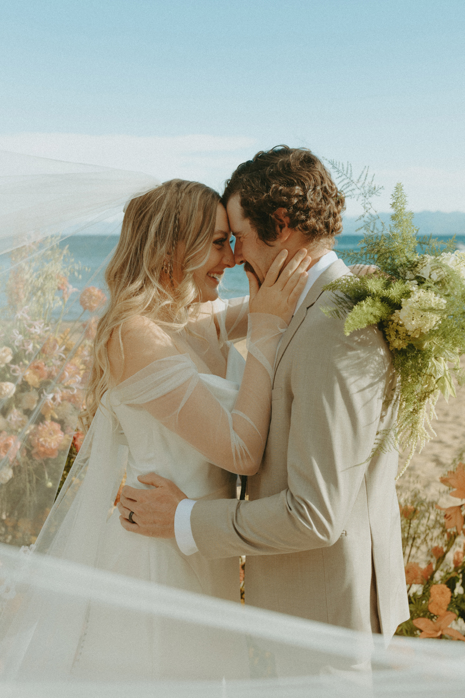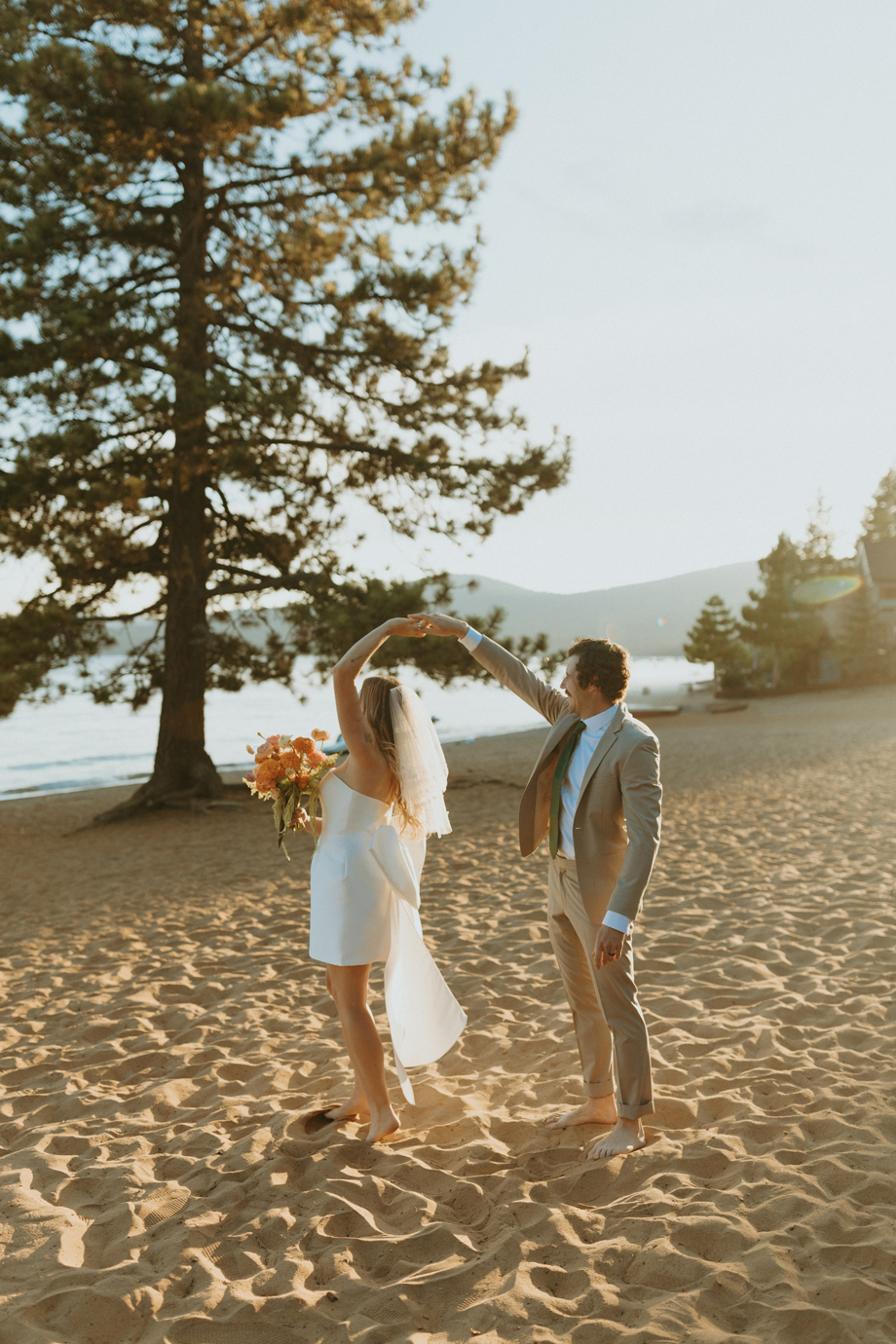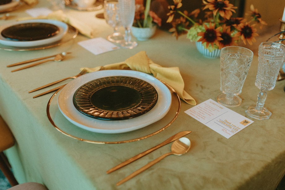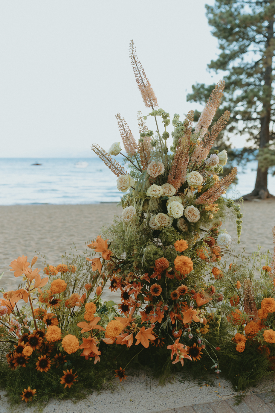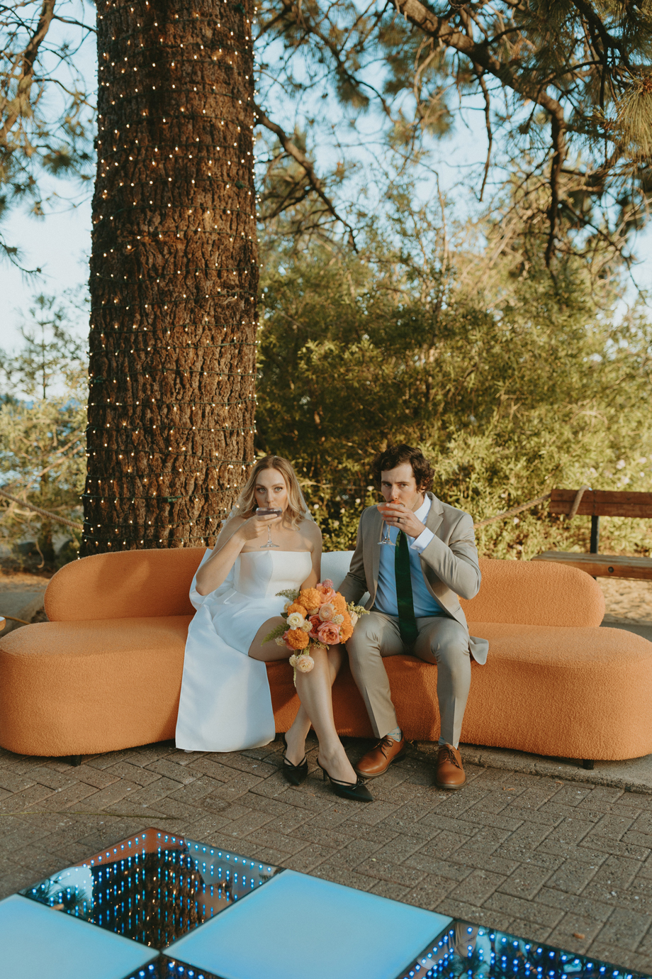 The ceremony let Lake Tahoe’s natural beauty lead while still feeling personal and intimate. Paper goods, rich fabrics, sculptural florals, and fashion-forward styling carried the story into cocktail hour and the reception, where candlelight and curated tablescapes warmed the cool alpine air—editorial yet inviting, elevated but never too serious.