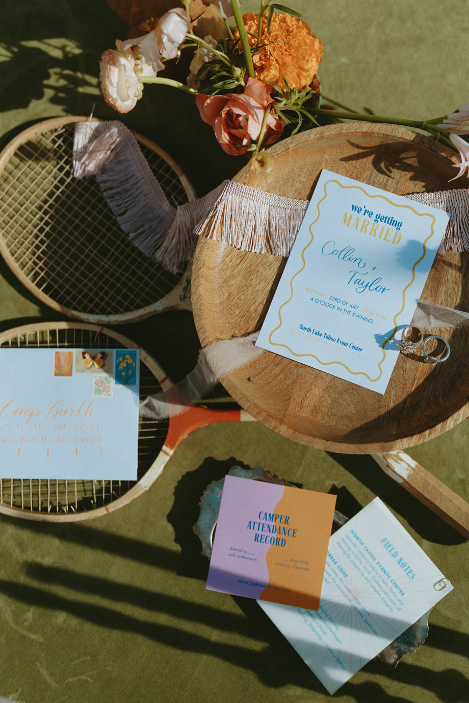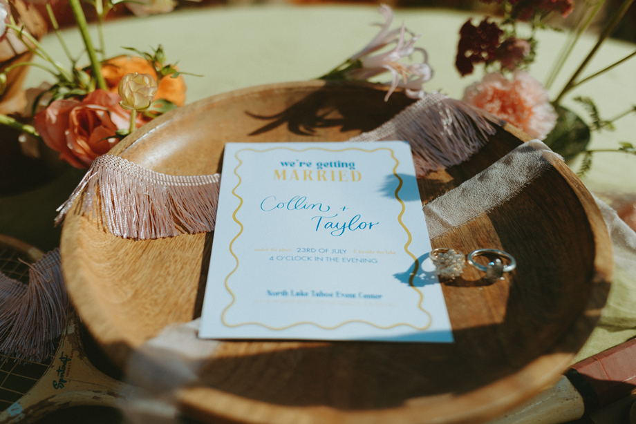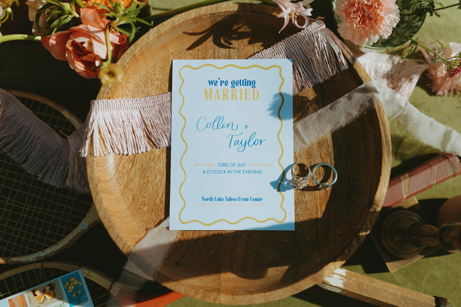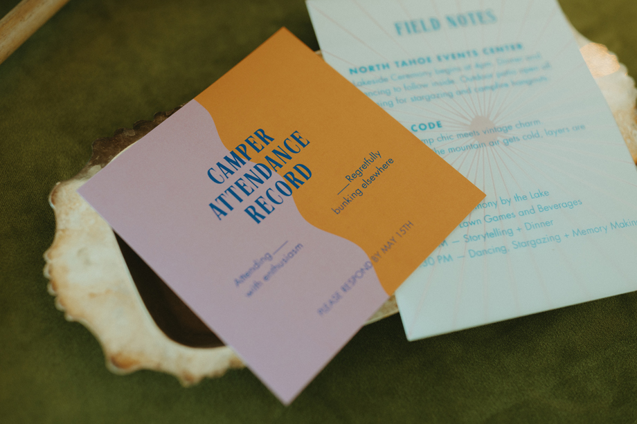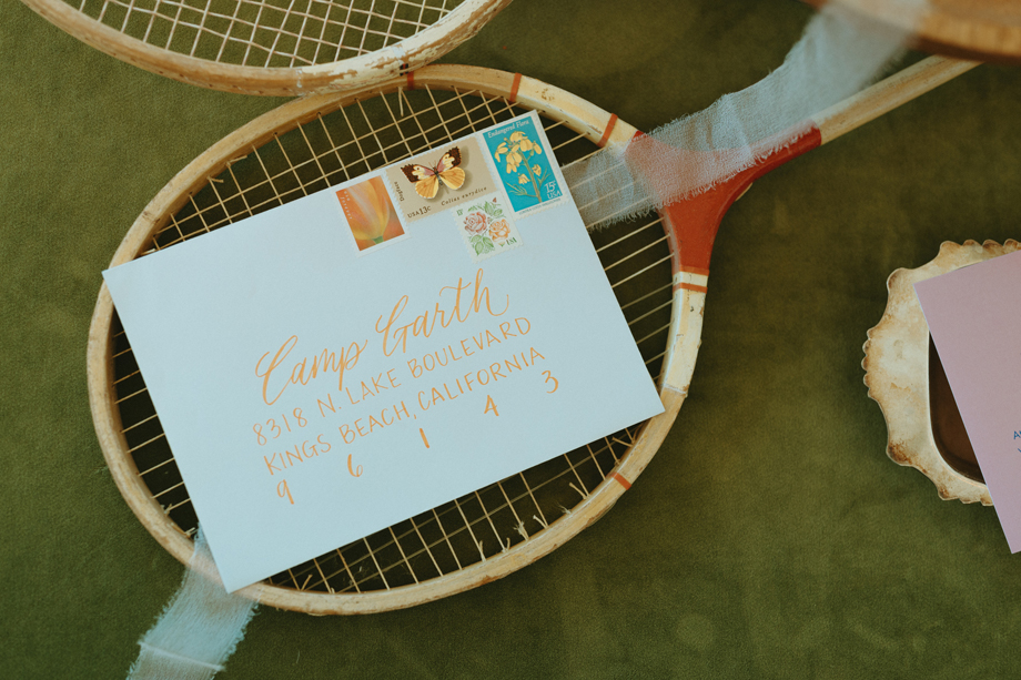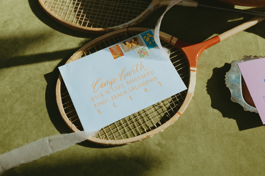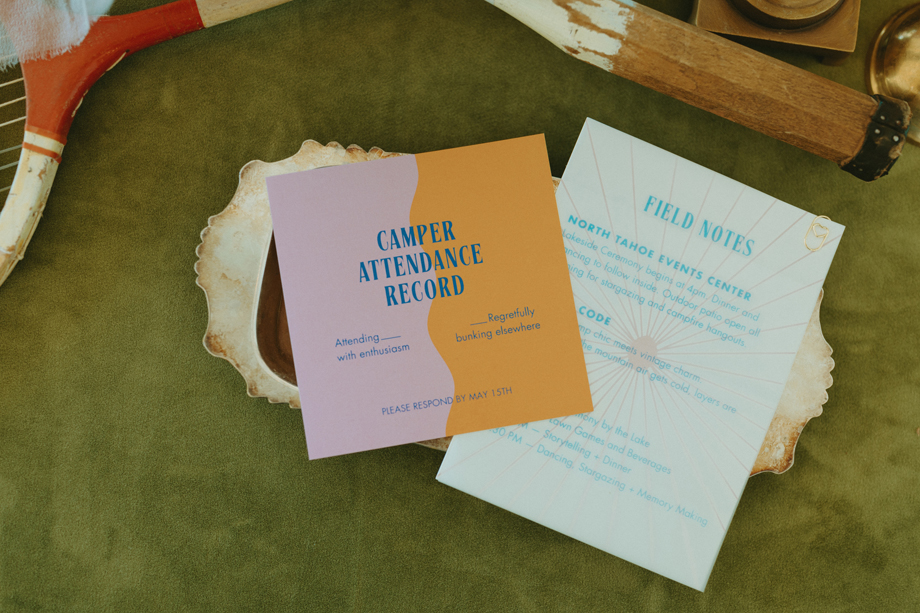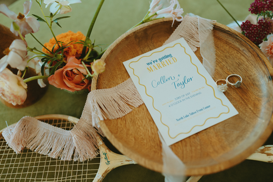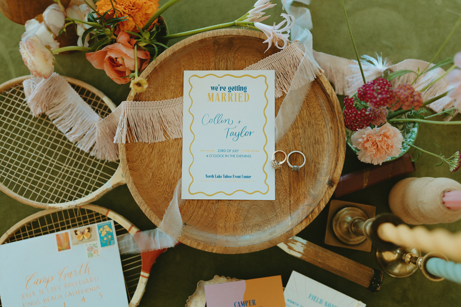 Soft alpine light, a little nostalgia, and the feeling you’ve stepped into a movie—that was the energy behind this Lake Tahoe styled shoot. Inspired by the whimsical storytelling and color palettes of Wes Anderson, eighteen talented local wedding creatives came together in the mountains to explore what a wedding day can feel like when every detail has intention behind it—with playful summer camp charm woven throughout.