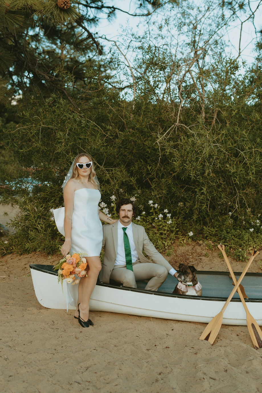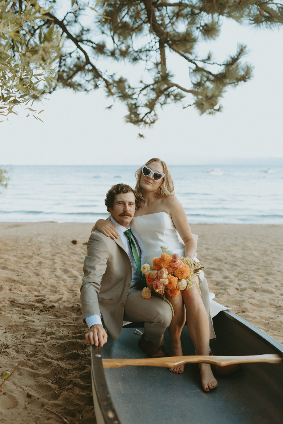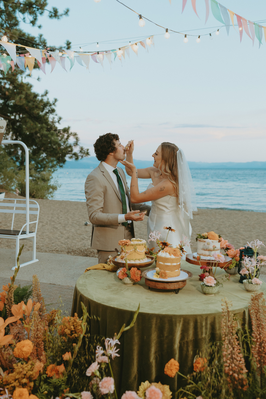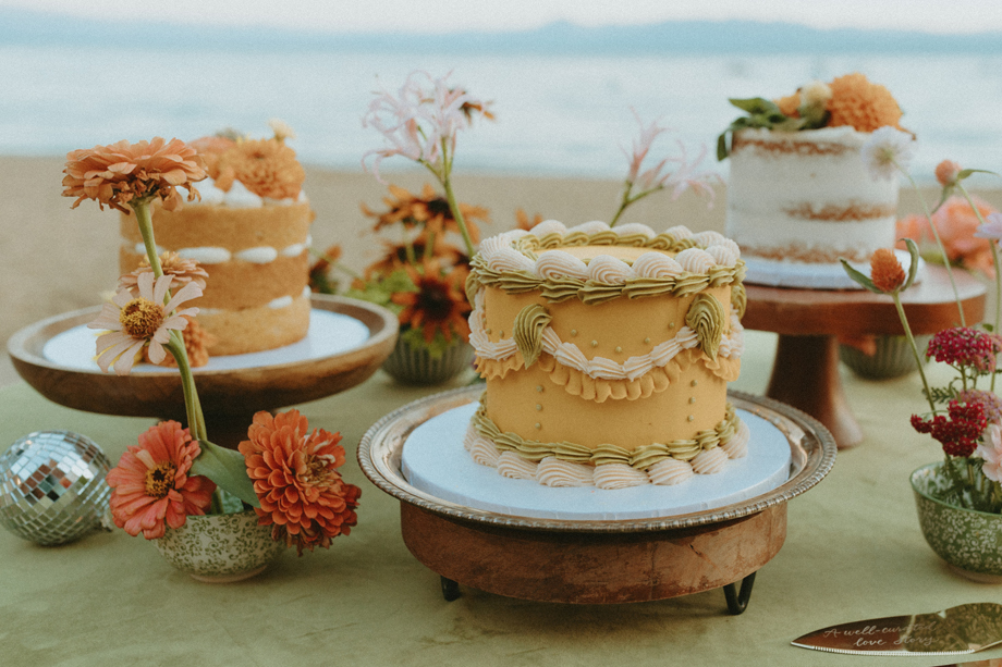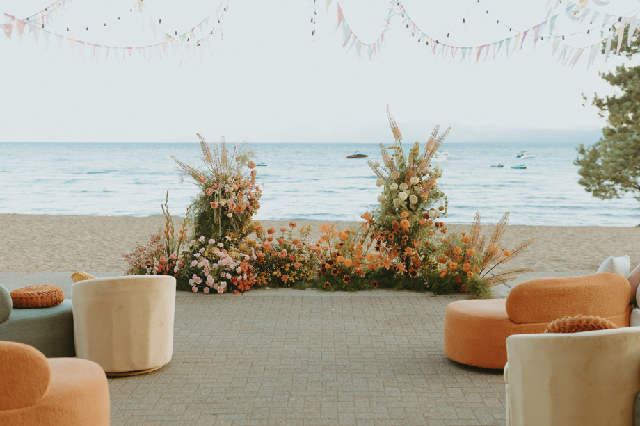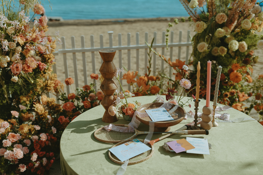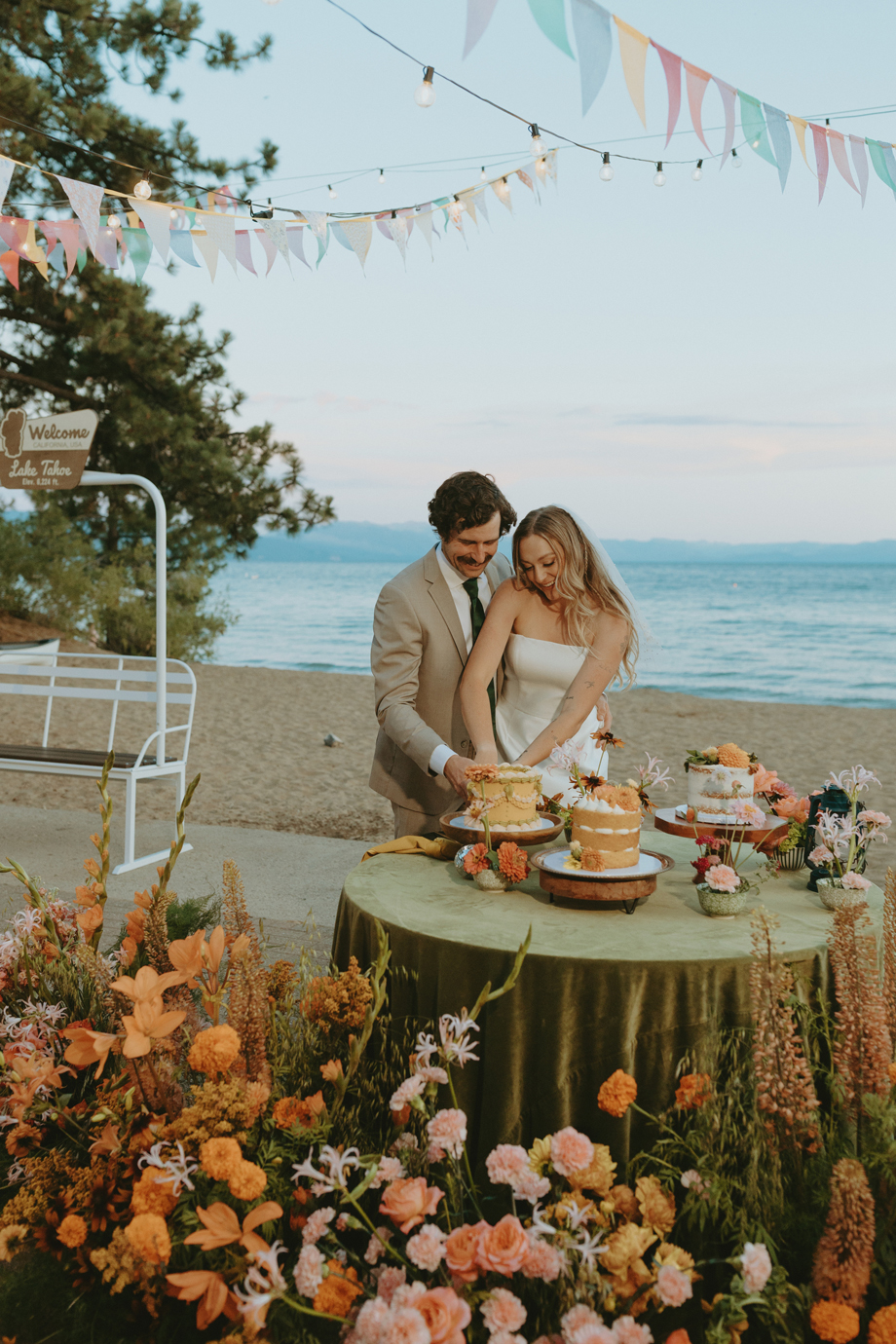 Soft alpine light, a little nostalgia, and the feeling you’ve stepped into a movie—that was the energy behind this Lake Tahoe styled shoot. Inspired by the whimsical storytelling and color palettes of Wes Anderson, eighteen talented local wedding creatives came together in the mountains to explore what a wedding day can feel like when every detail has intention behind it—with playful summer camp charm woven throughout.