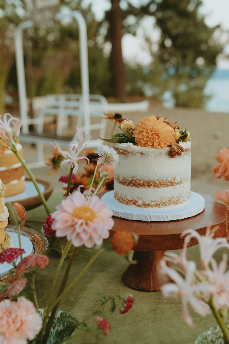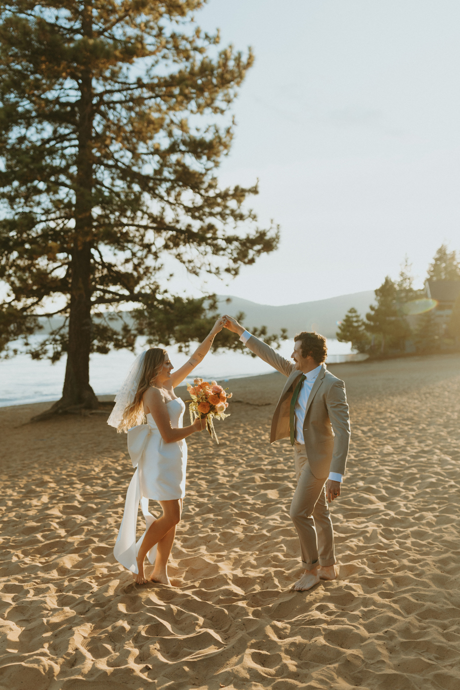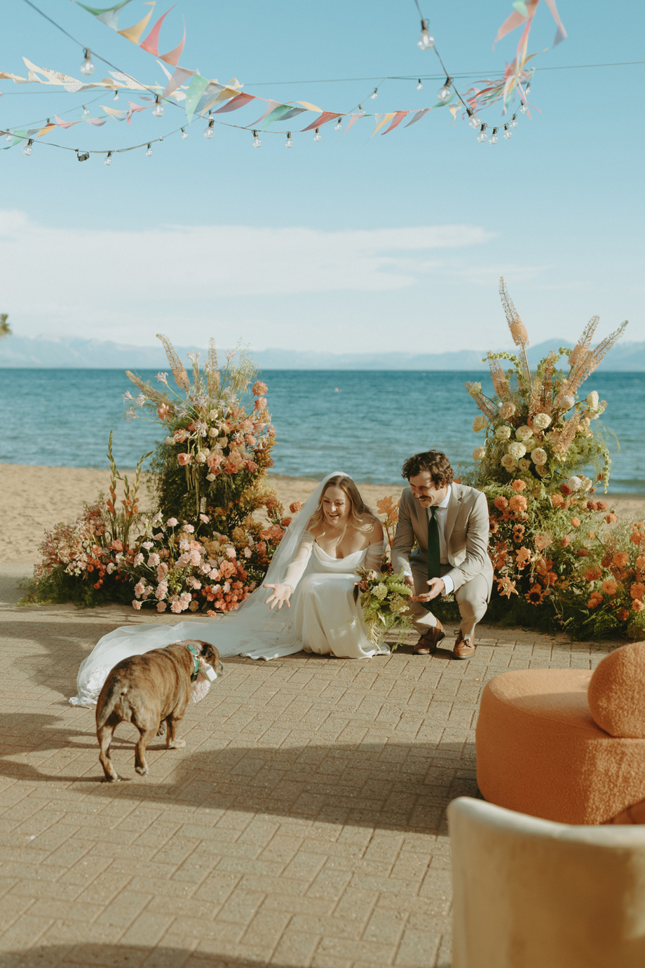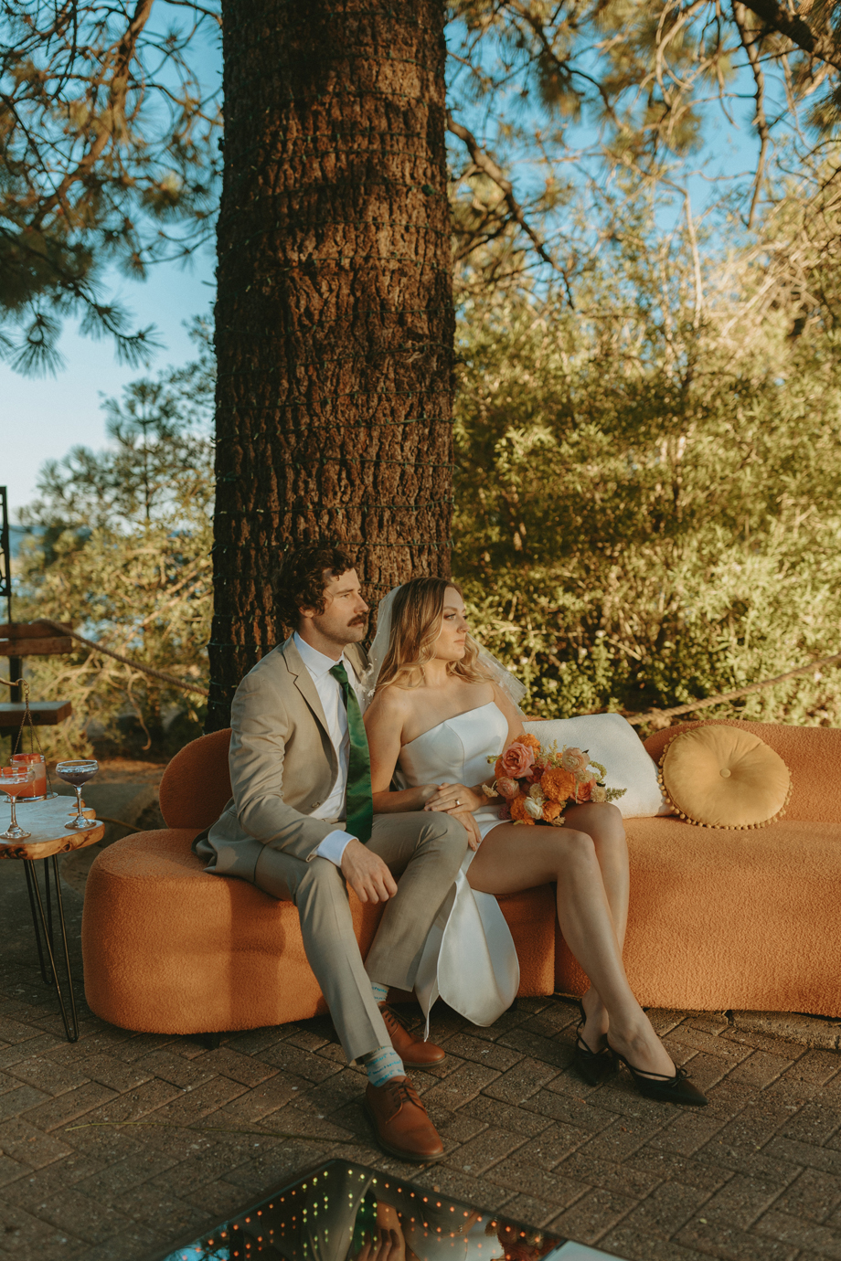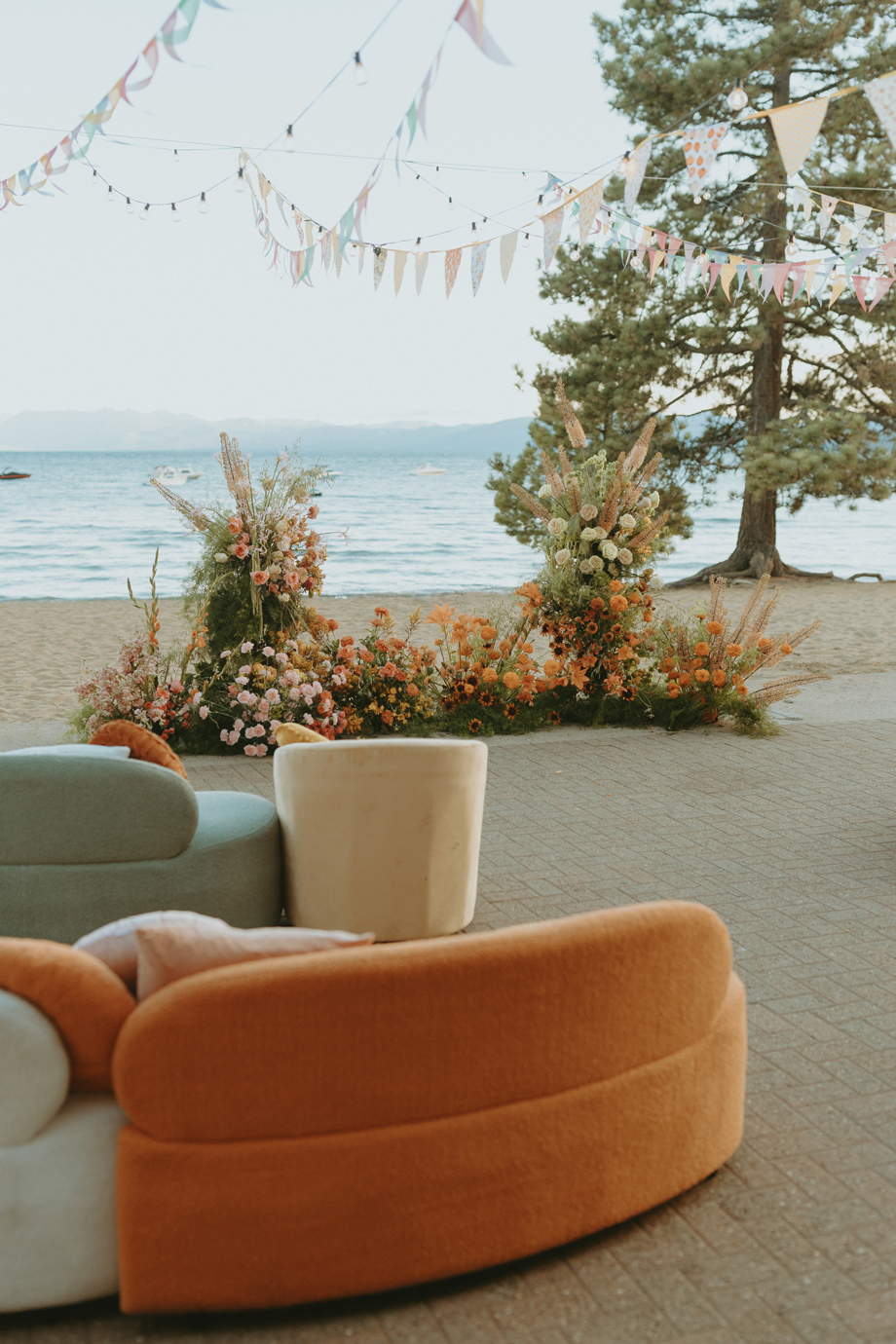 Soft alpine light, a little nostalgia, and the feeling you’ve stepped into a movie—that was the energy behind this Lake Tahoe styled shoot. Inspired by the whimsical storytelling and color palettes of Wes Anderson, eighteen talented local wedding creatives came together in the mountains to explore what a wedding day can feel like when every detail has intention behind it—with playful summer camp charm woven throughout.