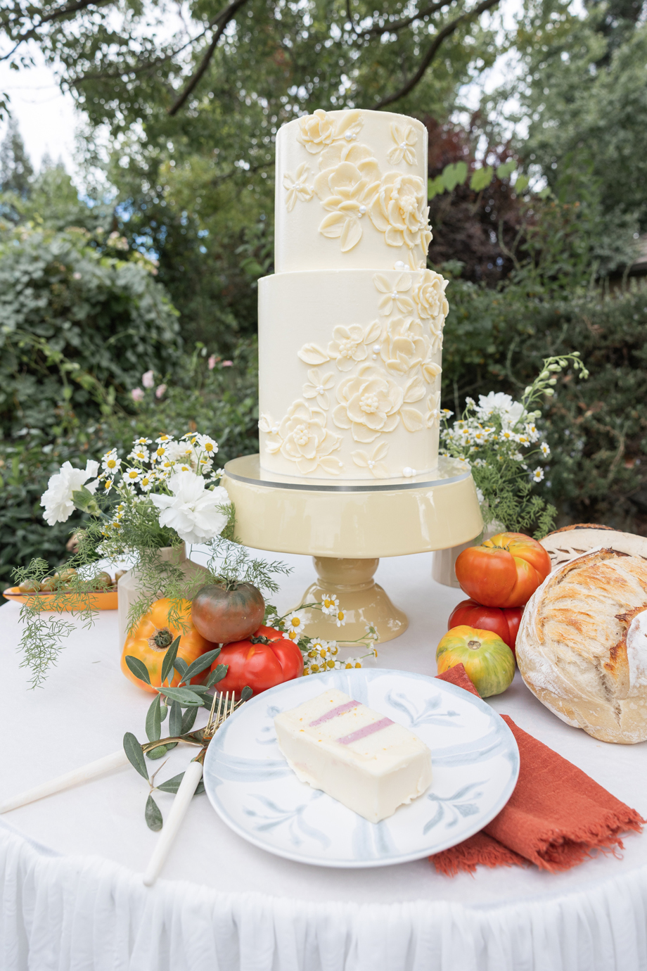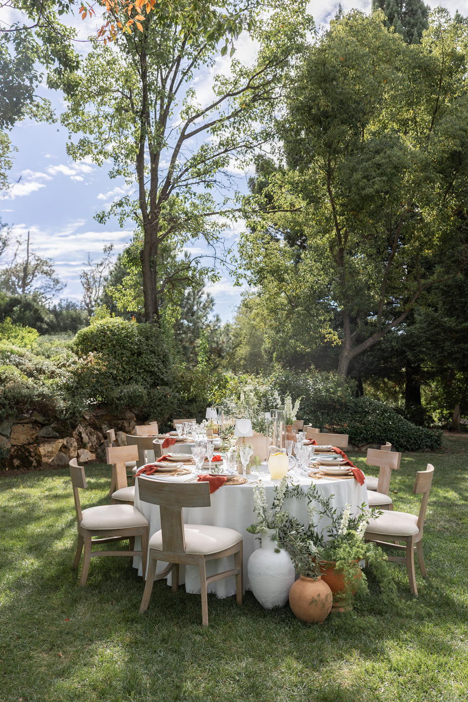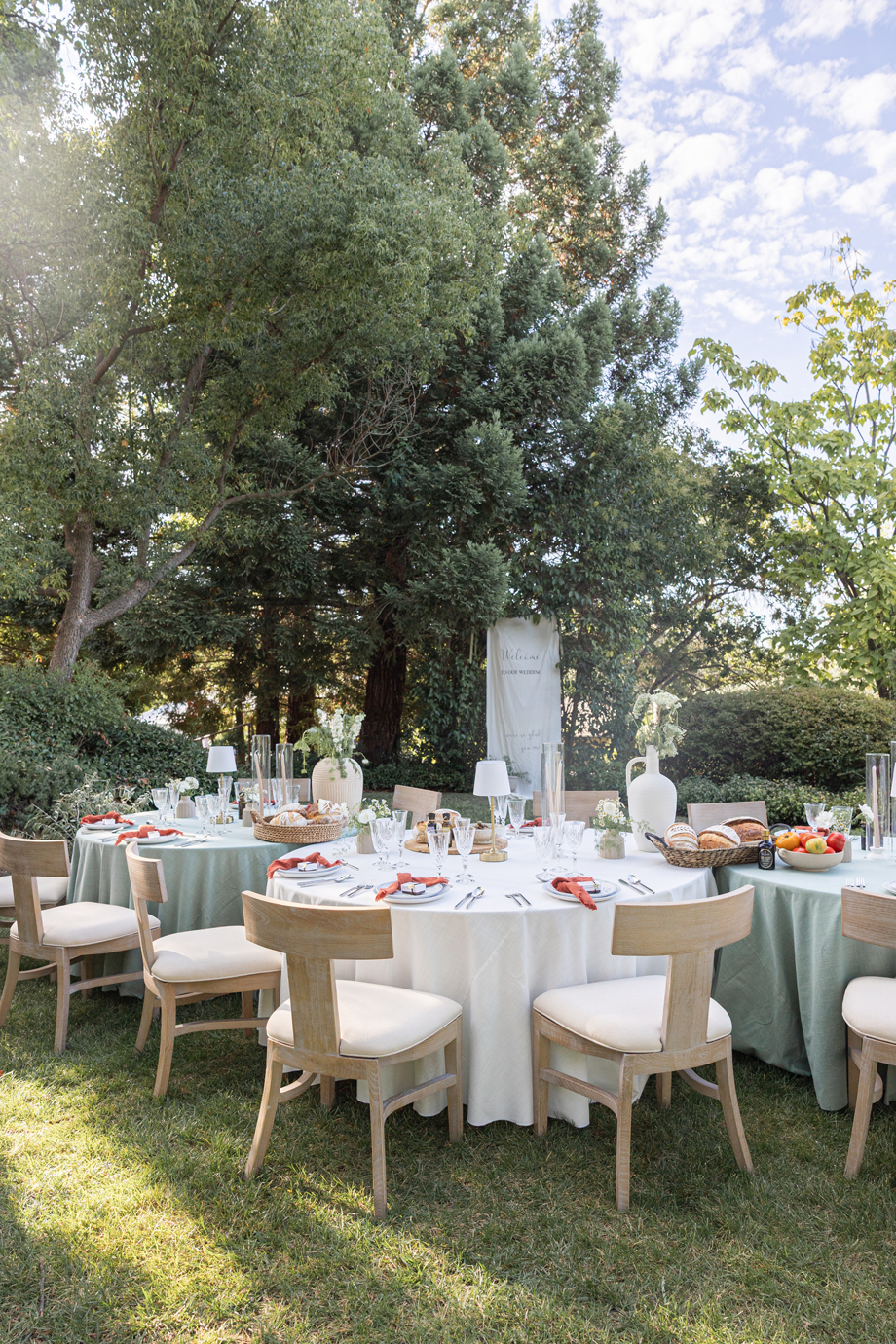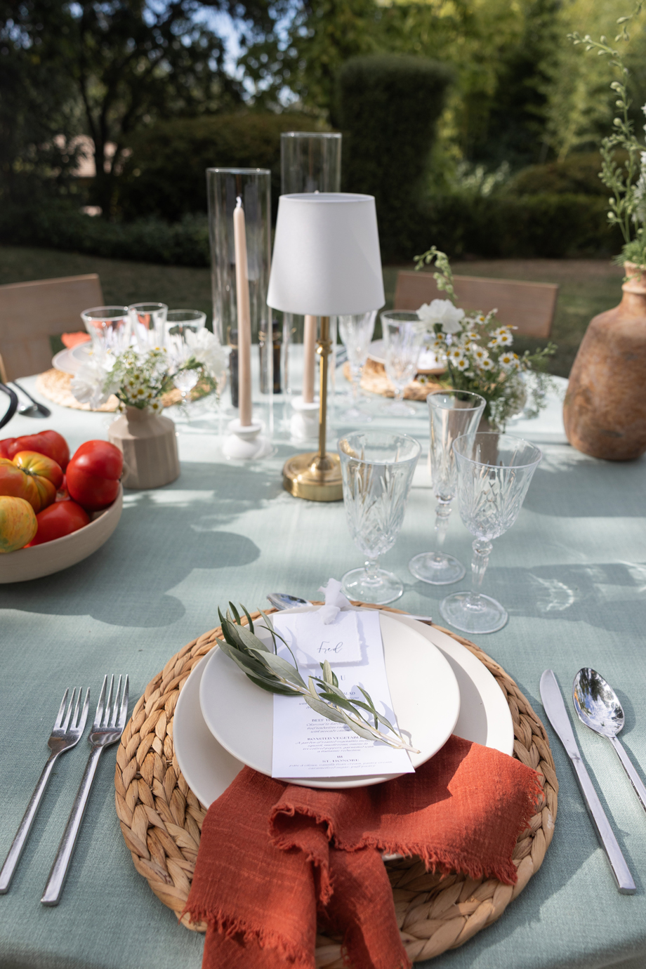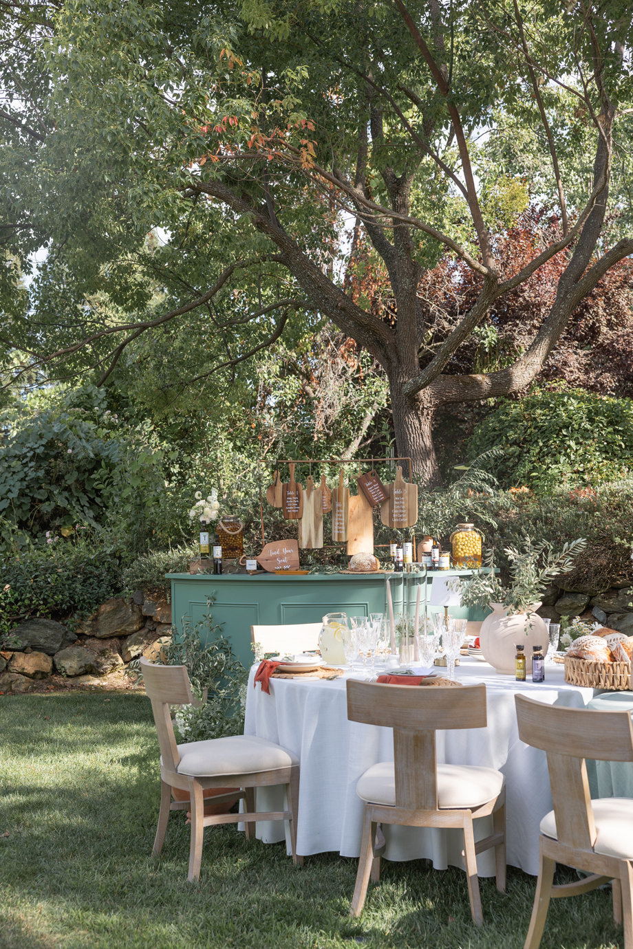 Golden hour light filters through the trees, a long table is set beneath the garden canopy, and the air carries the scent of fresh herbs, warm bread, sun-ripened tomatoes and locally-sourced and produced olive oil. This “Organic European Summer–inspired” styled shoot captures the magic of an alfresco celebration where the simple pleasures—good food, good wine, and great company—take center stage. 🍅🥖✨