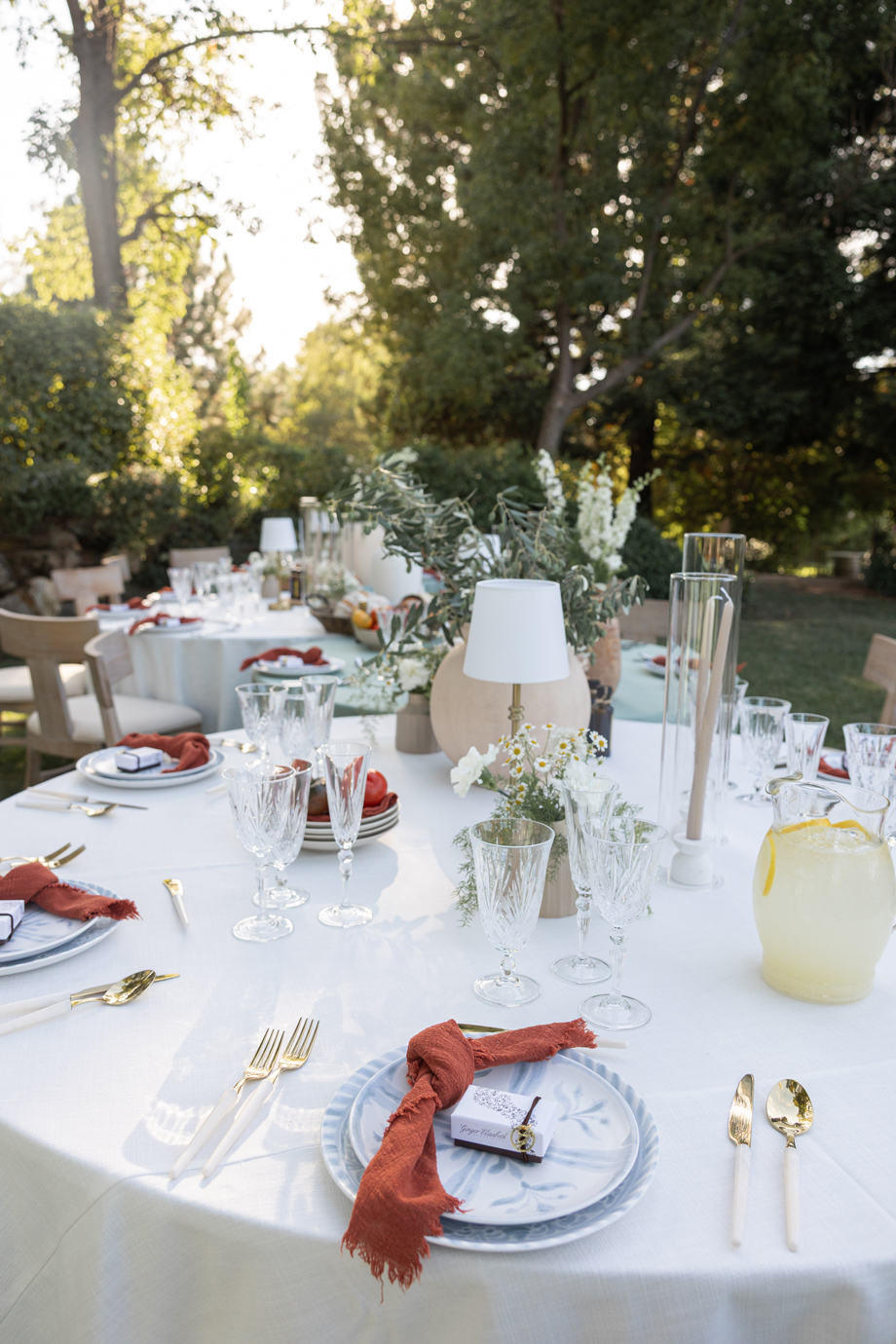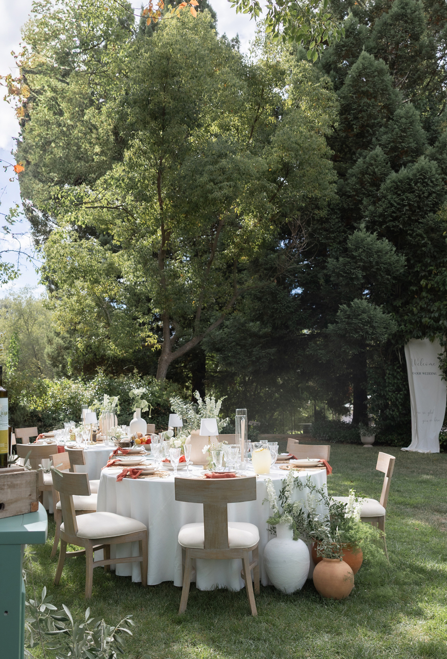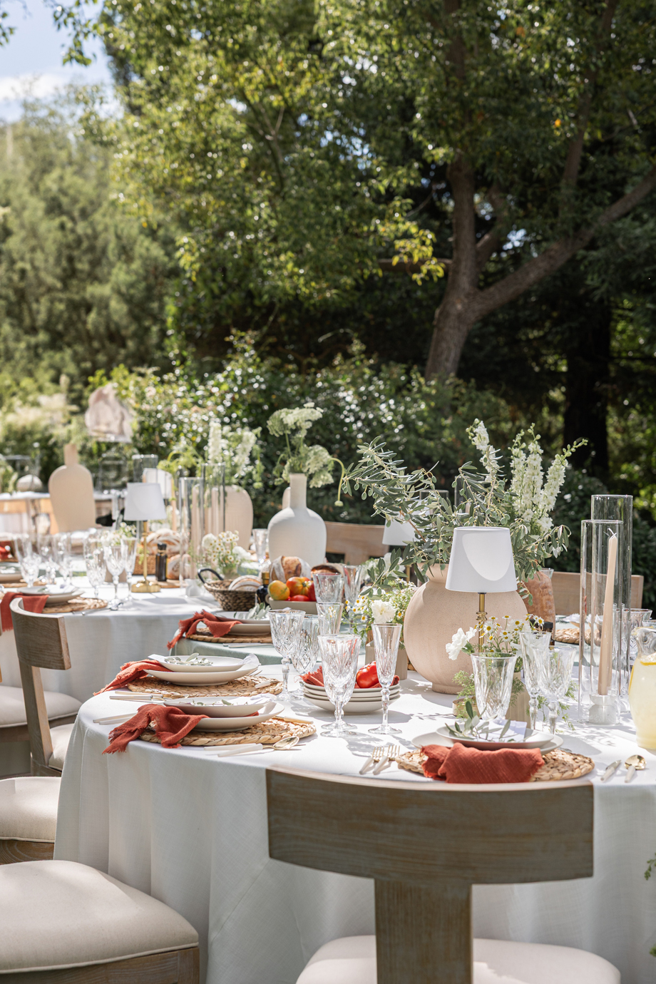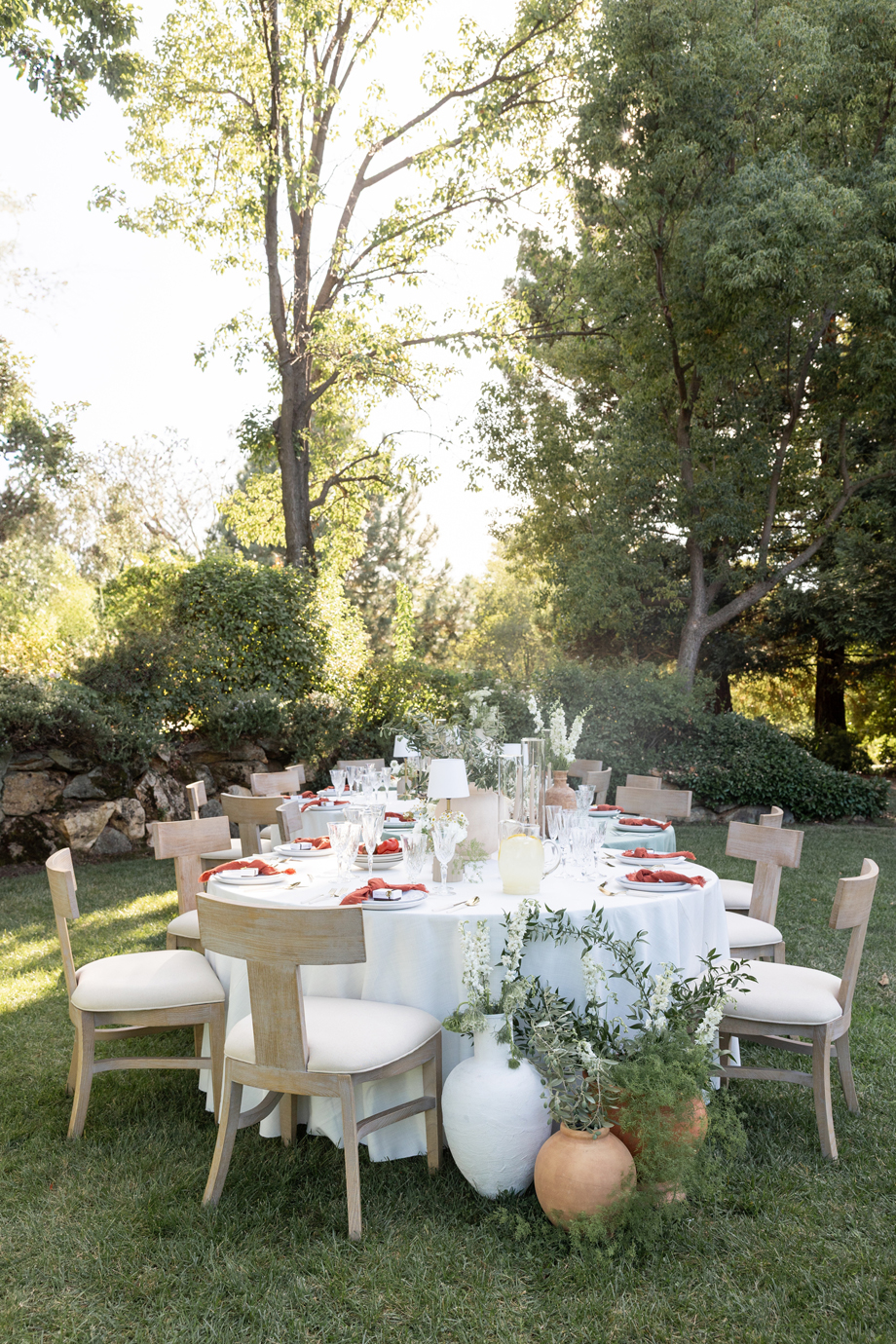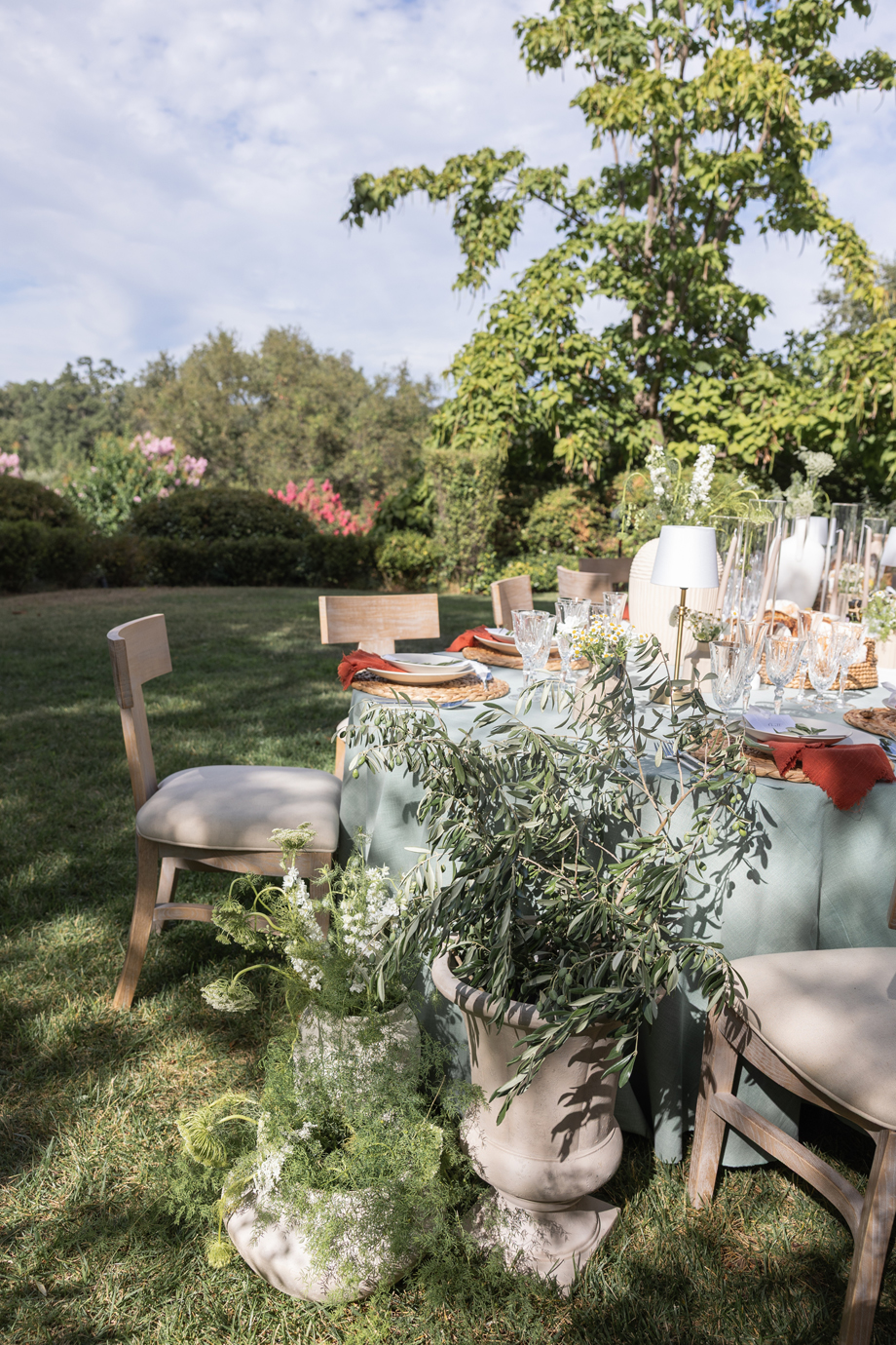Golden hour light filters through the trees, a long table is set beneath the garden canopy, and the air carries the scent of fresh herbs, warm bread, sun-ripened tomatoes and locally-sourced and produced olive oil. This “Organic European Summer–inspired” styled shoot captures the magic of an alfresco celebration where the simple pleasures—good food, good wine, and great company—take center stage. 🍅🥖✨