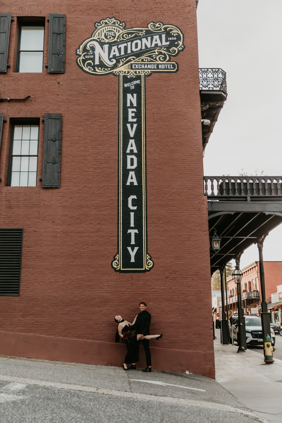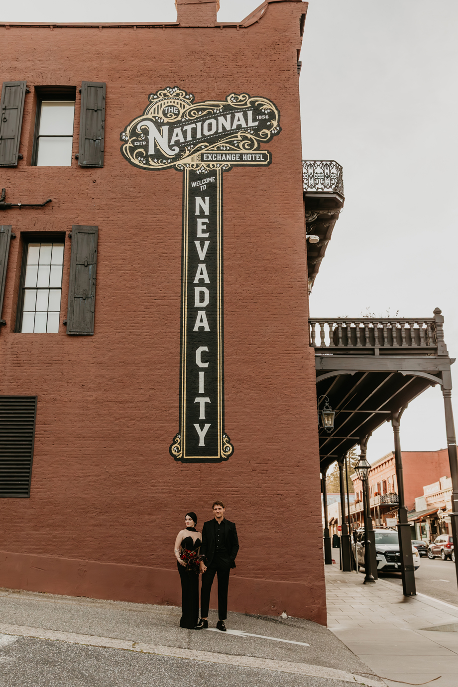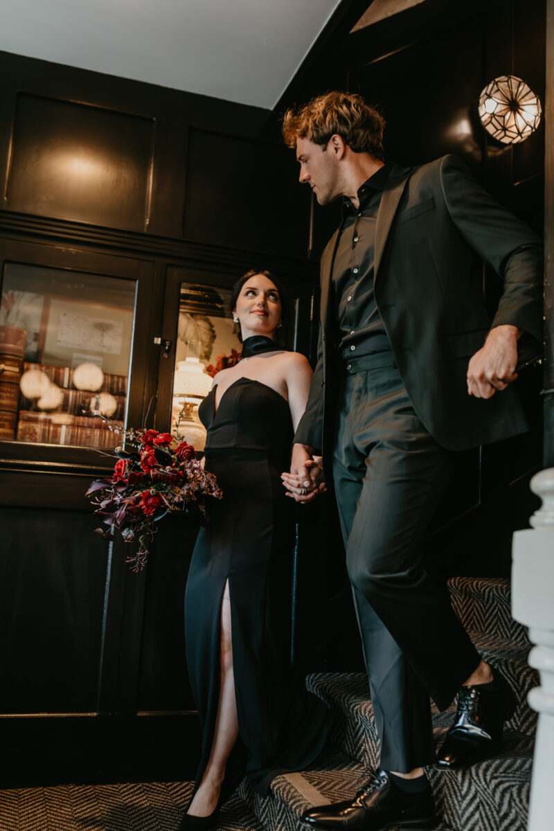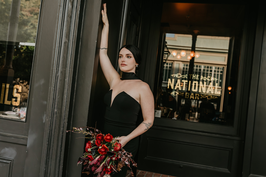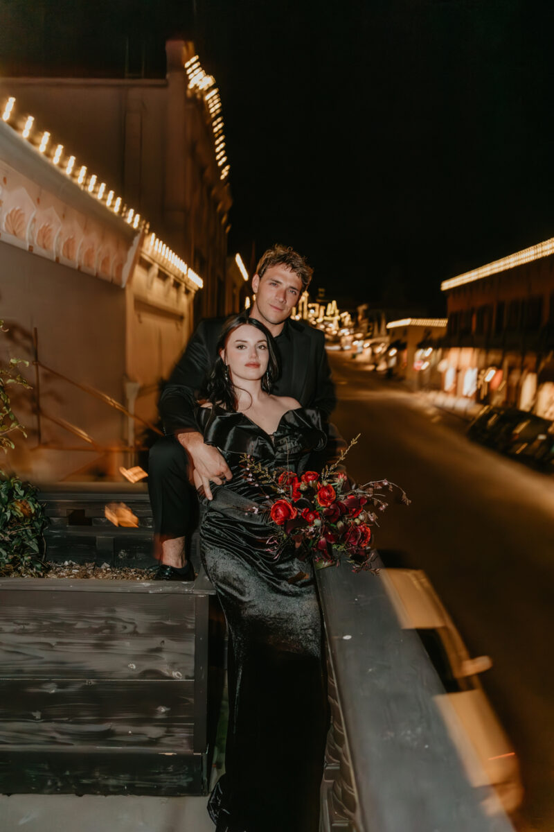 Dark romance meets Gold Rush history in this dramatic styled shoot set inside one of Northern California’s most iconic landmarks. Captured at the historic National Exchange Hotel in Nevada City, this submitted styled shoot blends moody elegance, bold design and timeless architecture to create a wedding aesthetic that feels both classic and daring.