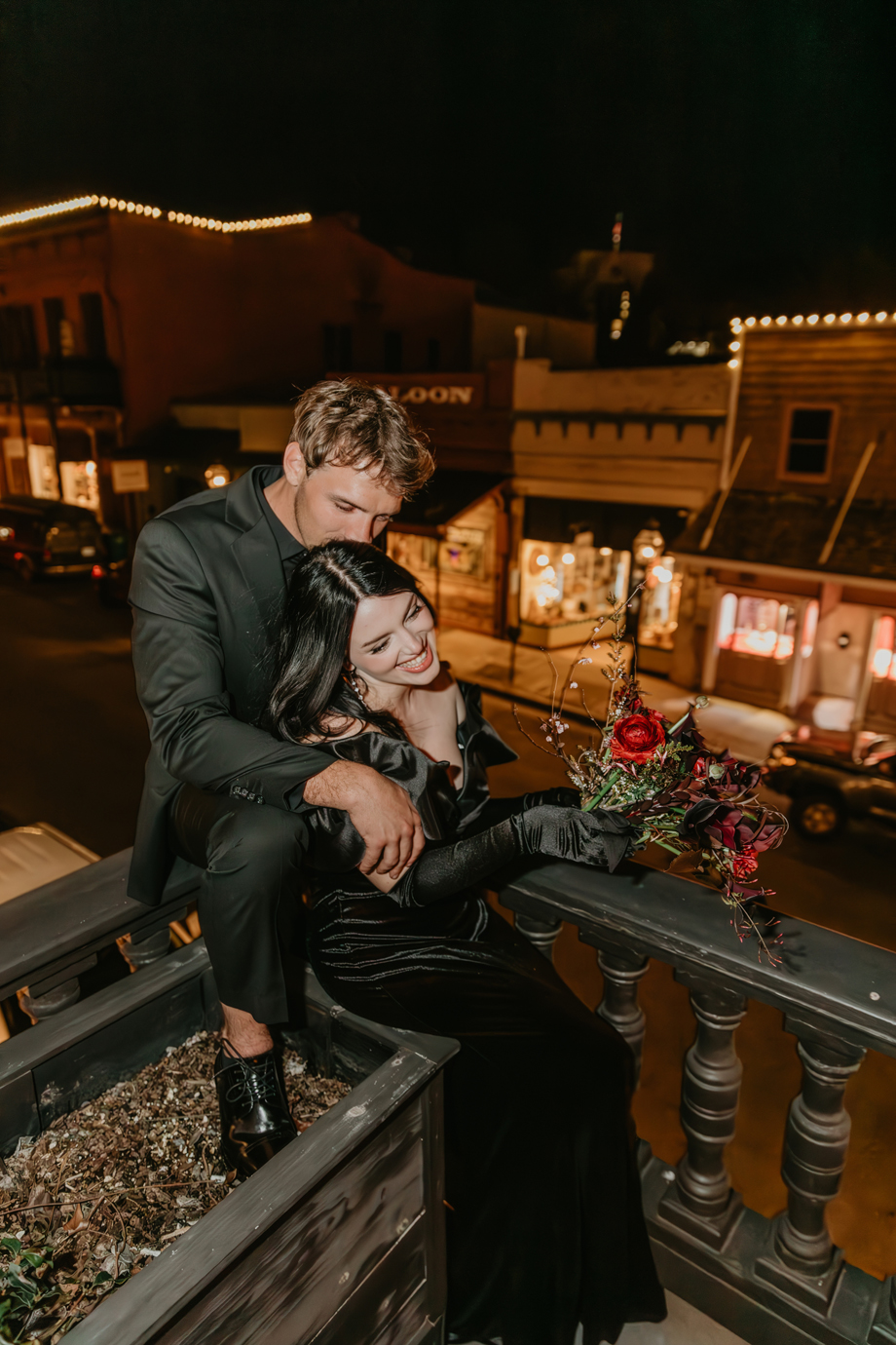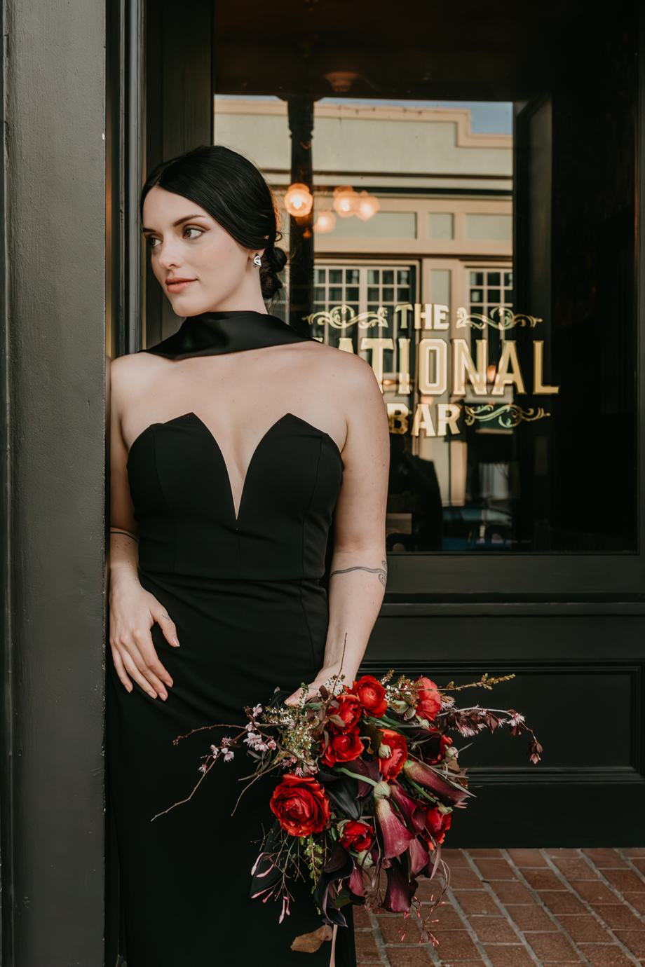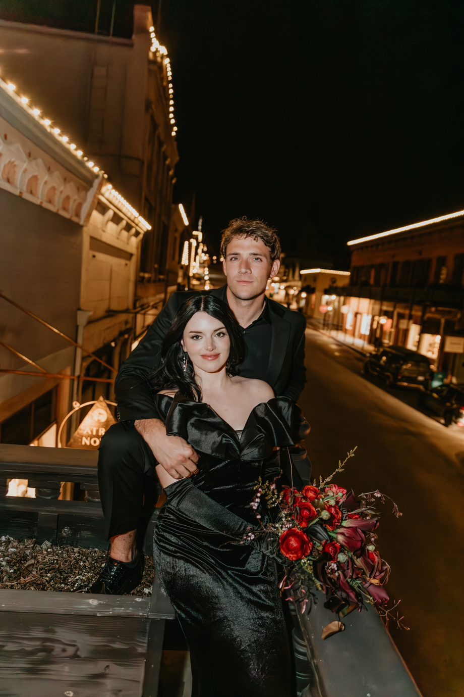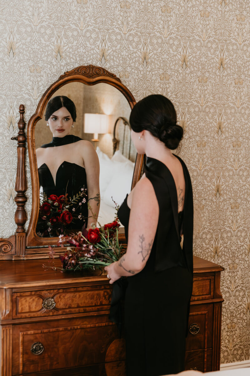 Dark romance meets Gold Rush history in this dramatic styled shoot set inside one of Northern California’s most iconic landmarks. Captured at the historic National Exchange Hotel in Nevada City, this submitted styled shoot blends moody elegance, bold design and timeless architecture to create a wedding aesthetic that feels both classic and daring.
