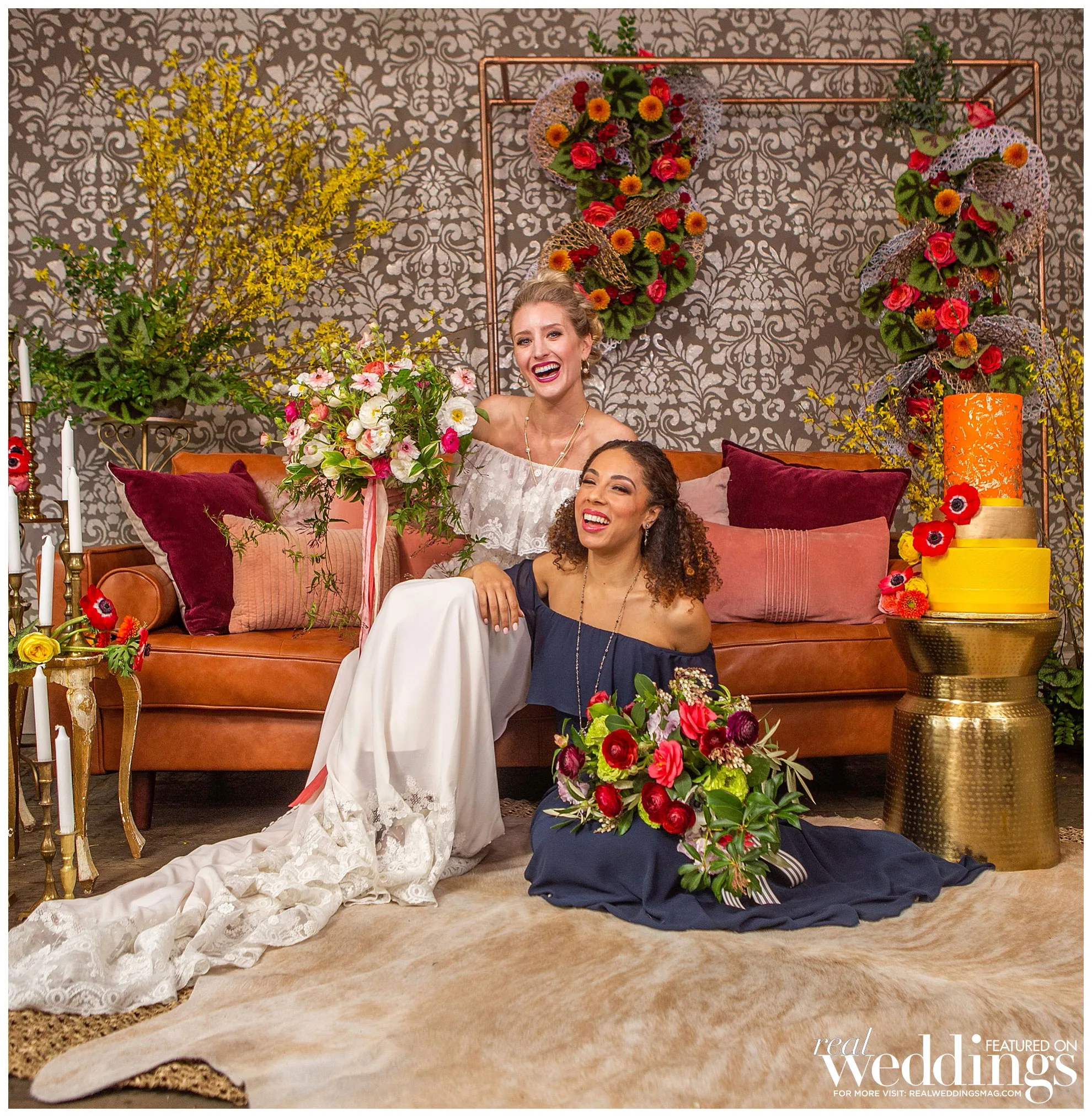 Special thanks to our real bride models, Blythe and Curissa, and to all of the professionals who contributed to this feature!
