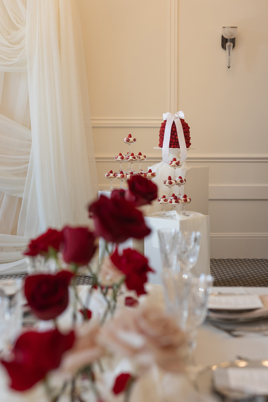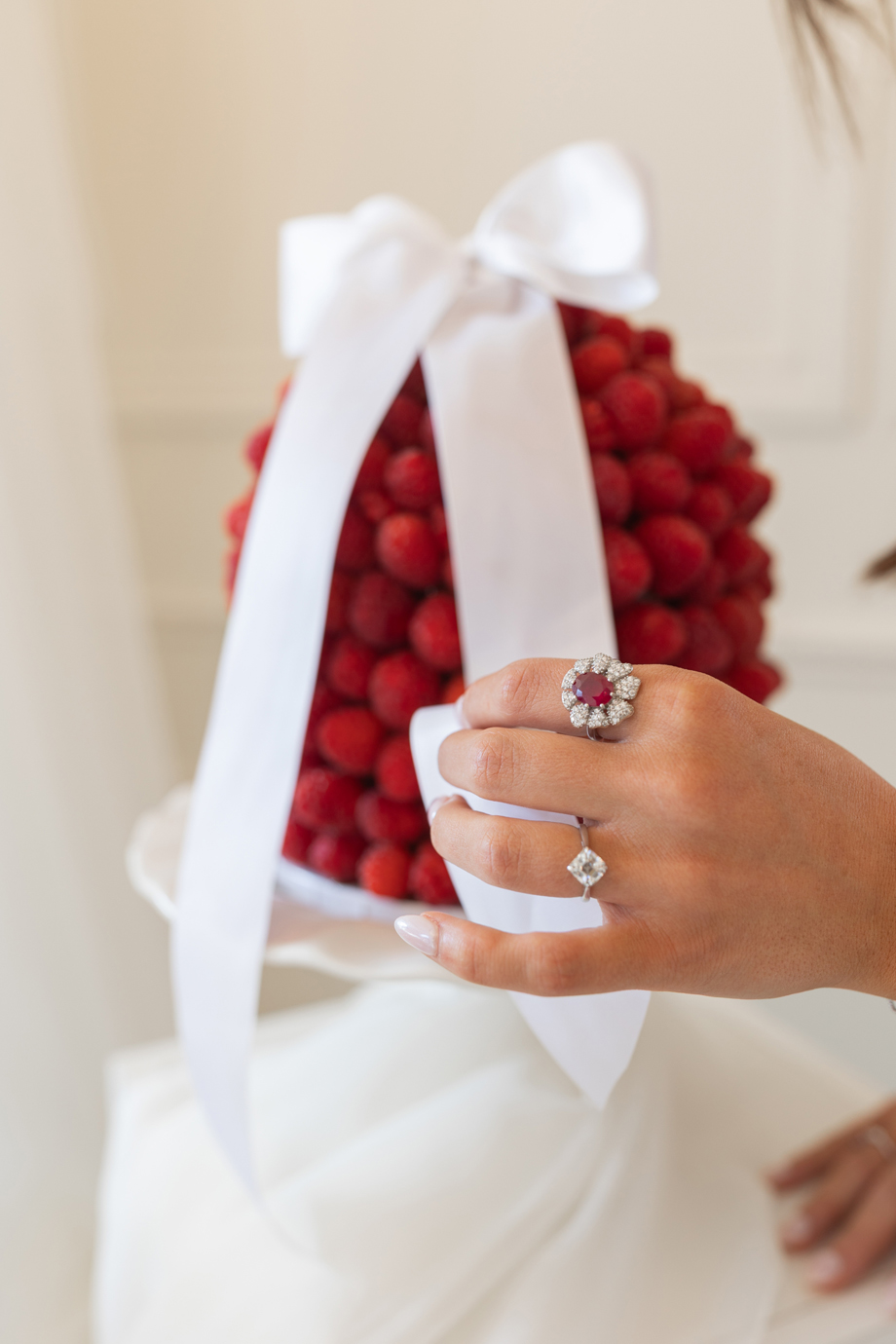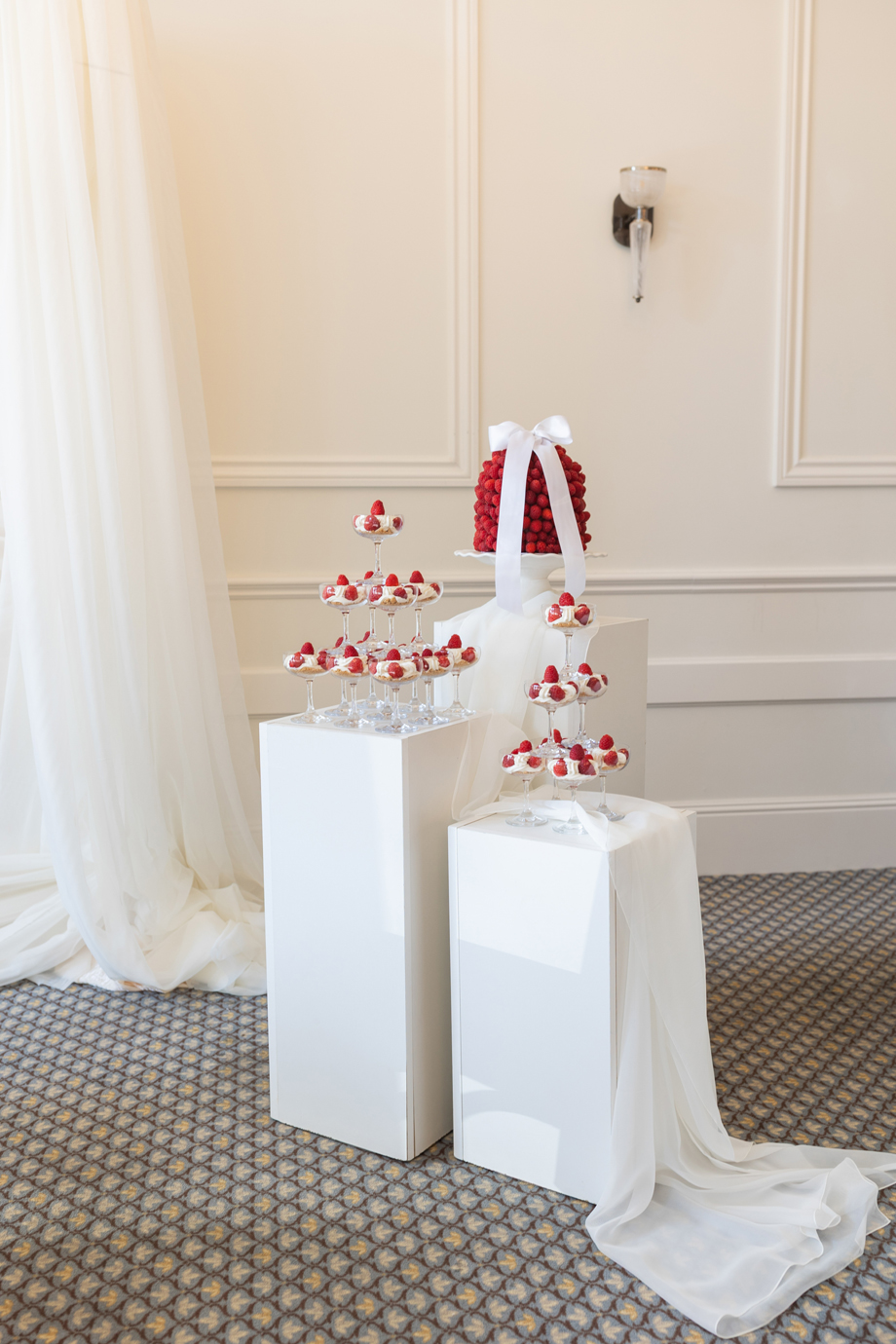 For today’s #StyledShootSunday, we feature a collaborative wedding inspiration shoot featuring neutral-toned pieces, complimented by pops of colorful florals, beautiful textural details, along with a dessert bar to die for; as Christina from Spilled Milk Company describes, “Fresh raspberries, soft layers, and a quiet kind of beauty—a cake as timeless as the moment and accompanied by our raspberry cheesecake tower.” Yeah, it’s all gorgeous, right?