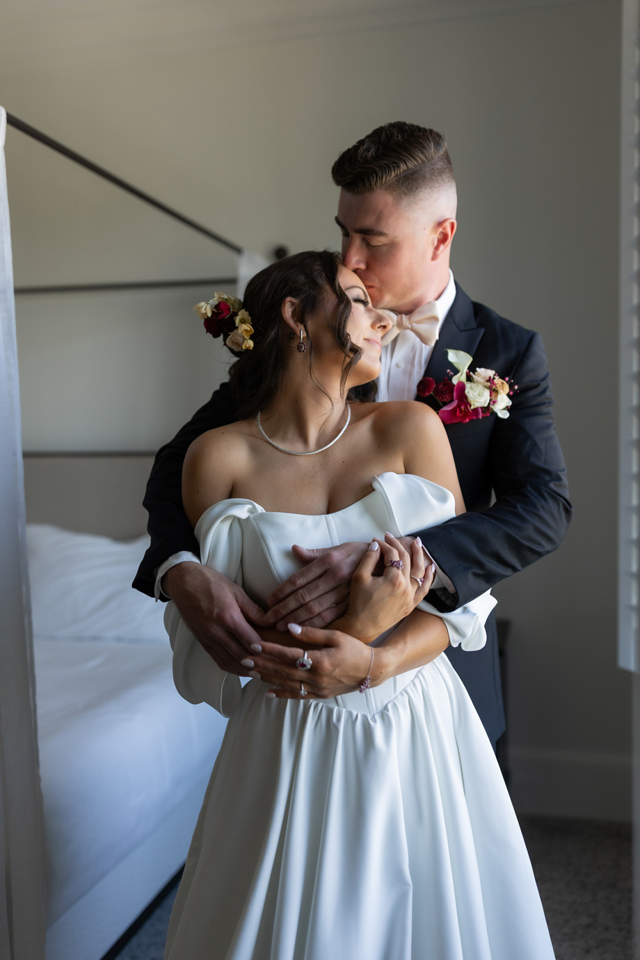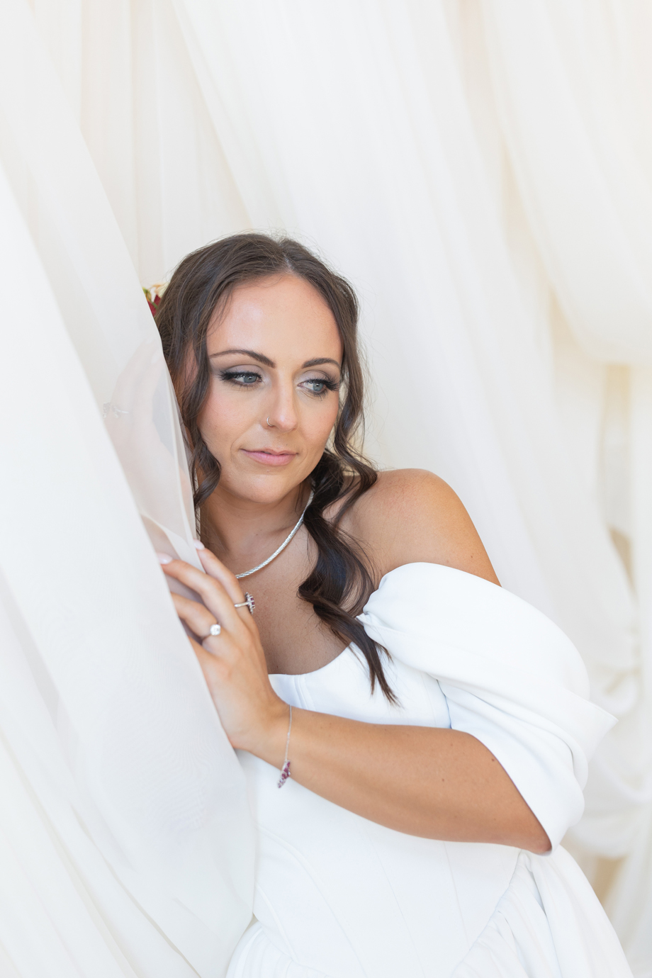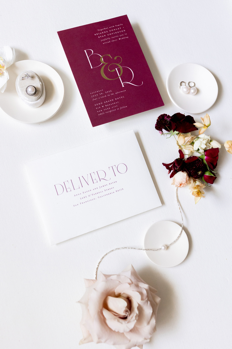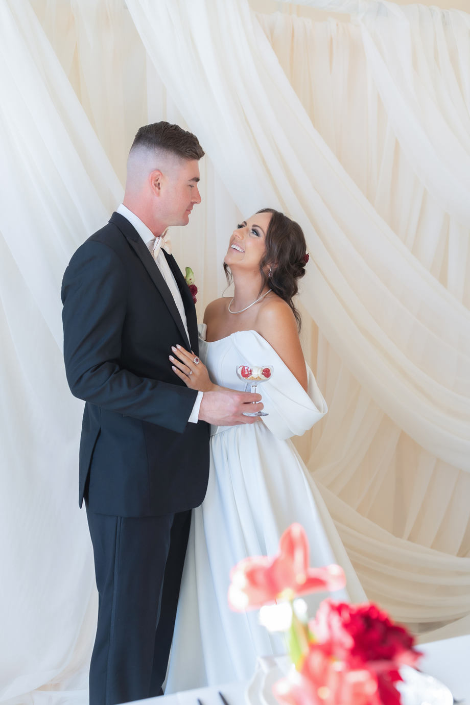 For today’s #StyledShootSunday, we feature a collaborative wedding inspiration shoot featuring neutral-toned pieces, complimented by pops of colorful florals, beautiful textural details, along with a dessert bar to die for; as Christina from Spilled Milk Company describes, “Fresh raspberries, soft layers, and a quiet kind of beauty—a cake as timeless as the moment and accompanied by our raspberry cheesecake tower.” Yeah, it’s all gorgeous, right?
