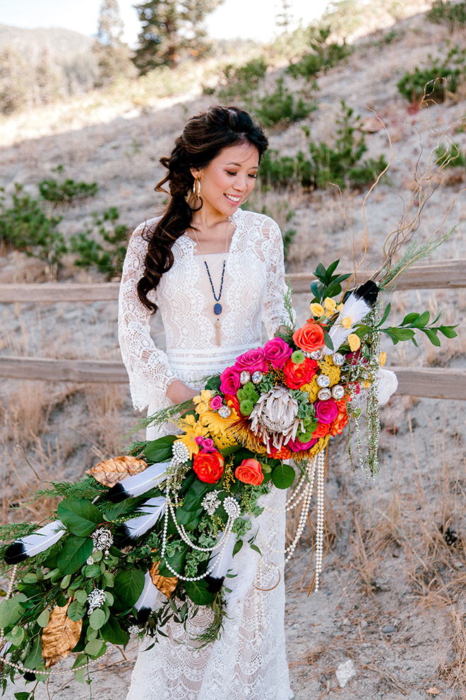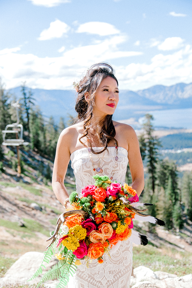 My favorite part of the shoot were the florals. The big bright bouquets really tied the whole thing together. The shoot concept was unexpected in the best way – a great juxtaposition of old and new, rural and urban.