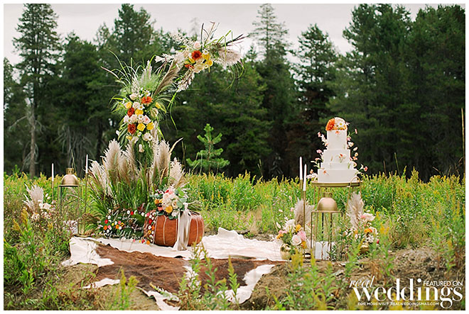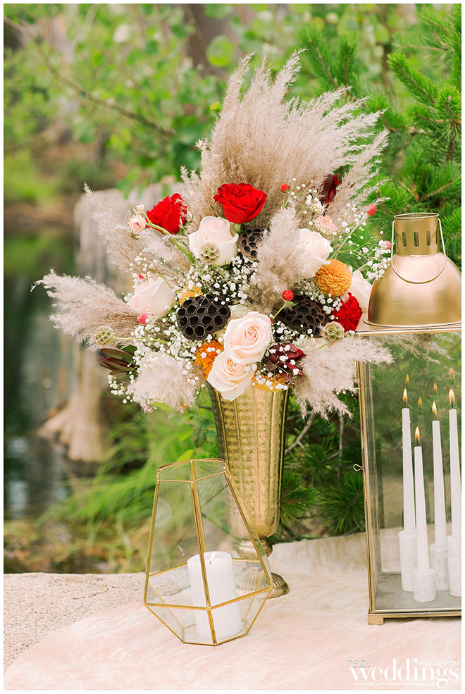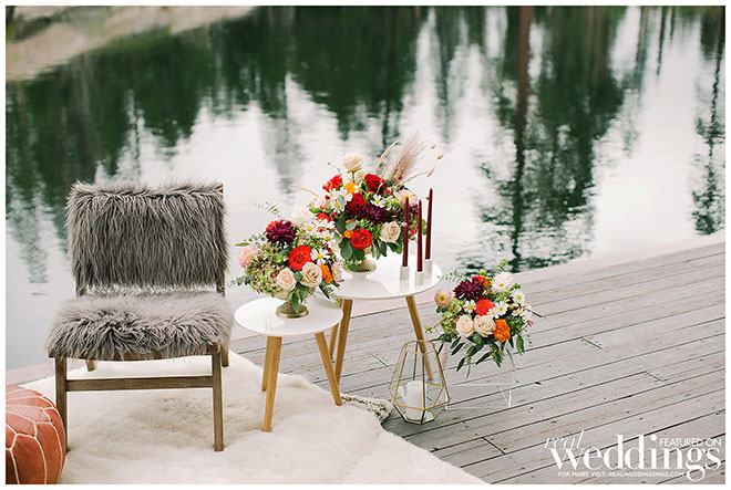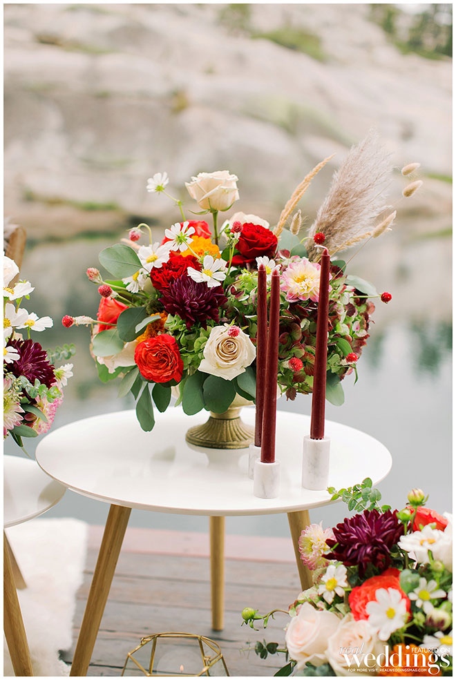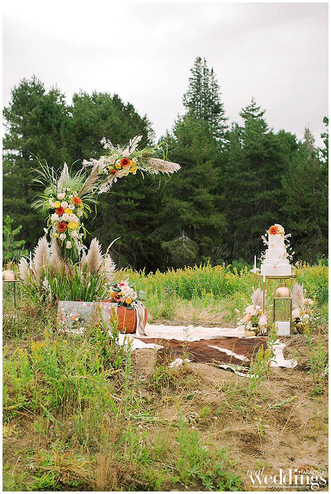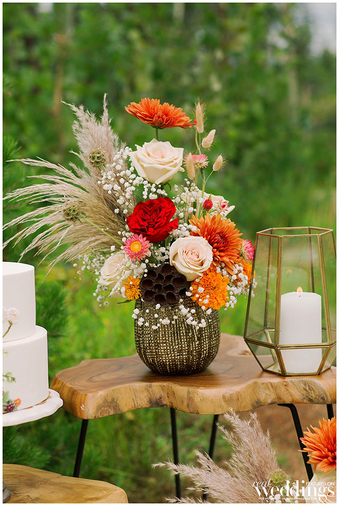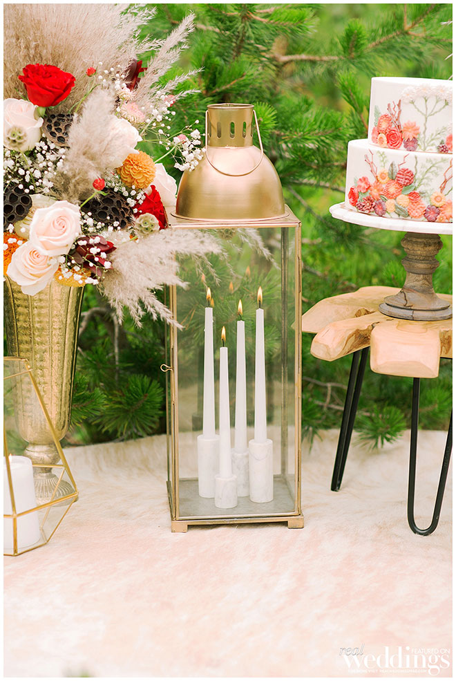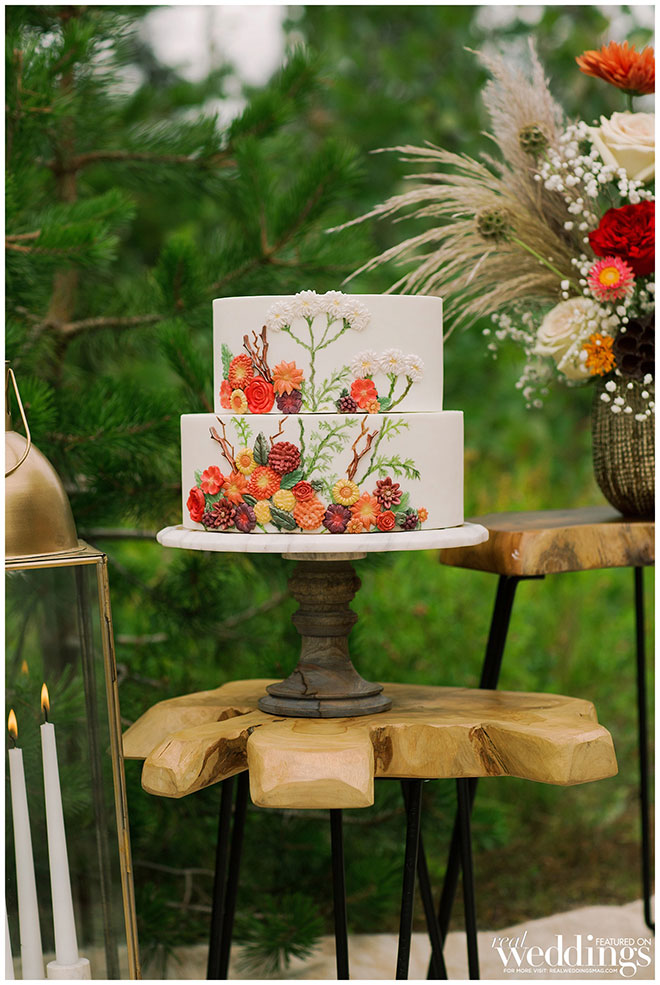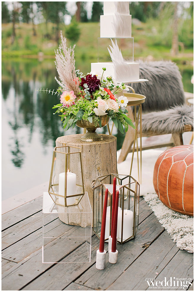 Rentals, florals and cakes can really help set the theme for your wedding. For our “Mountain Retreat” Cover Model Photo Shoot our team was inspired to create three sets with colorful flowers, modern cakes and trendy rentals, adding to the already stunning backdrop of the venue.