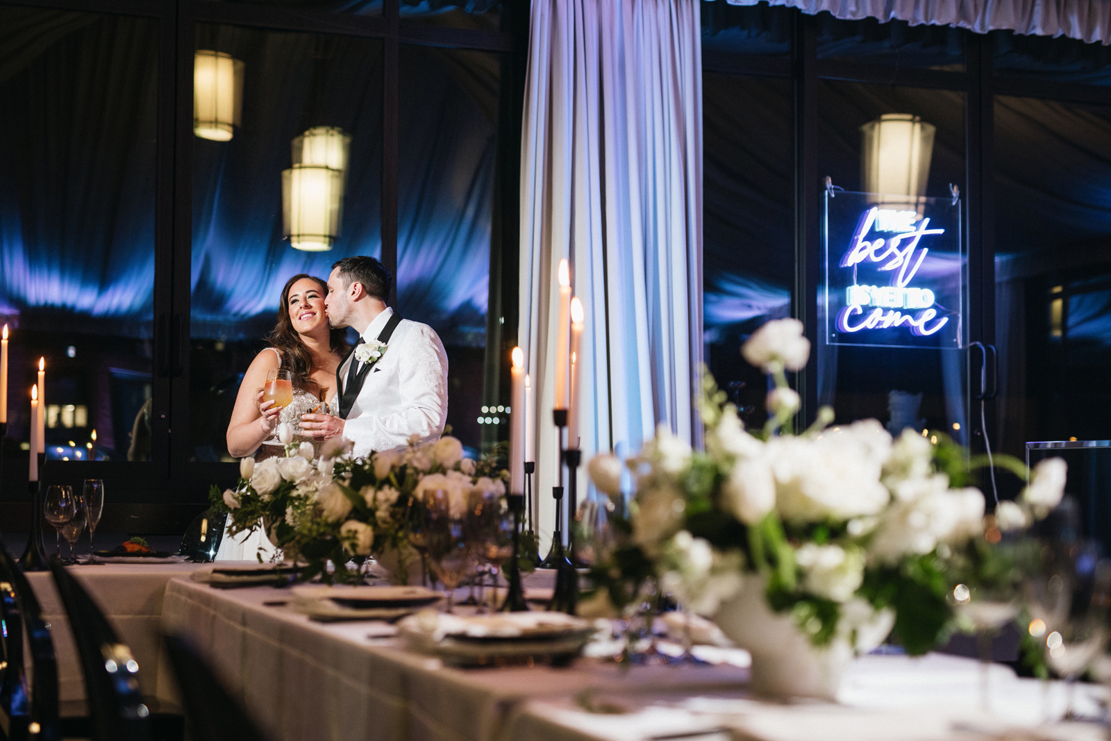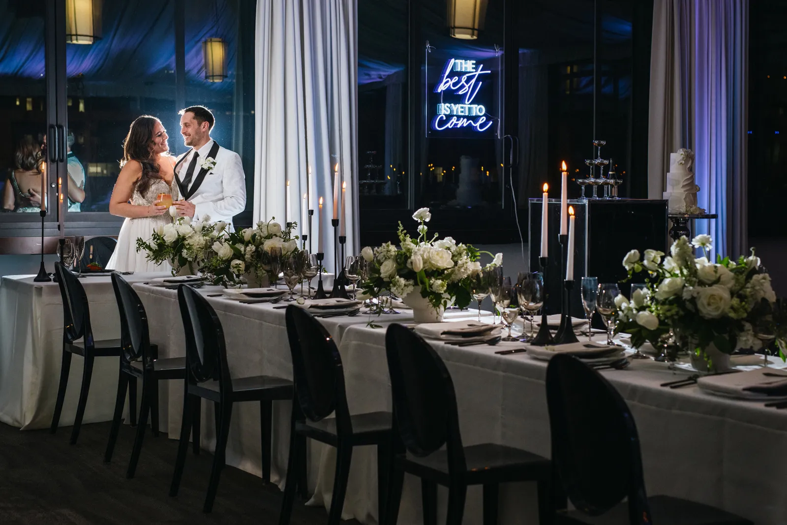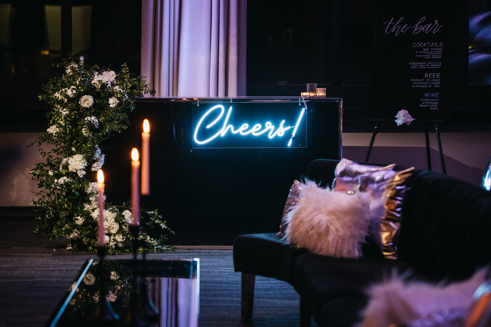 Featuring the design and styling from The 530 Bride along with the floral designs of Visual Impact Design (with Wholesale Flowers from FiftyFlowers.com) to create the inspirational spaces: The Ceremony, The Cake Display (by Custom Cakes by Tara), The Sweetheart Table, The Guest Table (with tabletop rentals from Celebrations! Party Rentals & Tents), The Paperie (by Fawcett Ave Paper Co.), The Custom Menus + Signage (by Markings by Monica), and The Epic Bar and Lounge (with furniture and décor by Sacramento Event Co. throughout), and The Super Cool Neon Signs by SacTown Neon, all beautifully lit by Larcom’s Lighting…not to mention the behind-the-scenes video (you’ll have to wait a little longer for that!) by JB Wedding Photo & Videography!