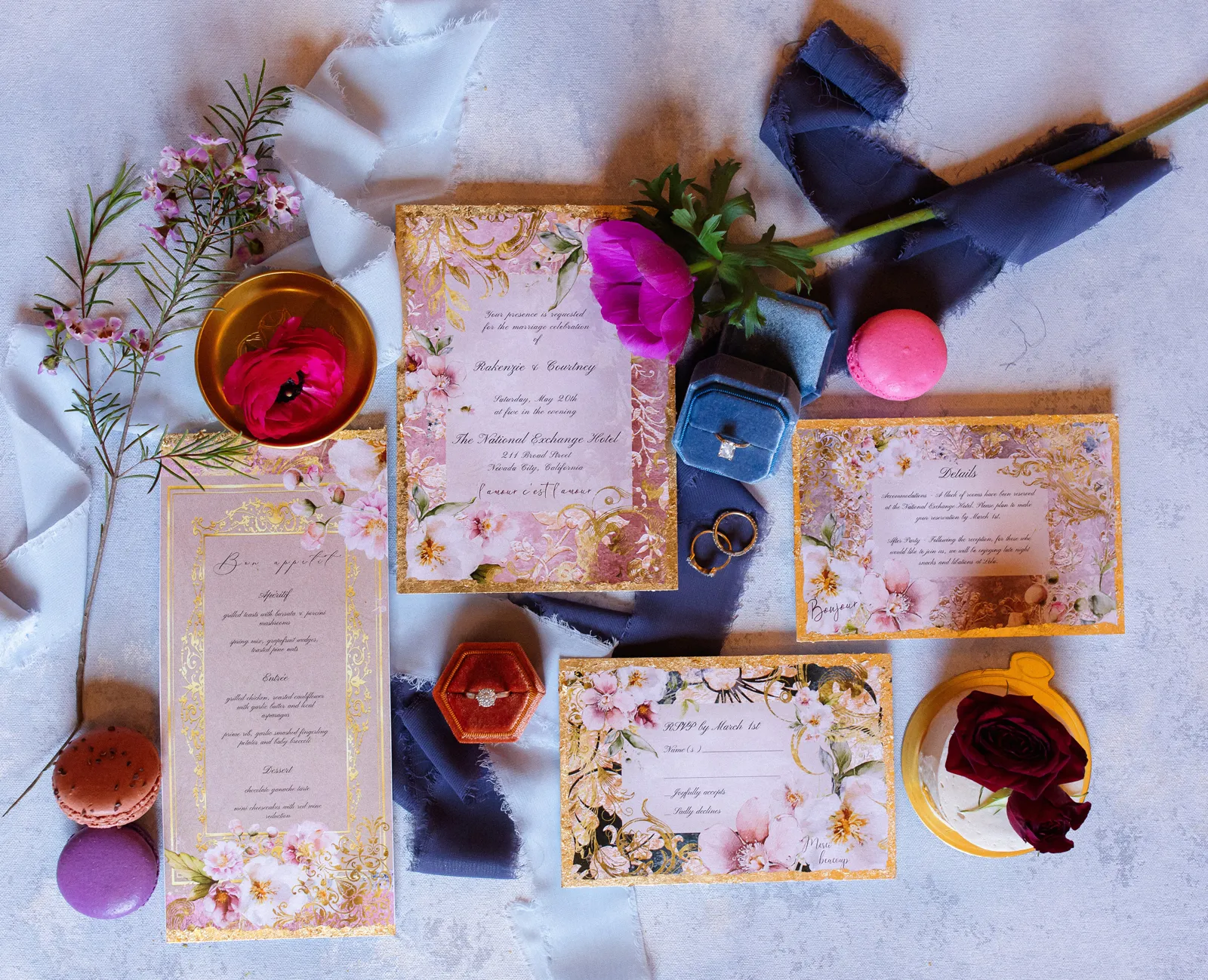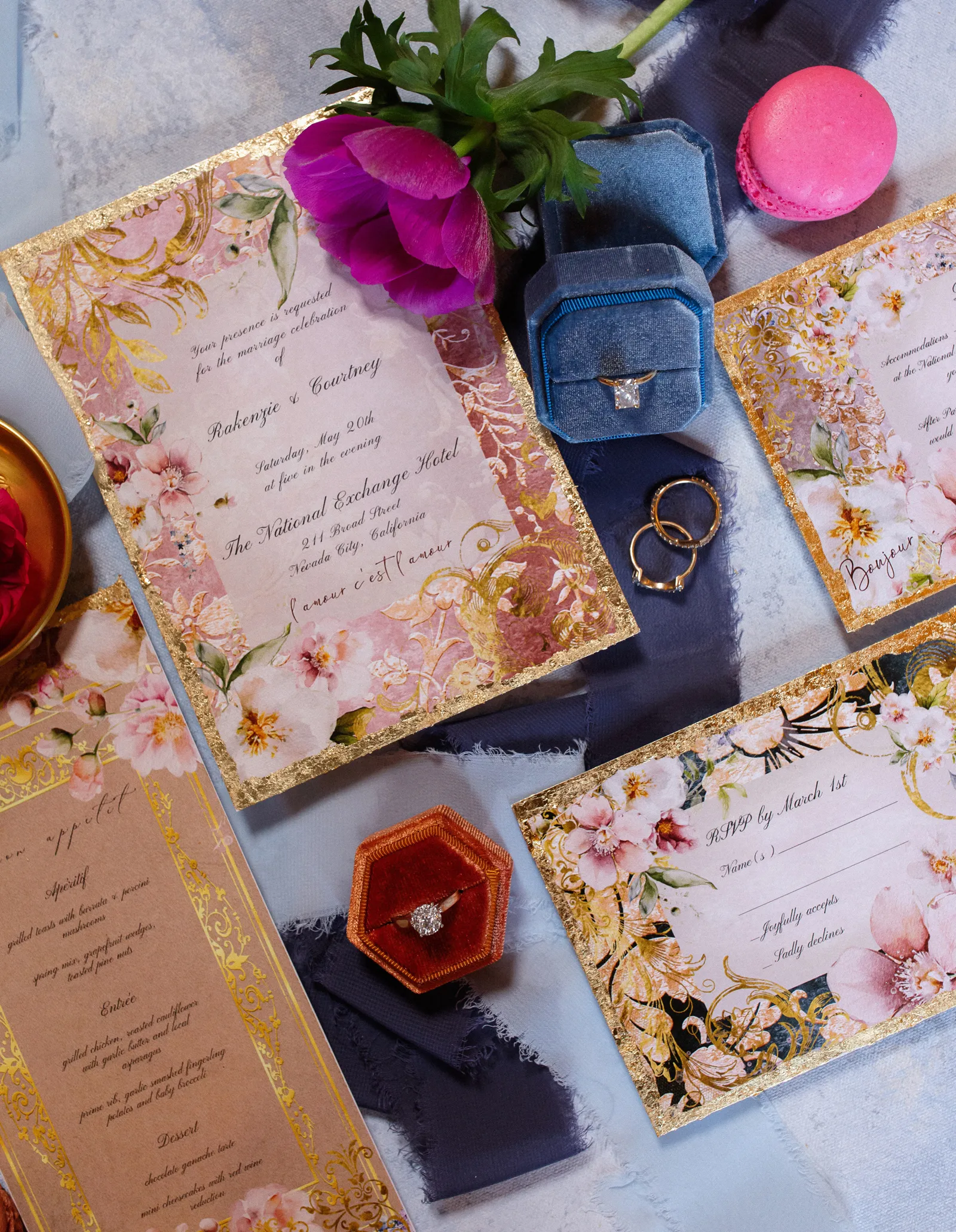 Next up, our “Modern Meets Vintage” shoot comes to you from The National Exchange Hotel, who not only created the scrumptious macarons for the shoot but the crazy delicious styled cuisine too! (Hard to refrain from eating it before we shot it!)! All captured beautifully through the lens of Nichole Collins Photography, and through the videography of Philippe Studio Pro (stay tuned for the video in our behind-the-scenes post to come)!