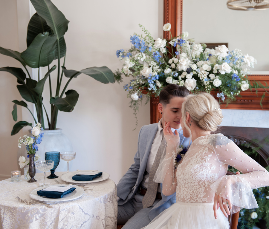 Special thanks to our real couple models, Shelby + Paige, and all of the professionals who contributed to this feature!