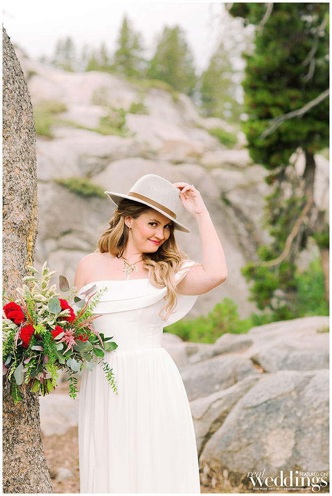 We’re not talking about British fascinators (although those are fun too), we are talking about everyday hats like white fedoras or even western hats. By including these modern pieces with timeless dresses, brides can really make a statement and accentuate a theme.