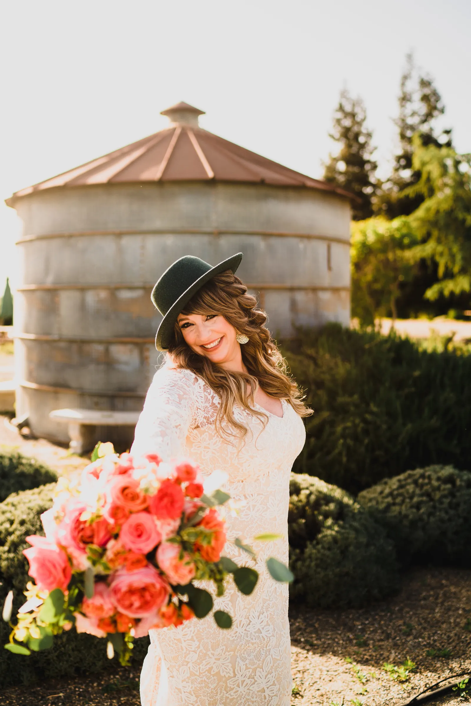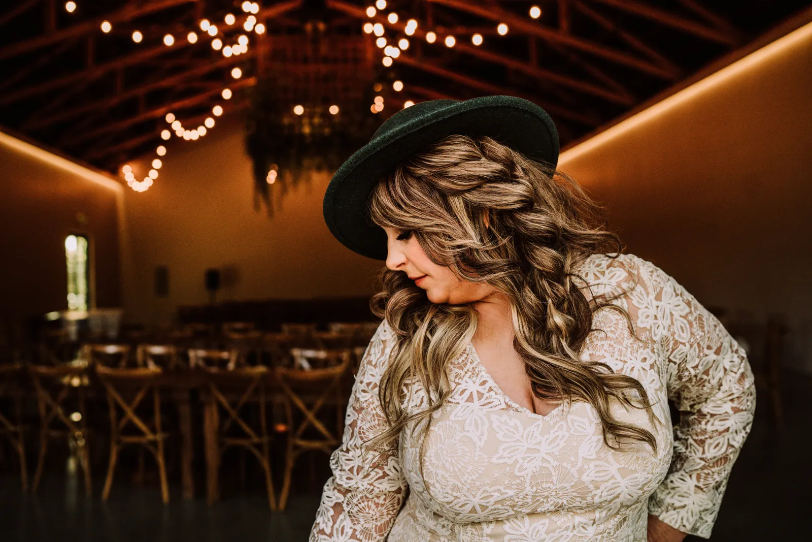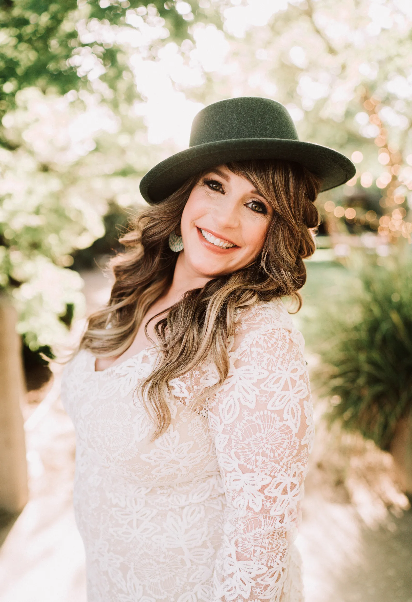 Hat by Lanzom / Earrings by Wild Sierra Handmade / Gown from Sparkle Bridal Couture