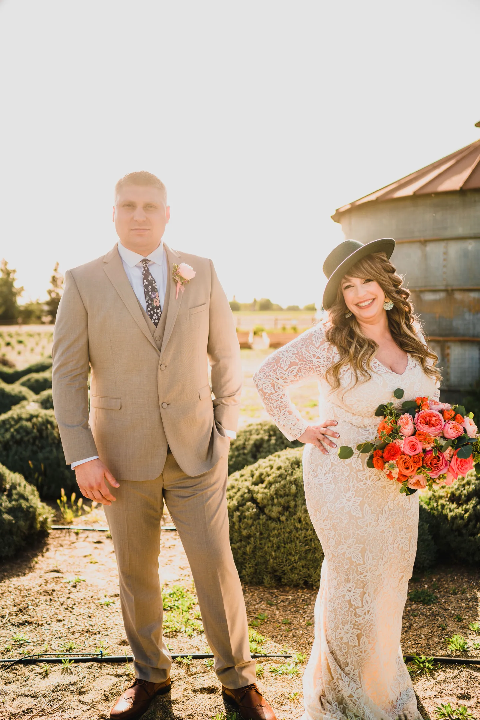 When we first started Real Weddings Magazine 15 years ago, we vowed to only use real couples as our models…and fast forward to early 2022 when we held our couple open call to see who wanted to “model” for our upcoming shoots, and Stephanie + Trenton applied. I started texting Stephanie about the possibility of having them model, and I was instantly smitten….I felt like Stephanie and I had been friends for years, and I KNEW I had to have them in Real Weddings, and voila: they are our featured real couple models in our “Love at the Lavender Farm” styled shoot. We had such fun with them—pretty much laughing the entire shoot (seriously, it was hard to find a single photo where they’re not smiling from ear to ear! P.S. we love that!), not to mention trying to keep Trenton from stealing kisses (and messing up Stephanie’s lipstick) during the day! In this, our second post from this shoot, you get to know this very-much-in-love couple who we adore. We know you’ll love them as much as we did!