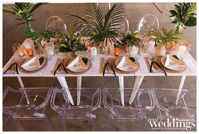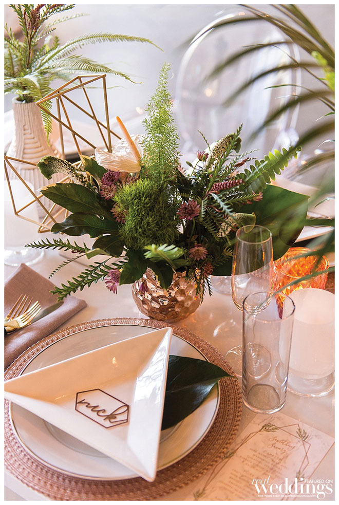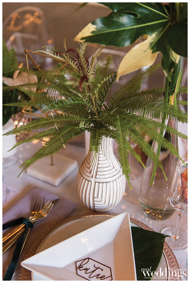Our local vendors are always on trend, and they brought their knowledge of what’s hot to Urban Oasis – a Real Weddings styled shoot inspired by greenery, geometric patterns, marble and copper.