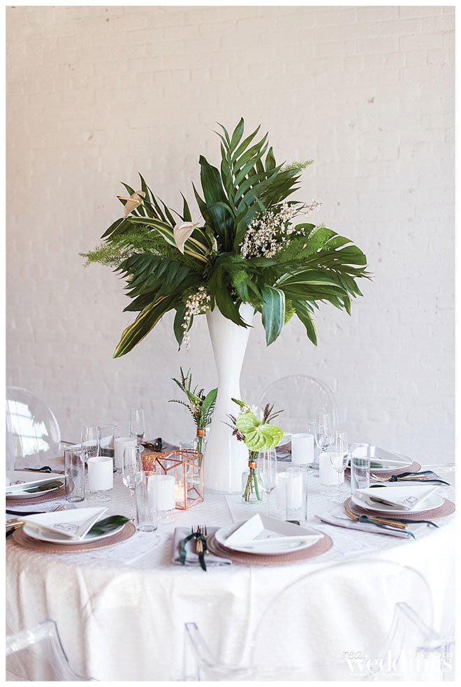 “Urban Oasis” was produced by Aimee Wendell—2Chic Events & Design, Vicky Marco—Bella Bloom, Emily Peter and Wendy Sipple—Real Weddings Magazine