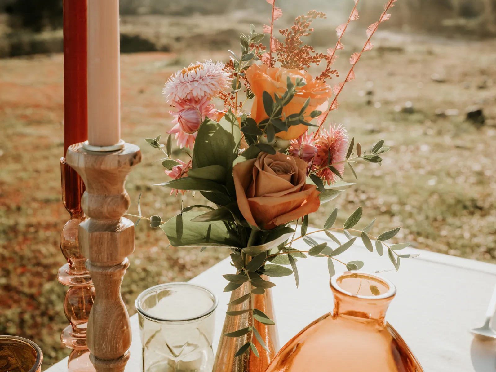 Happy Submitted Styled Shoot Sunday, folks! This shoot marks our last Submitted Styled Shoot in our Summer/Fall #30 edition. Whether you’re looking for something chic, eclectic, Western, or Boho, we hope you’ve been able to find some inspiration in this publication. So, let’s finish things off on a high note, shall we? Enjoy today’s wonderful shoot, rich with warm florals from Strelitzia Flower Company., and pops of metallic that create a rustic, disco feel. Keep scrolling for more photos, courtesy of Morgan Alanna Photography. Happy Sunday, and happy reading!