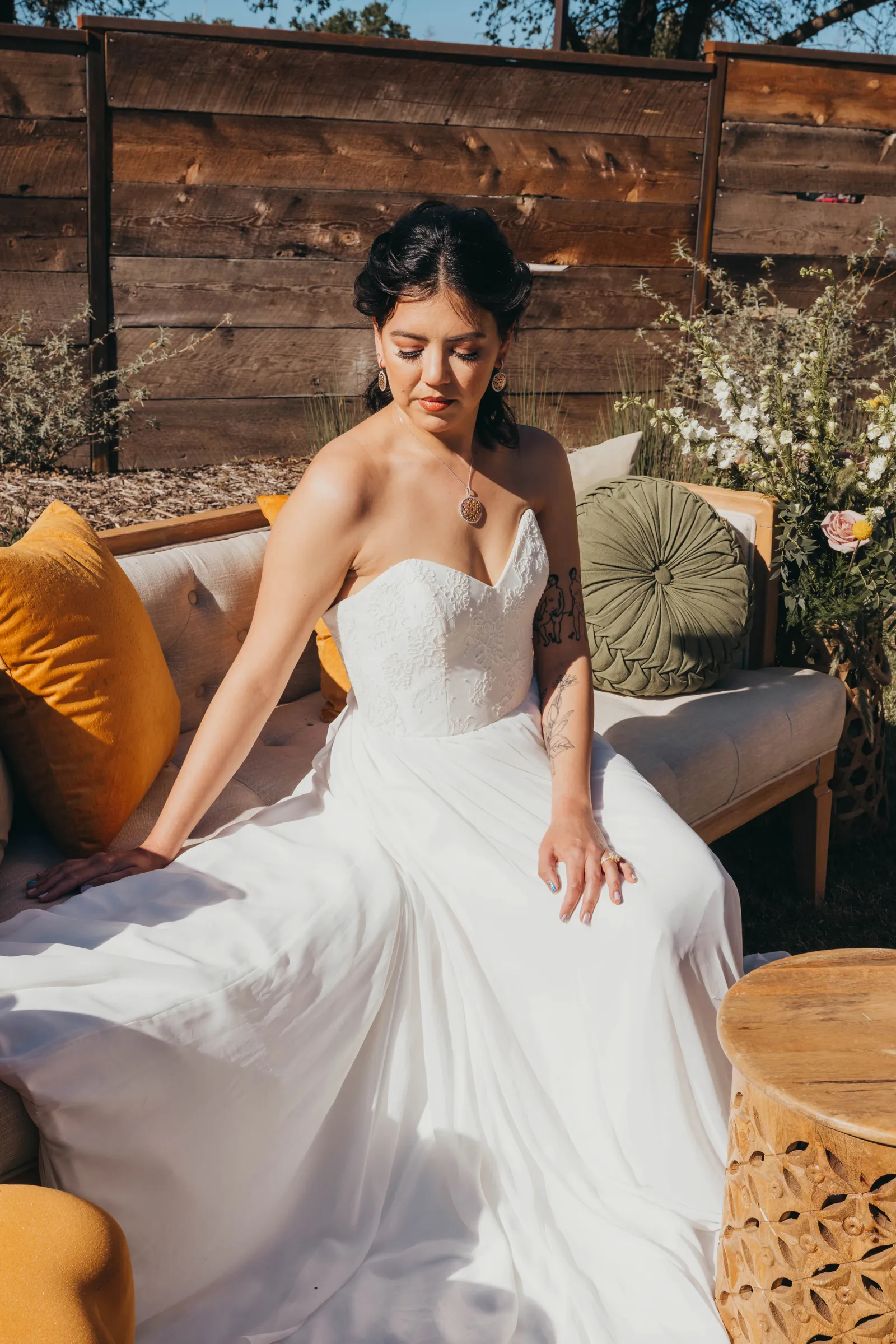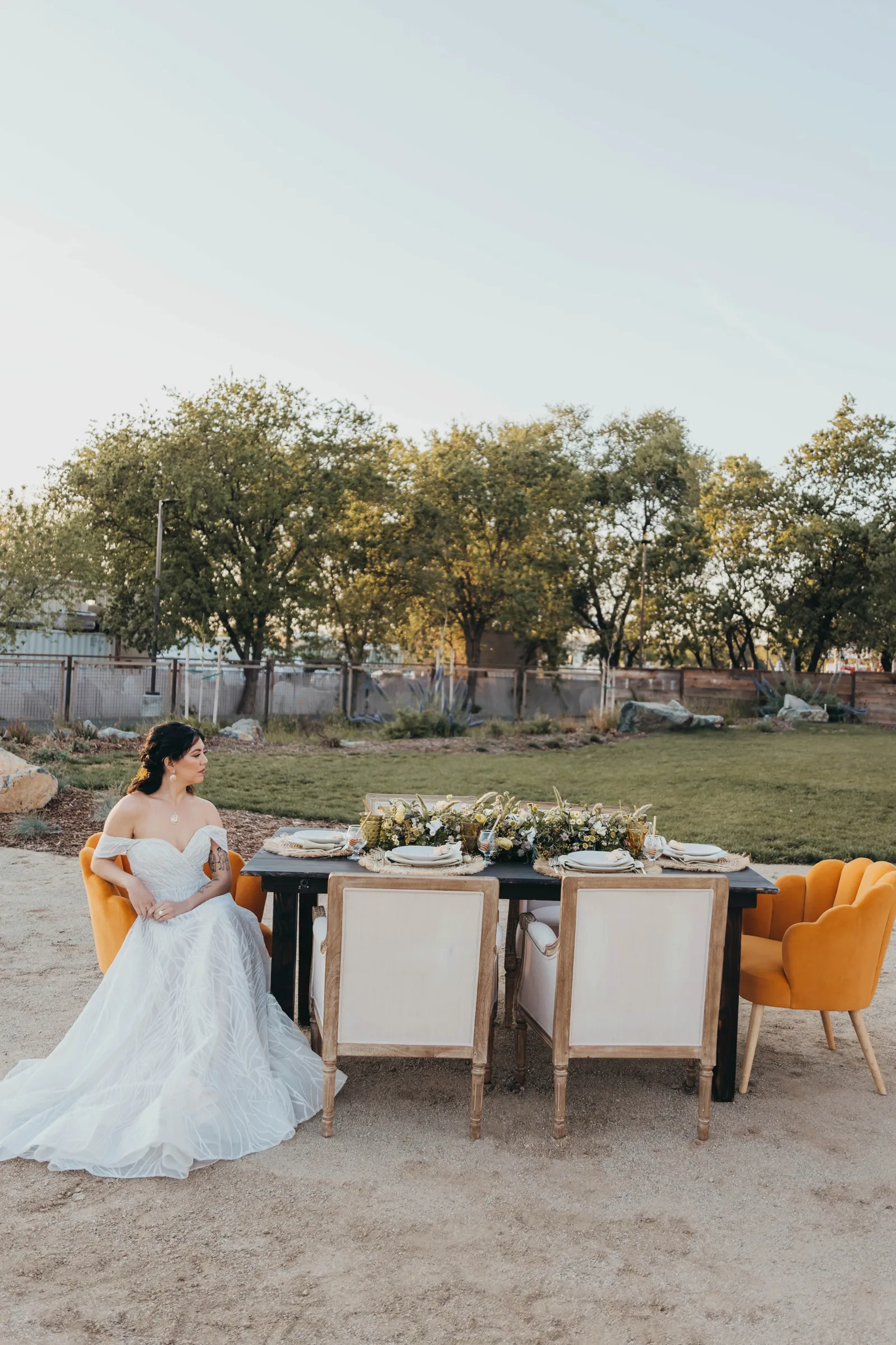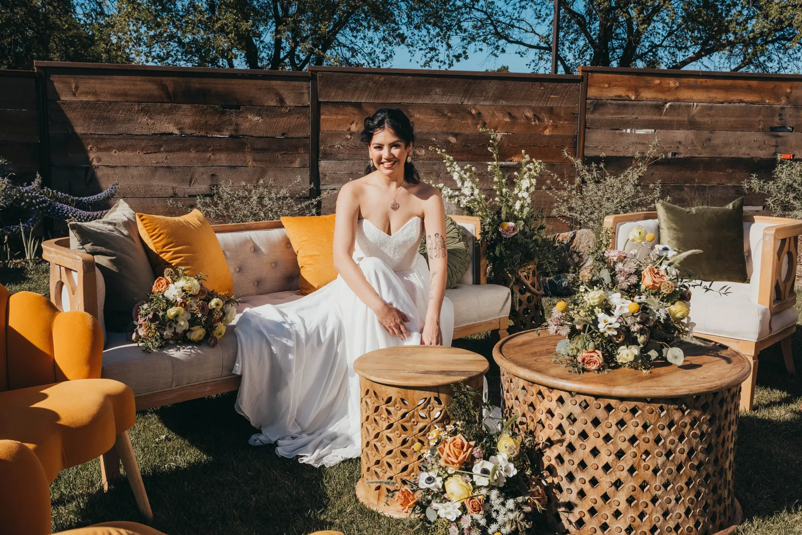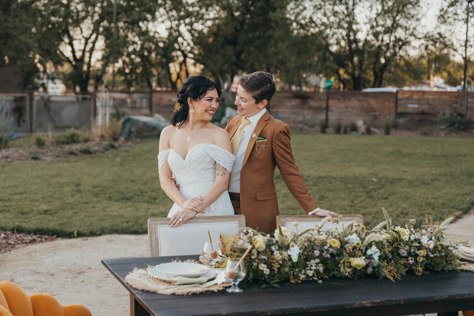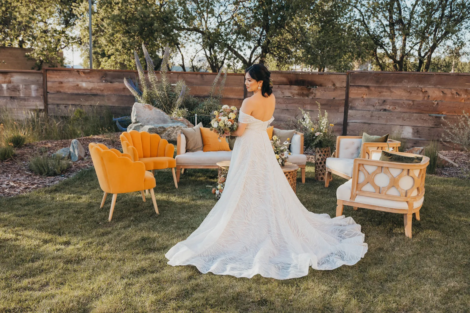 Happy Sunday, everyone! It’s time for yet another Submitted Styled Shoot fresh from our Summer/Fall #30 publication — and we’re just buzzed for you to see it! Set at The HIVE in Woodland, you can expect fun honeybee-themed decor and rentals (thanks Blossom Farm Vintage Rentals!), amazing flowers from Strelitzia Flower Co., and absolutely stunning gowns, courtesy of Brides for a Cause. Keep scrolling to find some more inspiration. Happy Sunday, and happy reading!