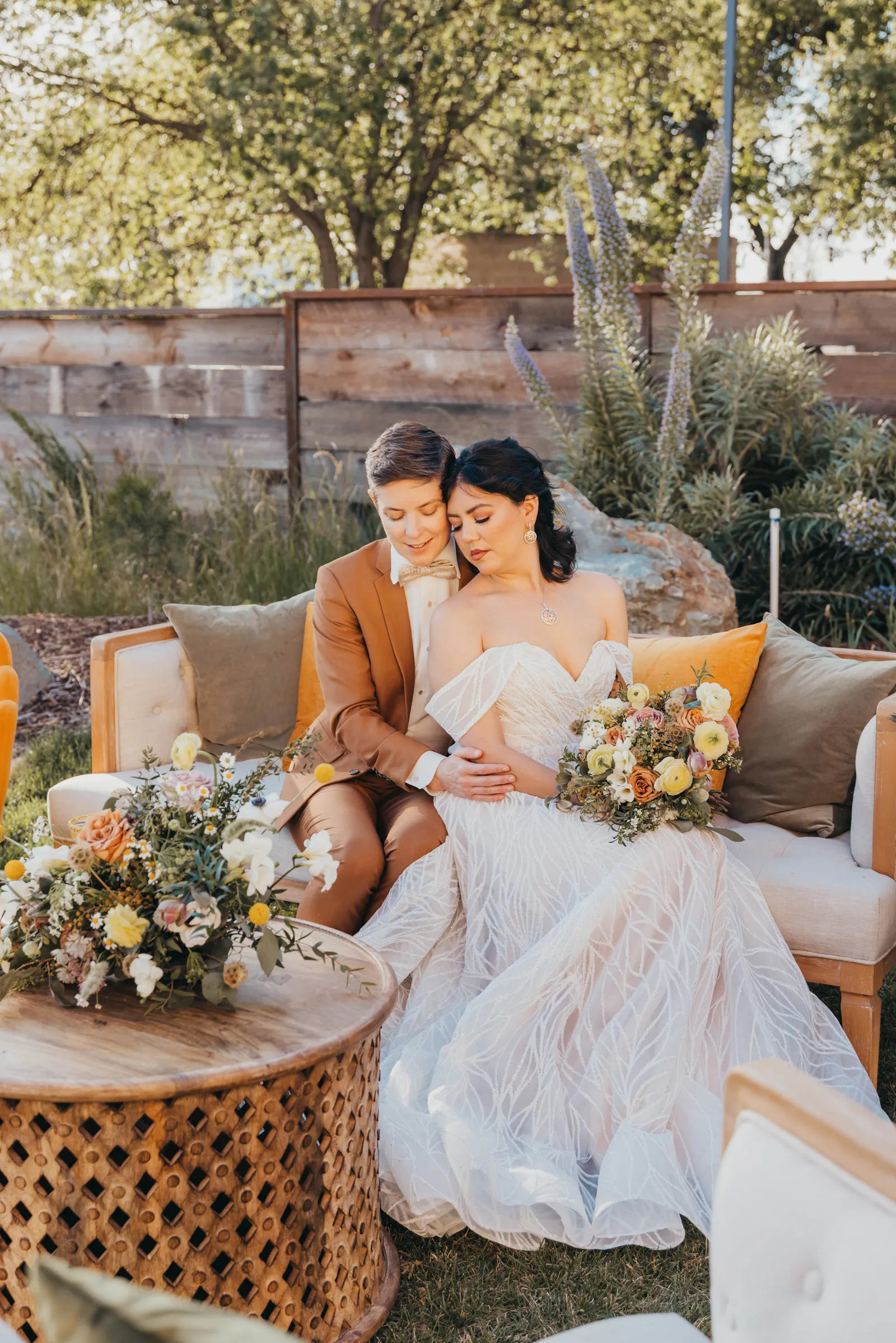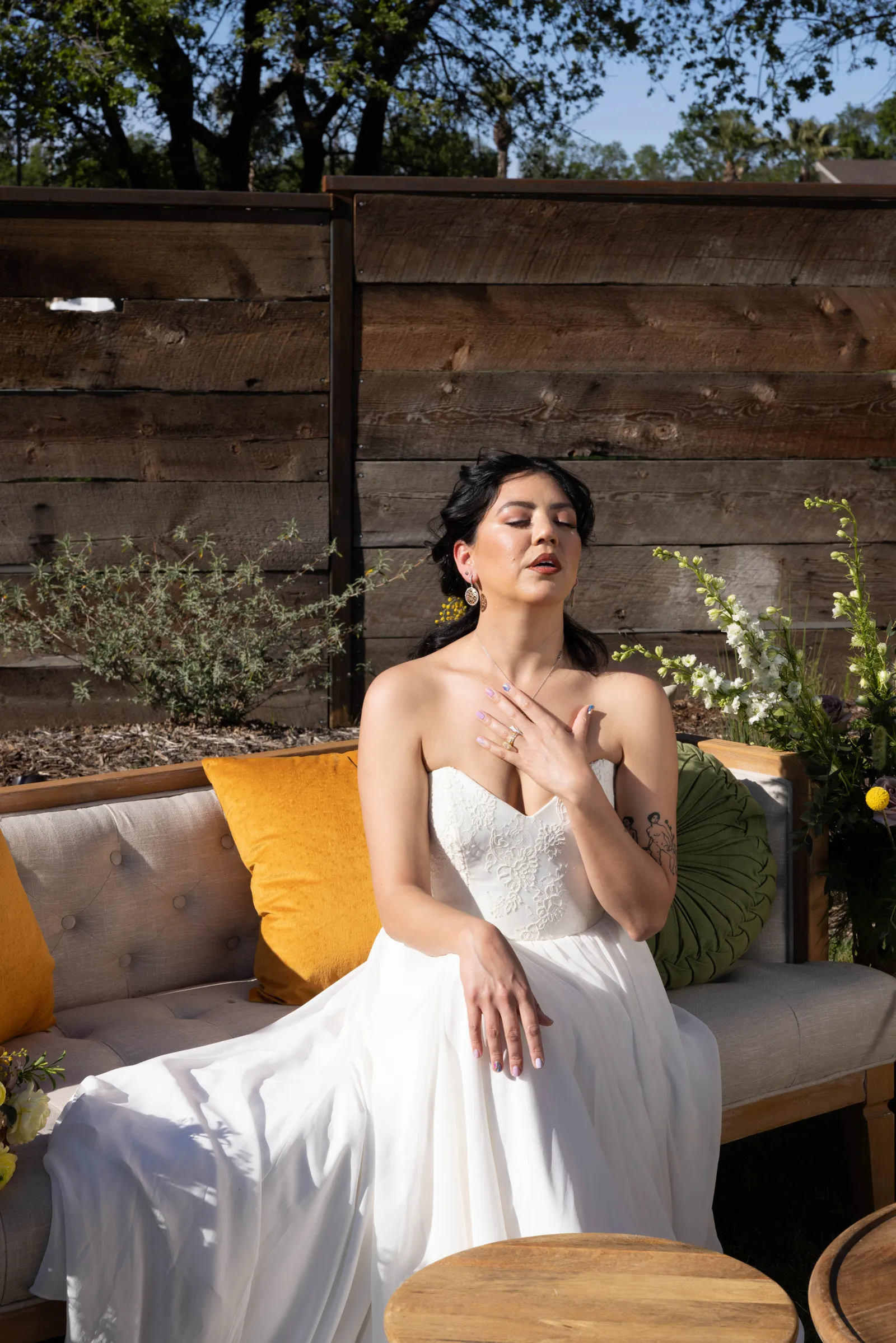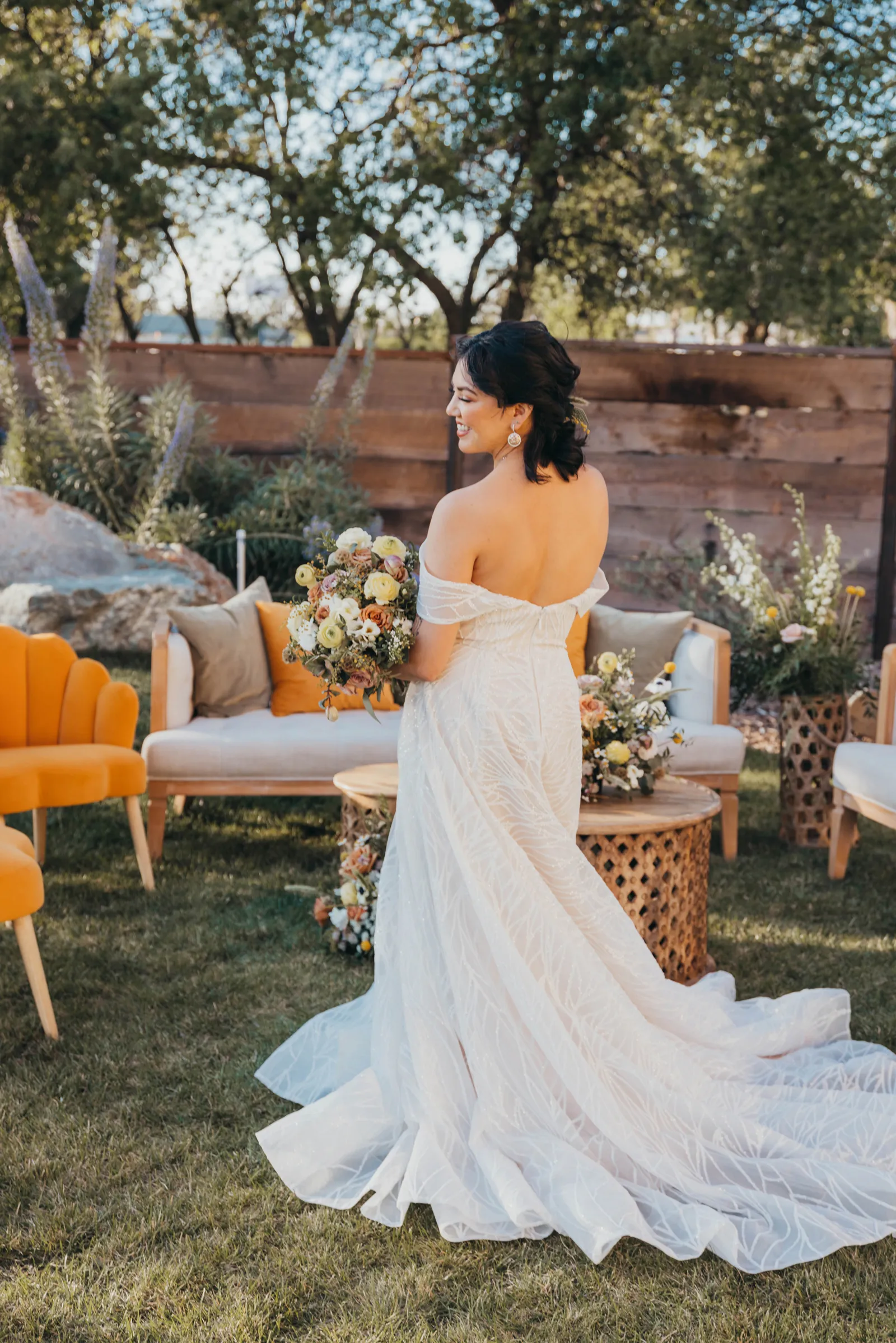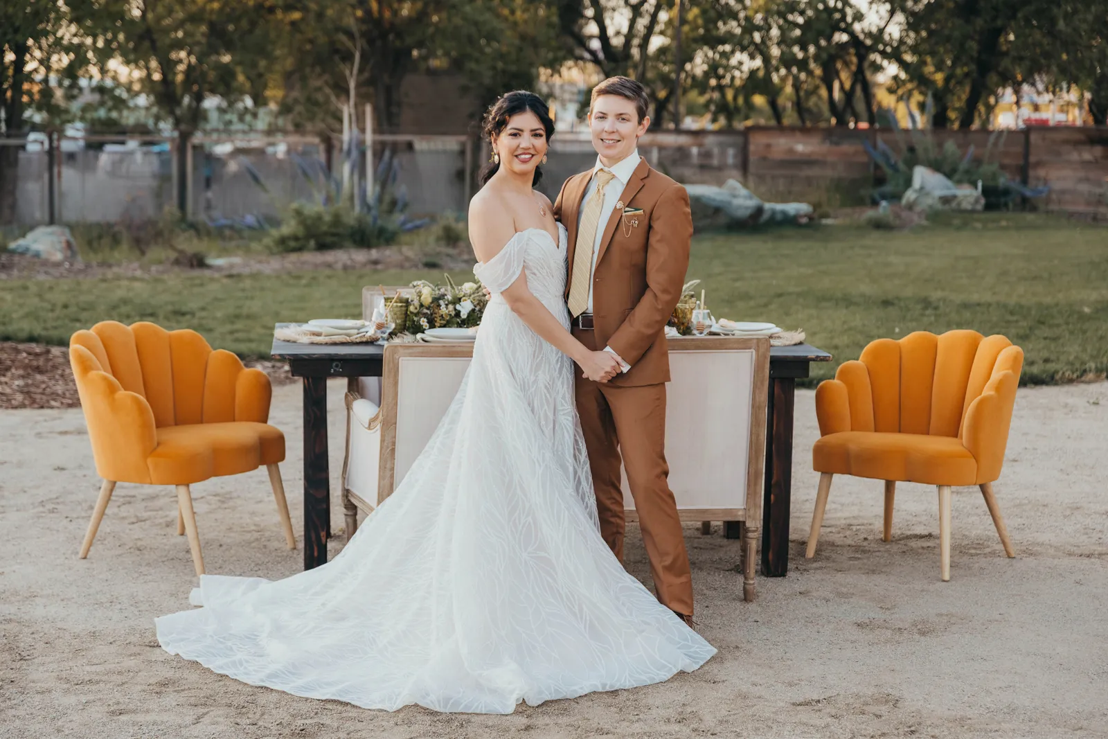 Happy Sunday, everyone! It’s time for yet another Submitted Styled Shoot fresh from our Summer/Fall #30 publication — and we’re just buzzed for you to see it! Set at The HIVE in Woodland, you can expect fun honeybee-themed decor and rentals (thanks Blossom Farm Vintage Rentals!), amazing flowers from Strelitzia Flower Co., and absolutely stunning gowns, courtesy of Brides for a Cause. Keep scrolling to find some more inspiration. Happy Sunday, and happy reading!