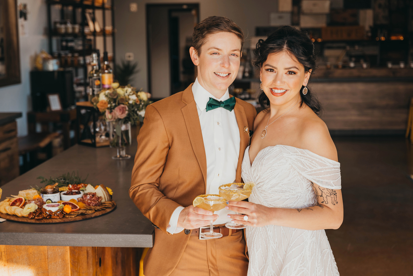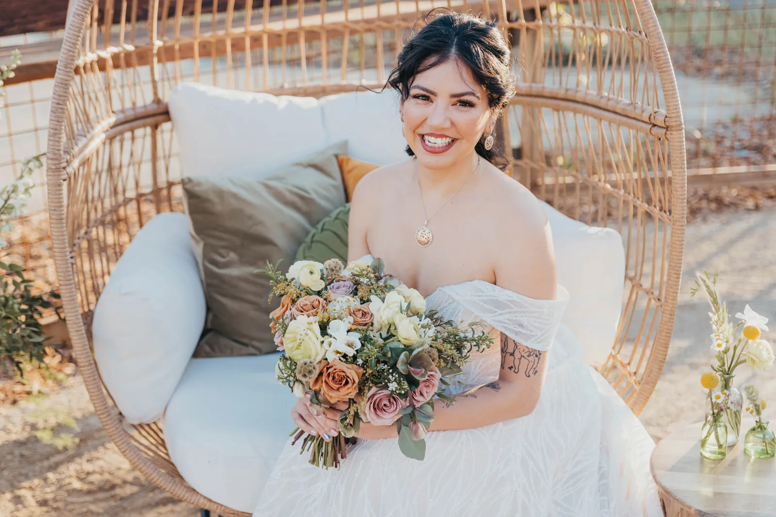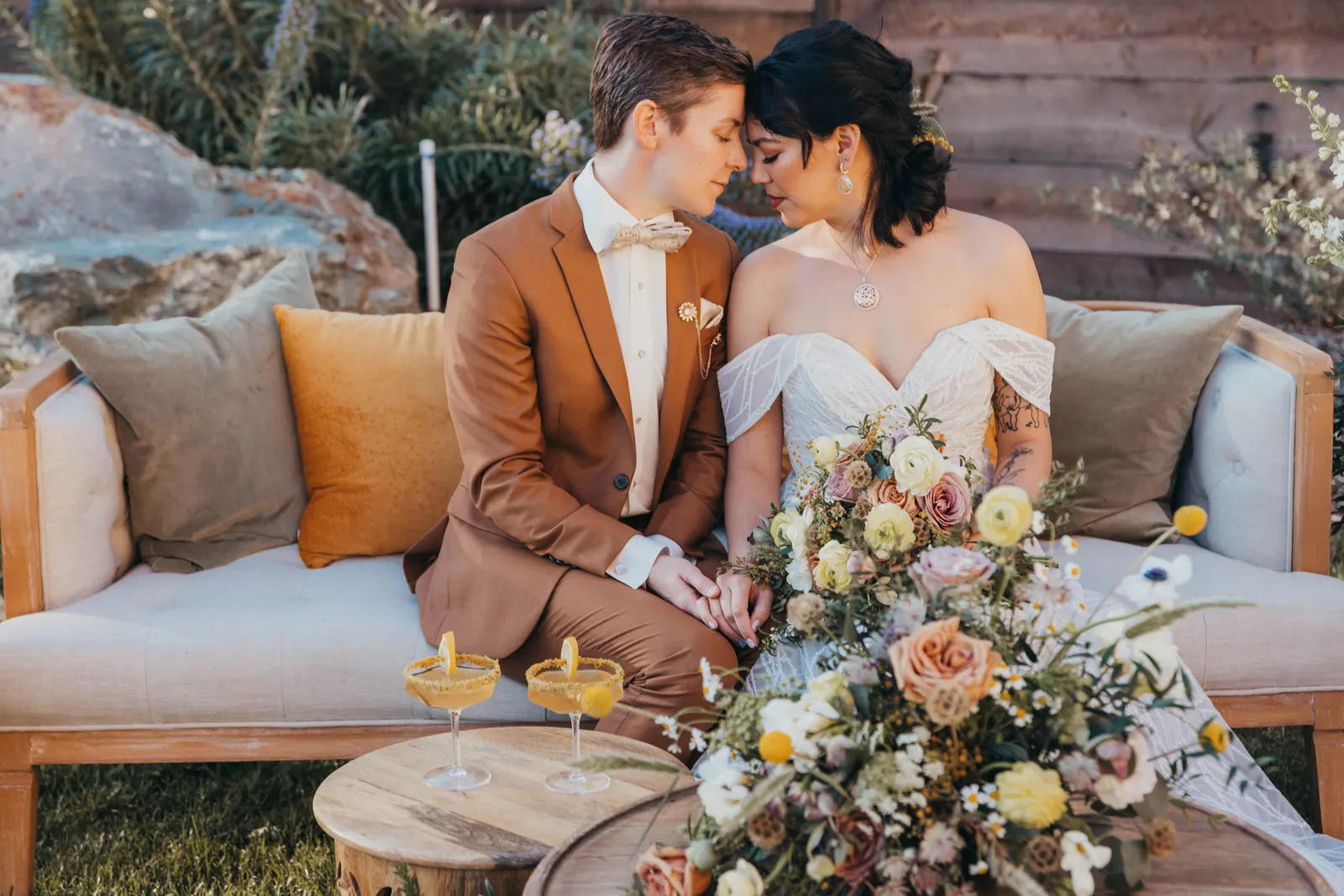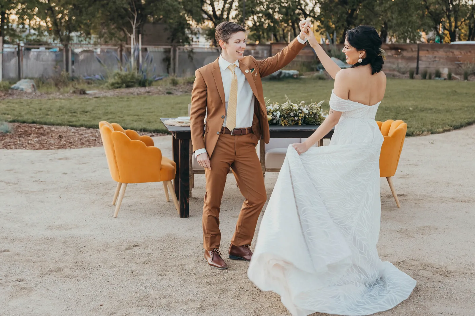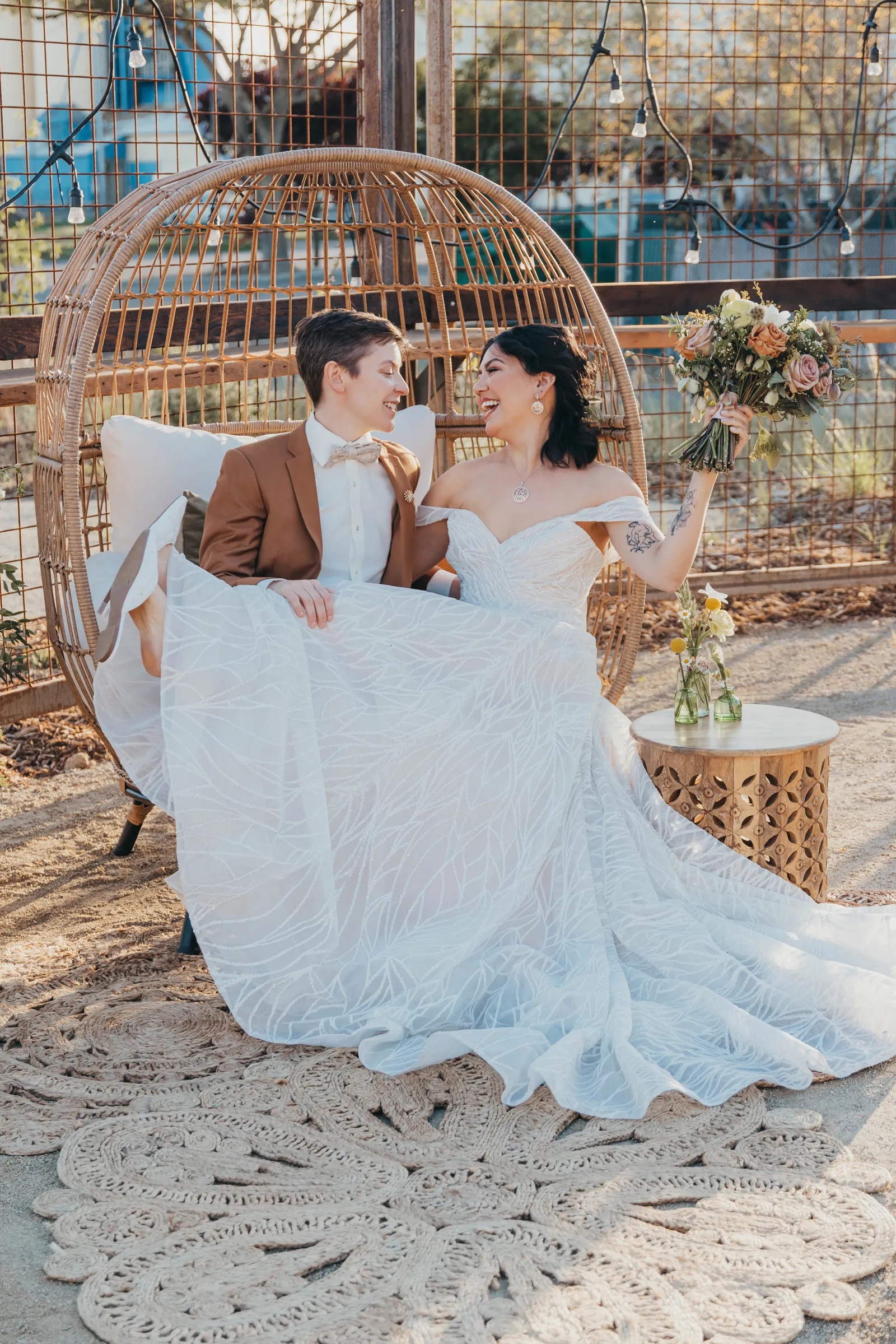 Happy Sunday, everyone! It’s time for yet another Submitted Styled Shoot fresh from our Summer/Fall #30 publication — and we’re just buzzed for you to see it! Set at The HIVE in Woodland, you can expect fun honeybee-themed decor and rentals (thanks Blossom Farm Vintage Rentals!), amazing flowers from Strelitzia Flower Co., and absolutely stunning gowns, courtesy of Brides for a Cause. Keep scrolling to find some more inspiration. Happy Sunday, and happy reading!