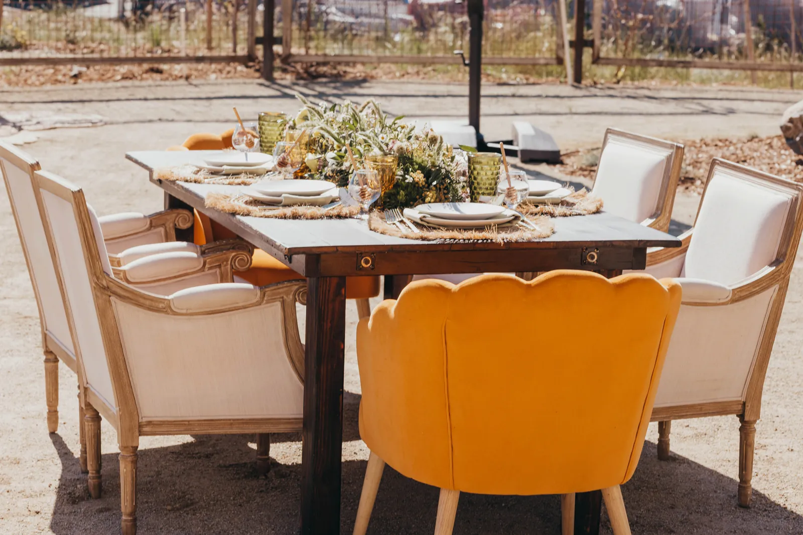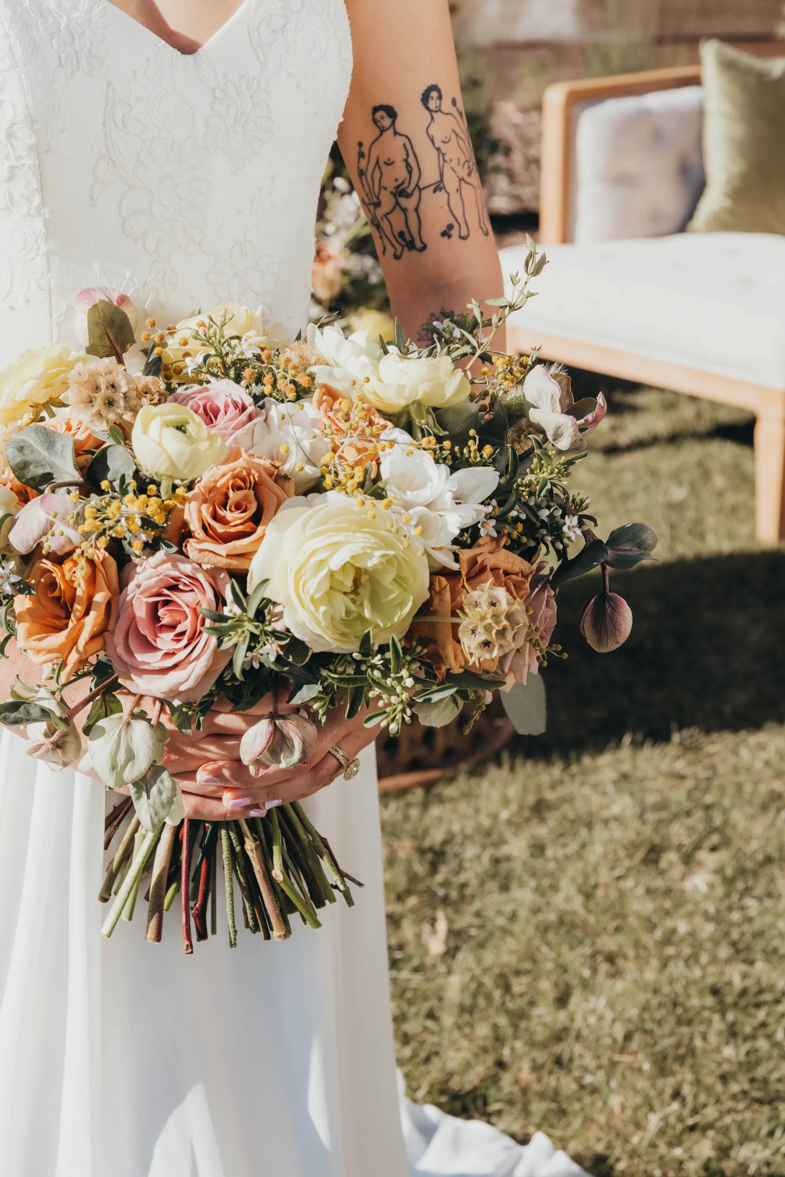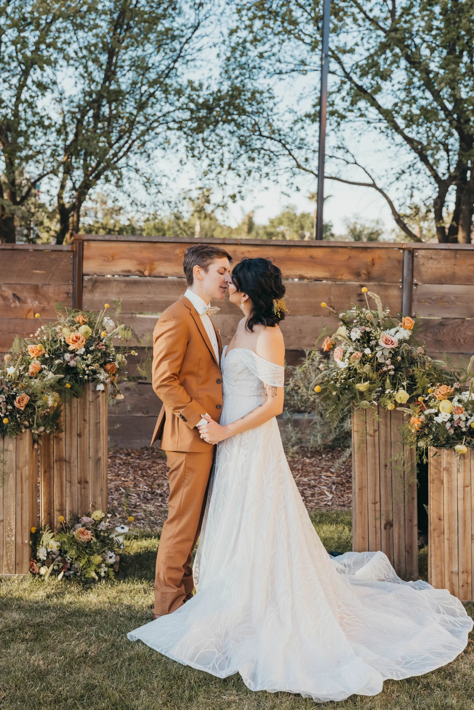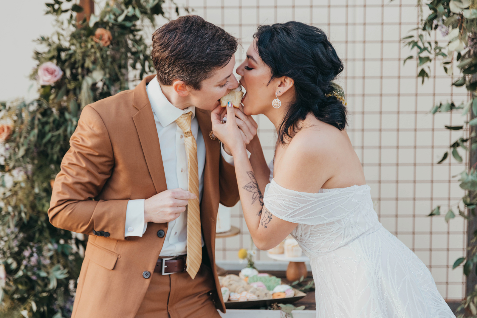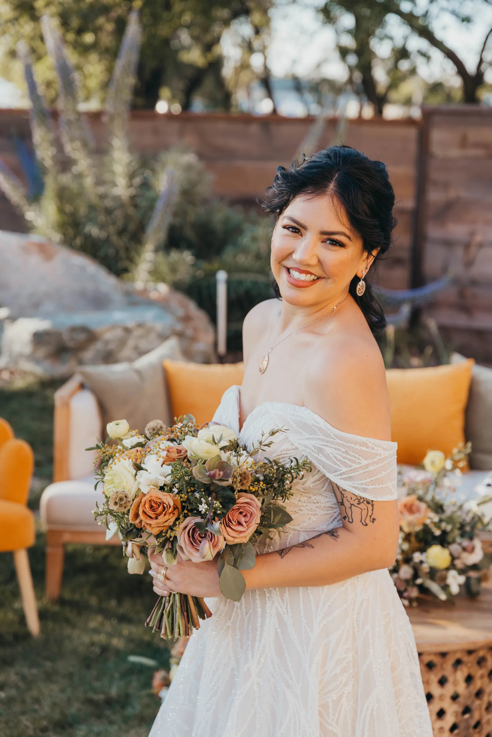 Happy Sunday, everyone! It’s time for yet another Submitted Styled Shoot fresh from our Summer/Fall #30 publication — and we’re just buzzed for you to see it! Set at The HIVE in Woodland, you can expect fun honeybee-themed decor and rentals (thanks Blossom Farm Vintage Rentals!), amazing flowers from Strelitzia Flower Co., and absolutely stunning gowns, courtesy of Brides for a Cause. Keep scrolling to find some more inspiration. Happy Sunday, and happy reading!