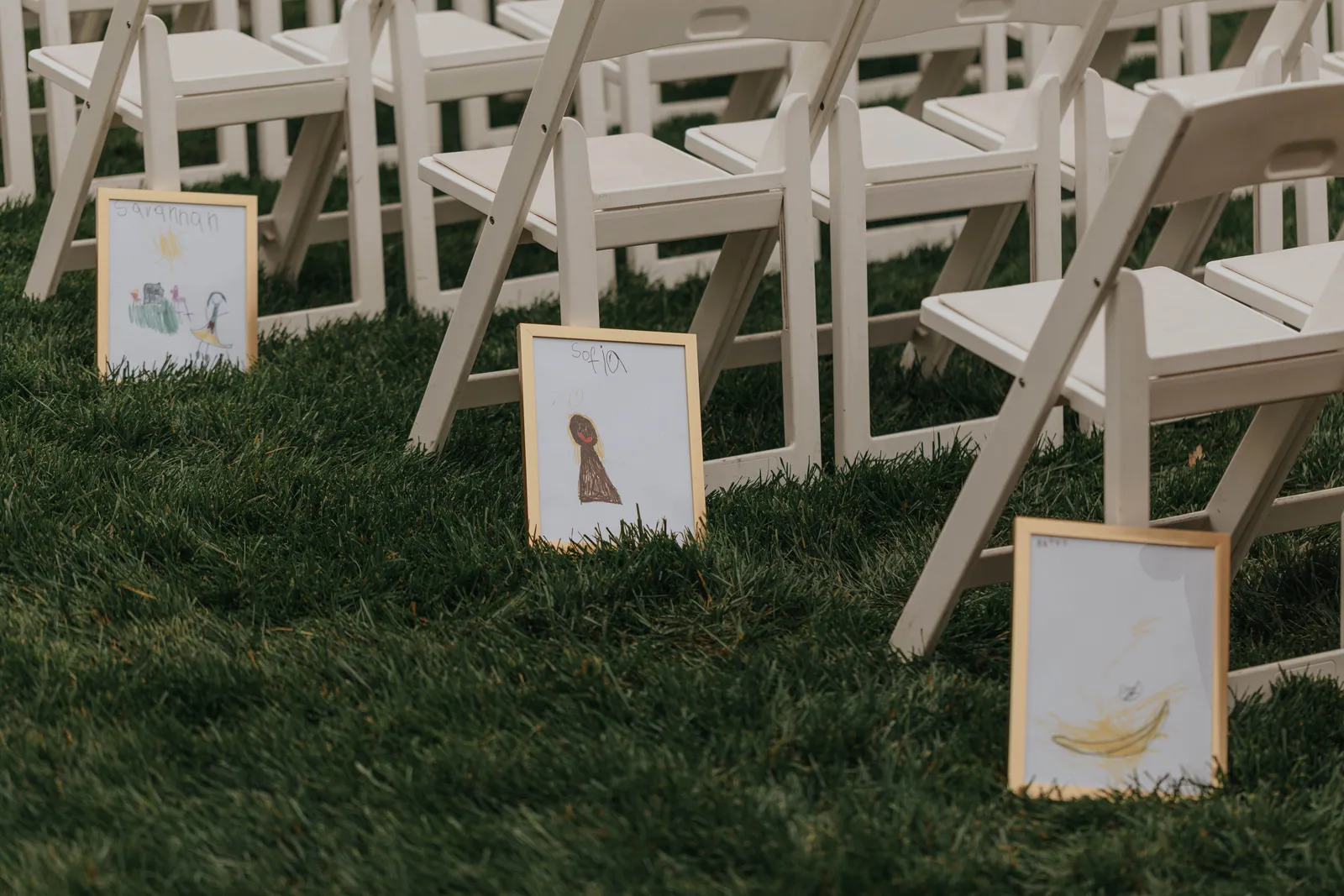 Our music choices were such a huge part of our day for us. We spent months and months making sure we chose the perfect songs for all of our special moments throughout the day. So when we heard those carefully picked out songs it just brought everything together perfectly. Abby is a teacher and she had her former and current class draw pictures that we framed and placed down the aisle. It was such a sweet detail to look at as we walked down the aisle.