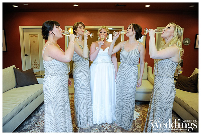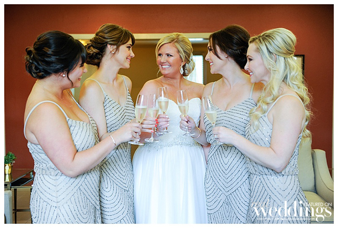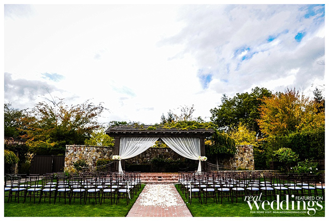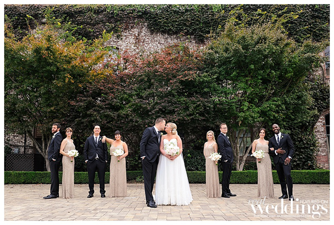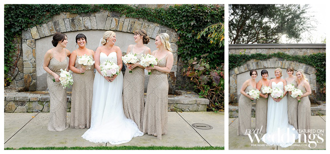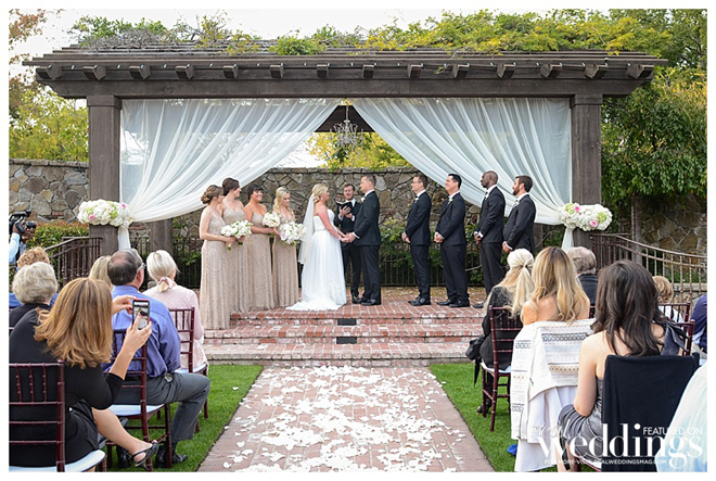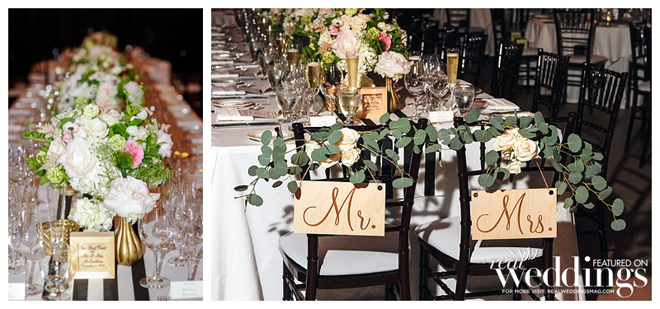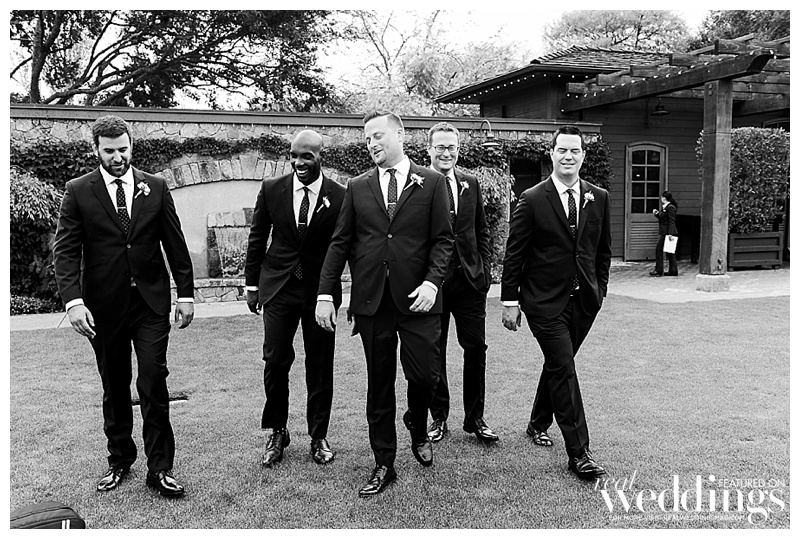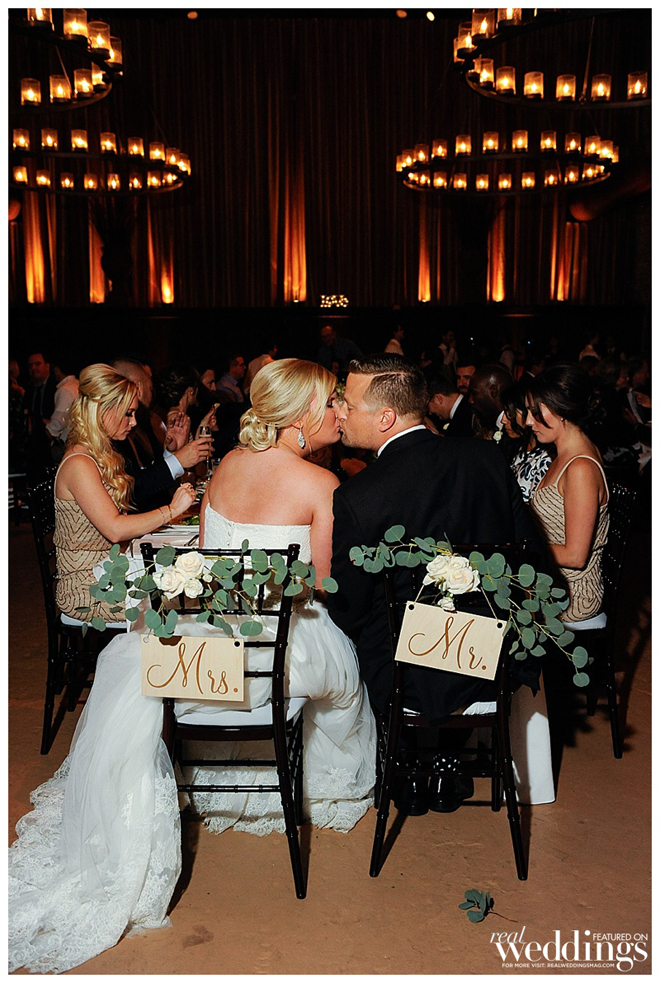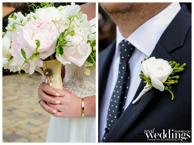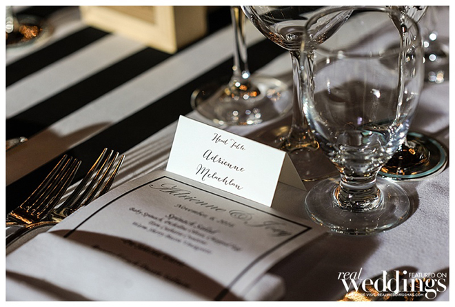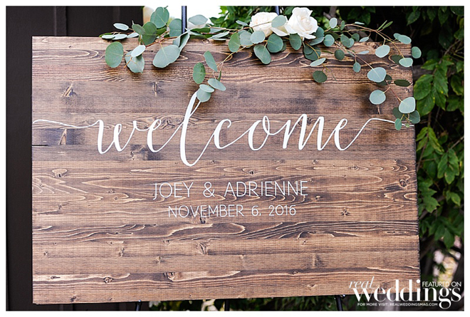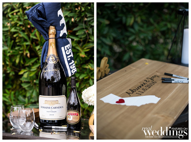On the day of the wedding, Champagne was passed to guests as they arrived for the ceremony. Most of the photographs were done before the ceremony, so that the newlyweds could spend their time with guests afterward. Adrienne says that the first look photographs were key for them, though for Joey it was a bit nerve-wracking. All he remembers is the countdown, with people saying, ‘She’s coming.’ ‘Wait, no she’s not.’ ‘She’s coming.’ ‘Don’t turn around.’
